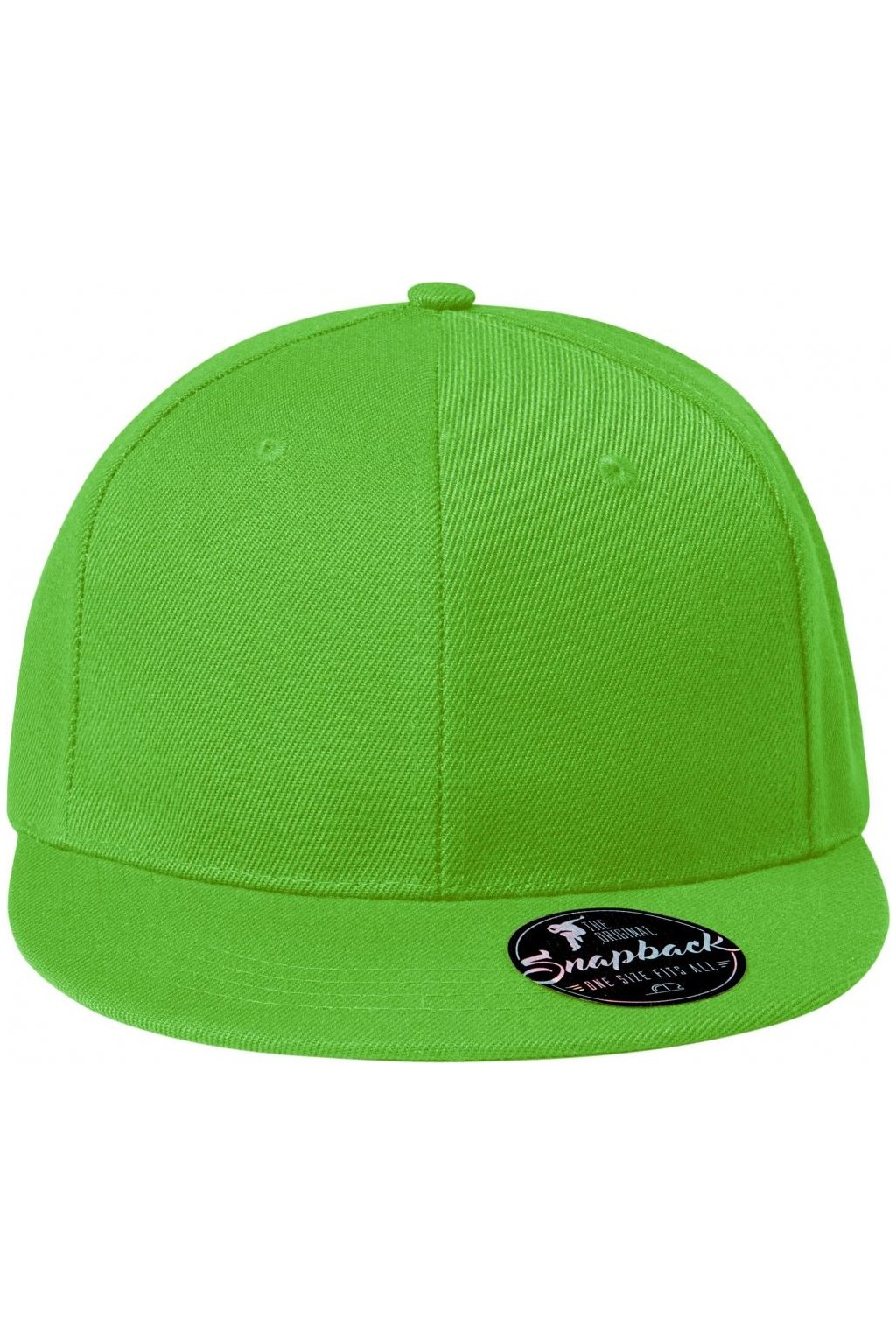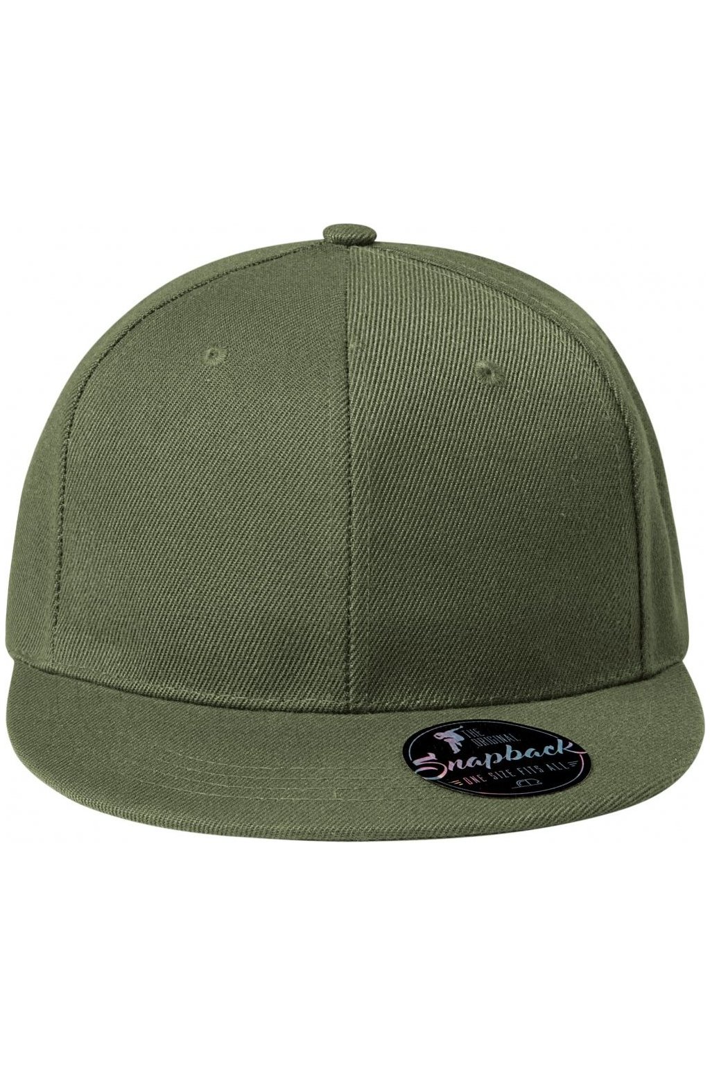 šestipanelový strih, vyztužené 2 prední panely, prošívaný plochý kšilt, obšité vetrací otvory, potící páska, velikost nastavitelná plastovými patentky, odnímatelná nálepka na kšiltu