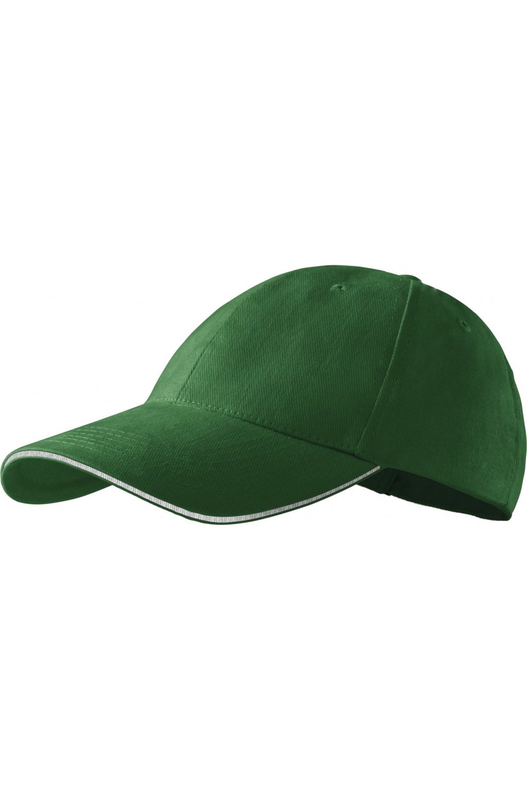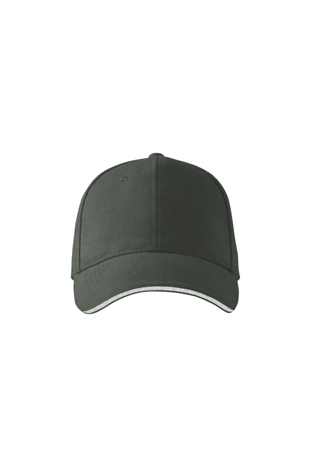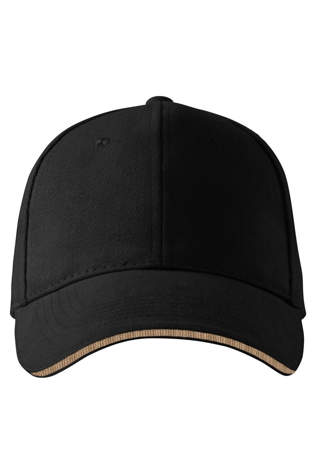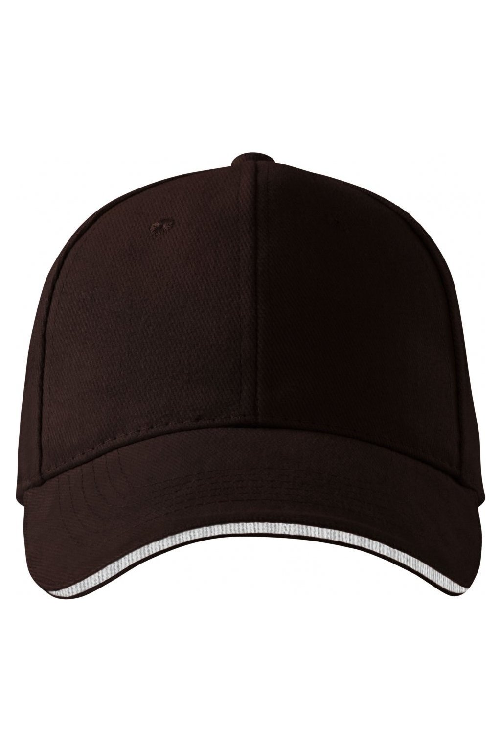 šestipanelový střih, vyztužené 2 přední panely, prošívaný, lehce prohnutý kšilt s konstrastním proužkem, obšité větrací otvory, potící páska, velikost nastavitelná mosazným klipem