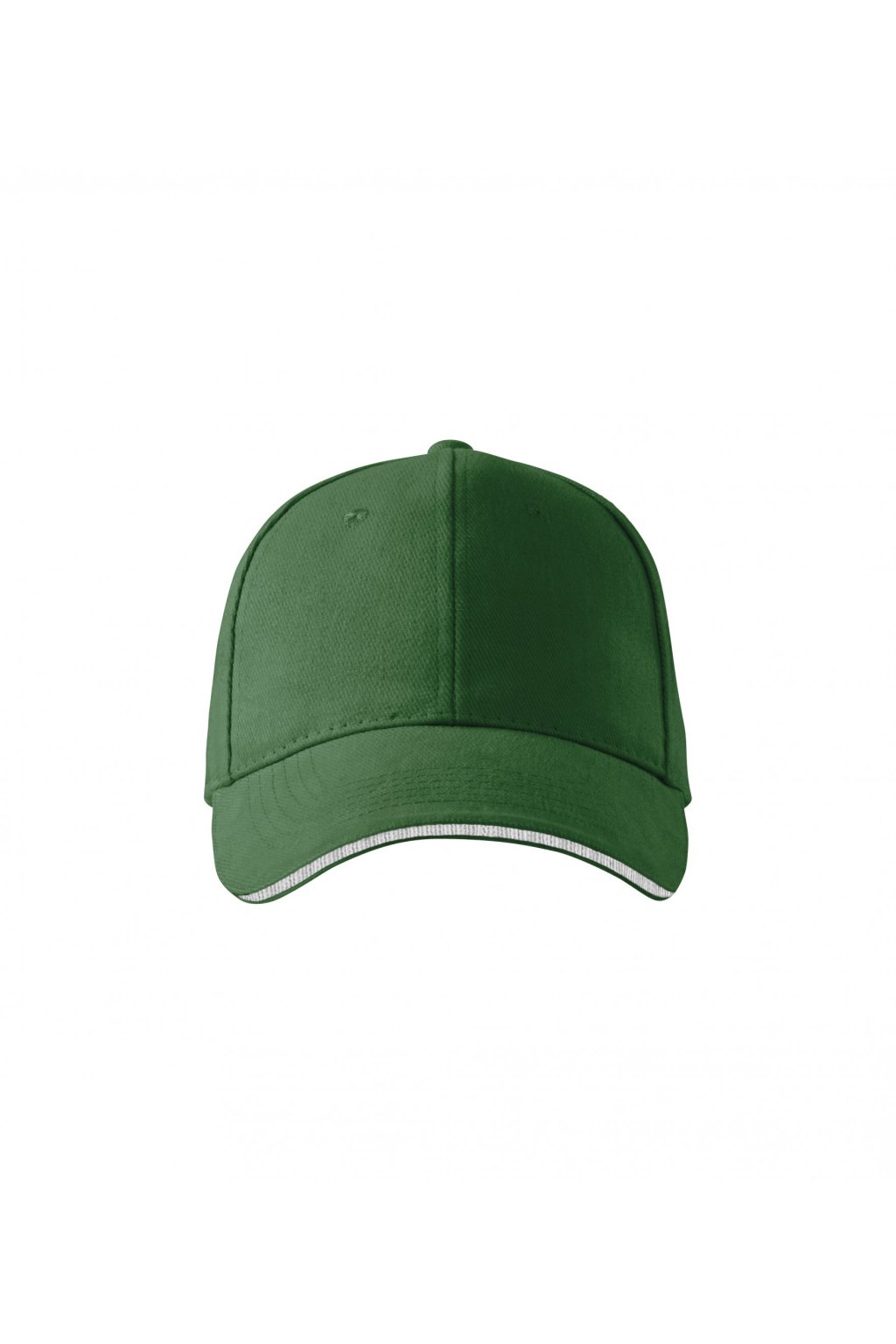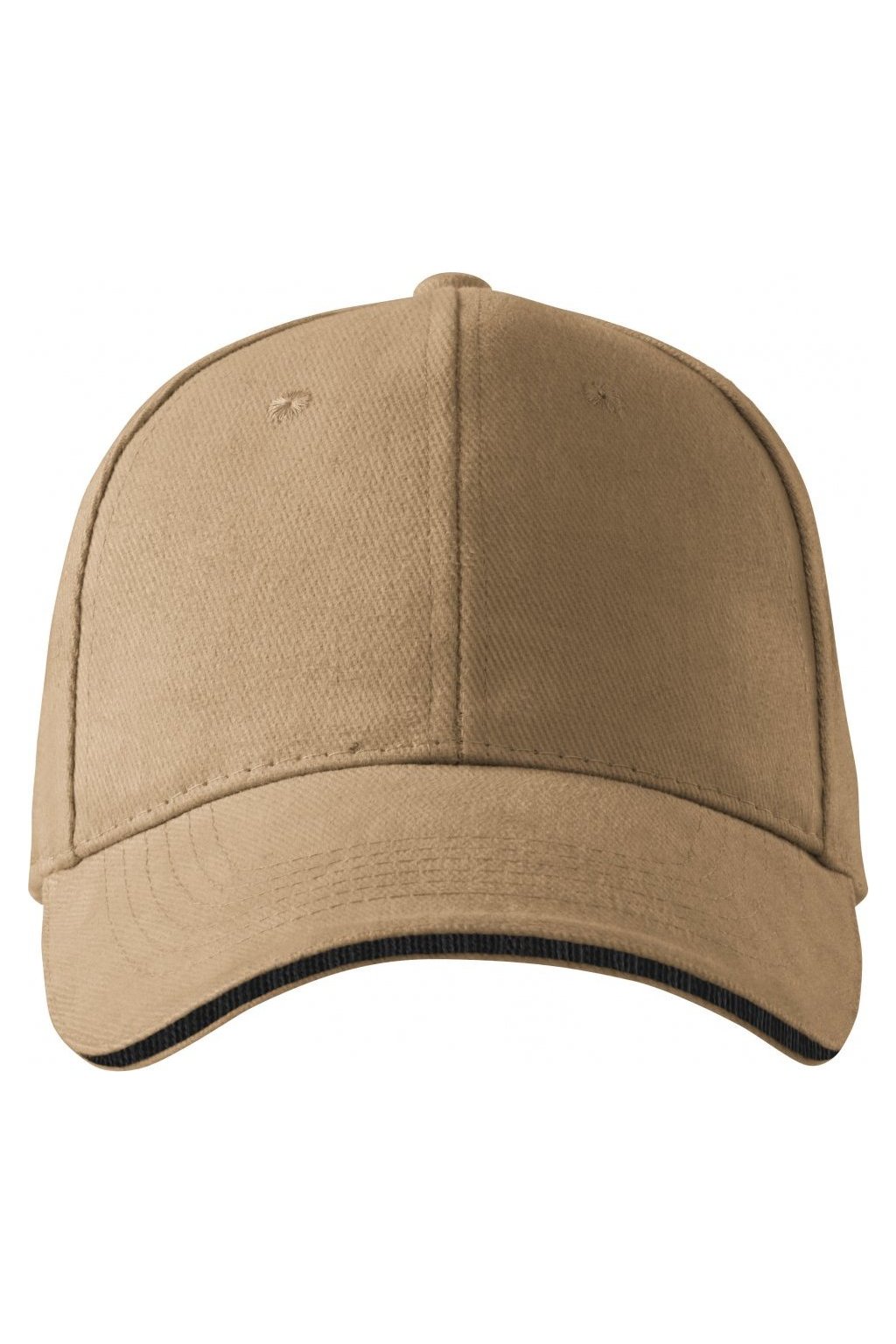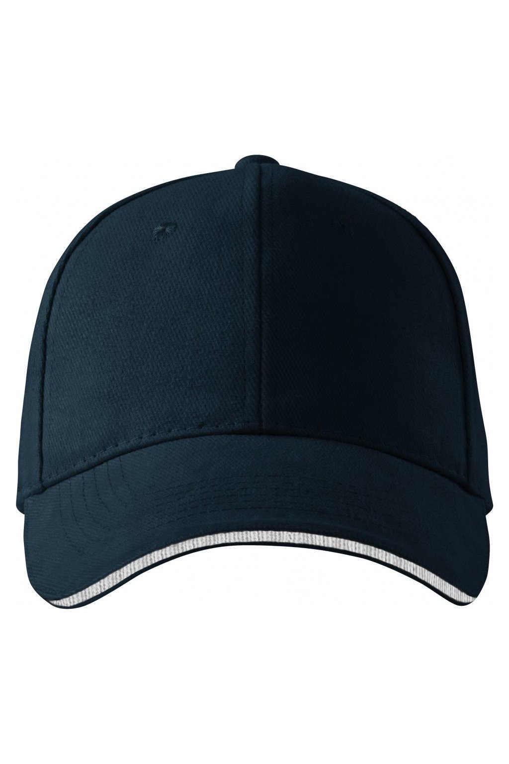 šestipanelový střih, vyztužené 2 přední panely, prošívaný, lehce prohnutý kšilt s konstrastním proužkem, obšité větrací otvory, potící páska, velikost nastavitelná mosazným klipem