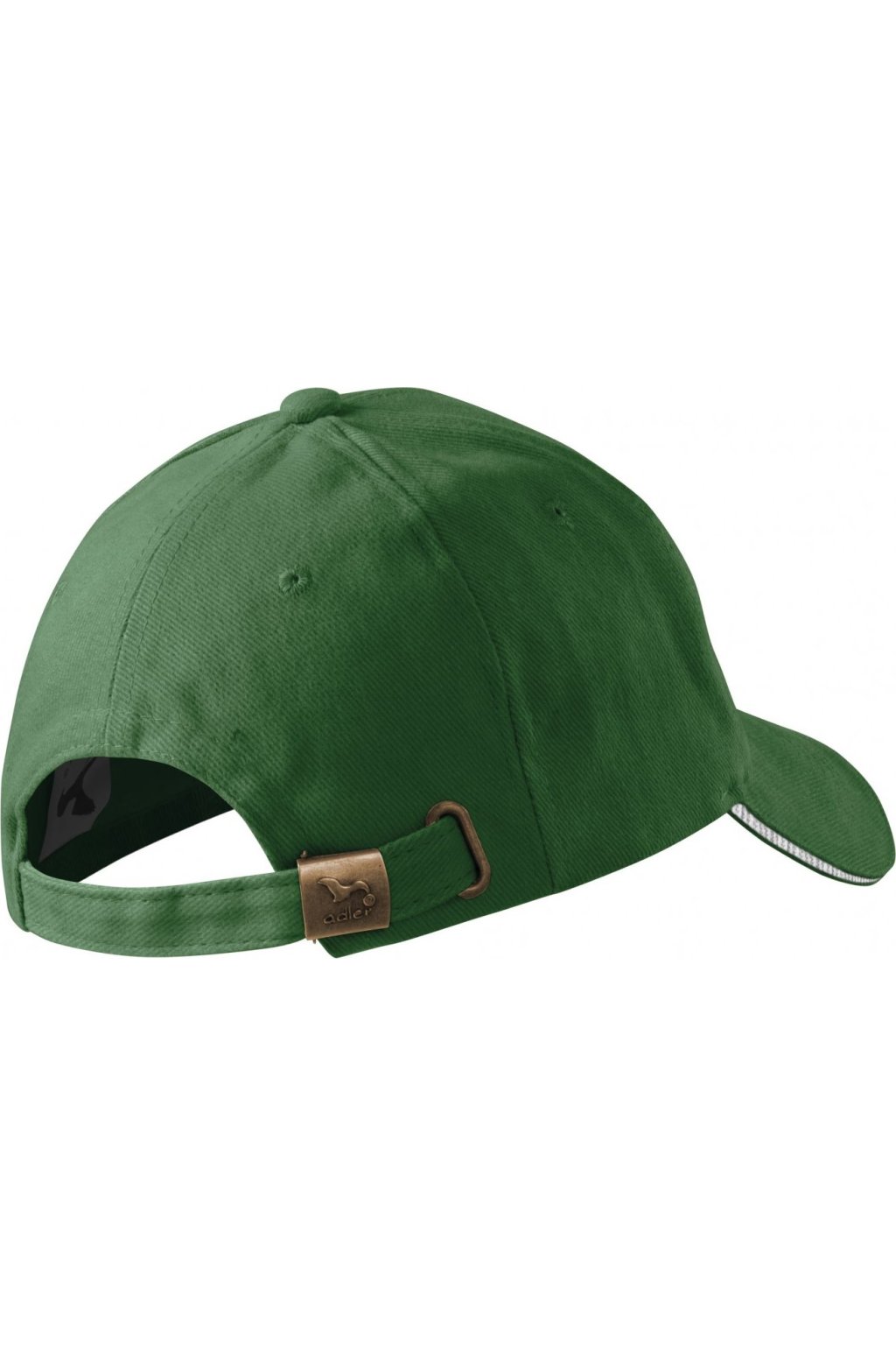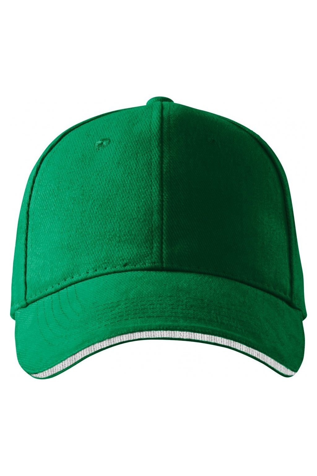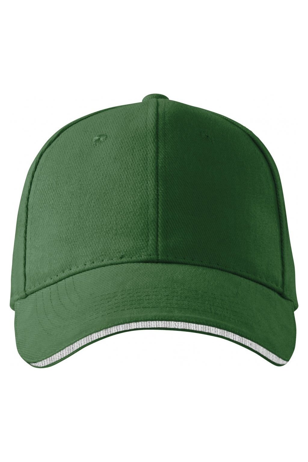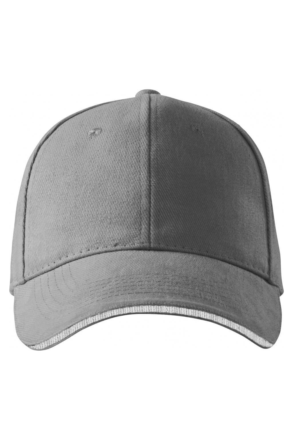 šestipanelový střih, vyztužené 2 přední panely, prošívaný, lehce prohnutý kšilt s konstrastním proužkem, obšité větrací otvory, potící páska, velikost nastavitelná mosazným klipem