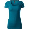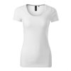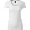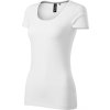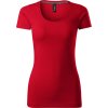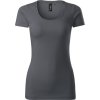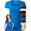 strečový materiál udržující stálost tvaru, přiléhavý střih s bočními švy, hlubší kulatý výstřih, úzký lem průkrčníku z žebrového úpletu 1:1 s 5 % elastanu, vnitřní část průkrčníku začištěna kontrastní páskou, zpevnění ramenních švů páskou, krátké přiléhavé rukávy, dekorativní prošití