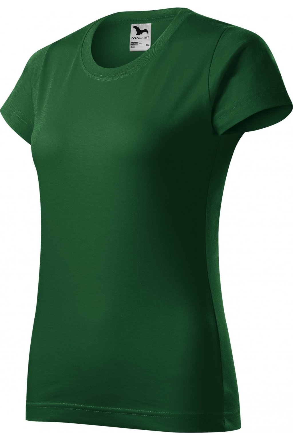 lehce vypasovaný střih s bočními švy, úzký lem průkrčníku z žebrového úpletu 1:1 s 5 % elastanu, vnitřní část průkrčníku začištěna páskou z vrchového materiálu, zpevnění ramenních švů páskou, silikonová úprava