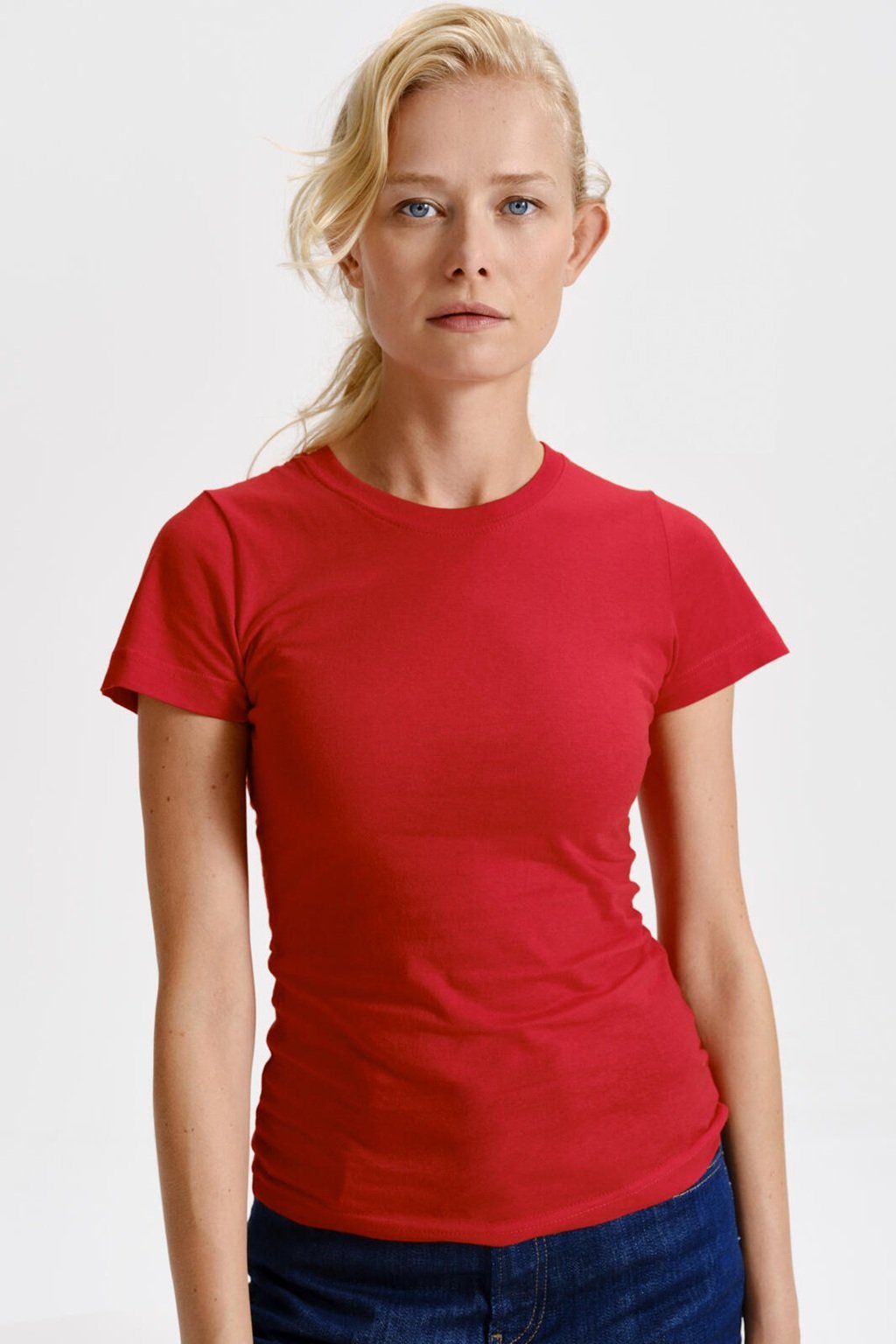 Střih je lehce vypasovaný s bočními švy, díky čemuž tričko krásně sedí na ženské postavě a drží tvar i po opakovaném praní. Úzký lem průkrčníku z žebrového úpletu 1:1 působí elegantně a zároveň je pevný a odolný. Vnitřní část průkrčníku je navíc začištěna páskou z vrchového materiálu, což zvyšuje komfort při nošení a zabraňuje vytahování výstřihu.