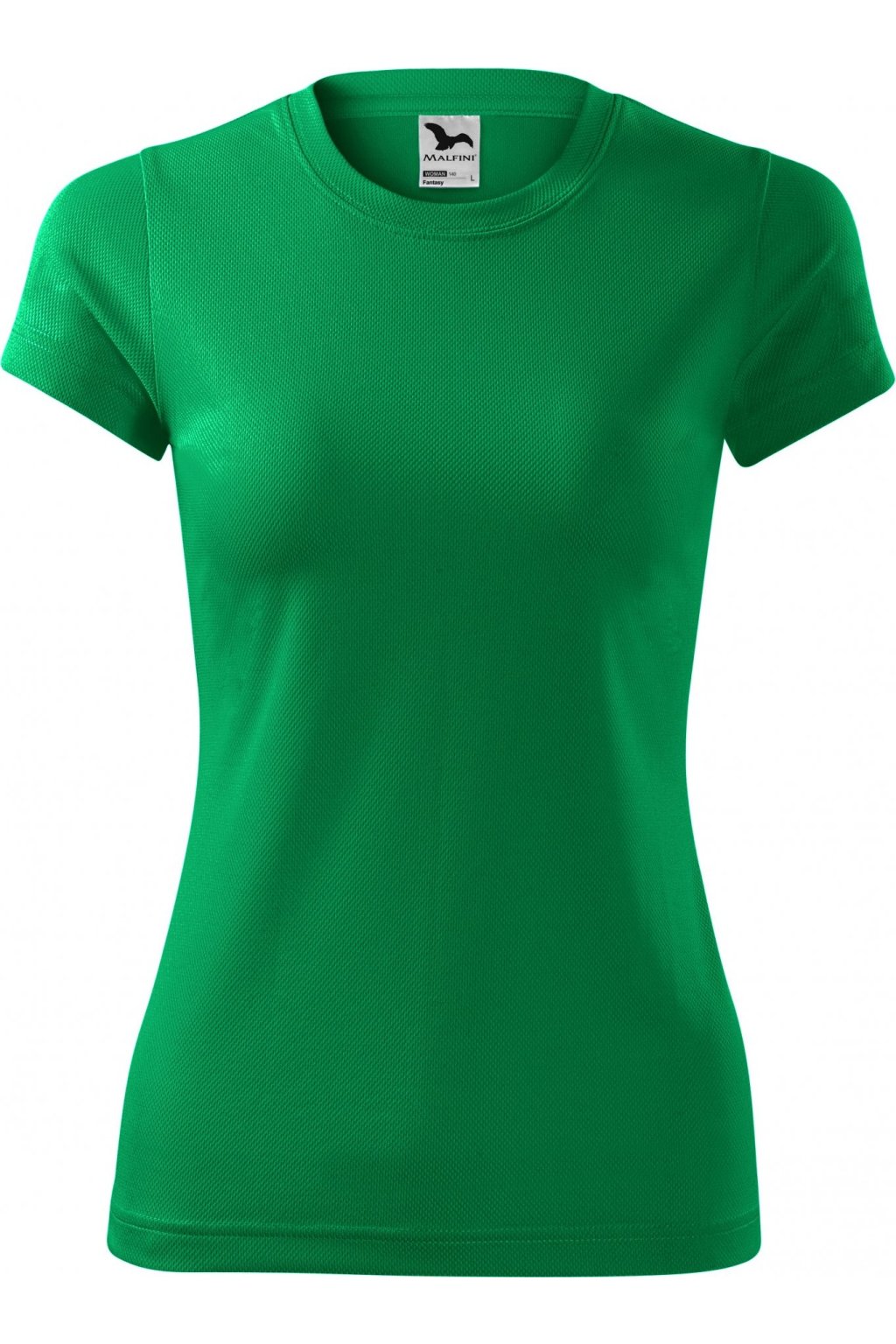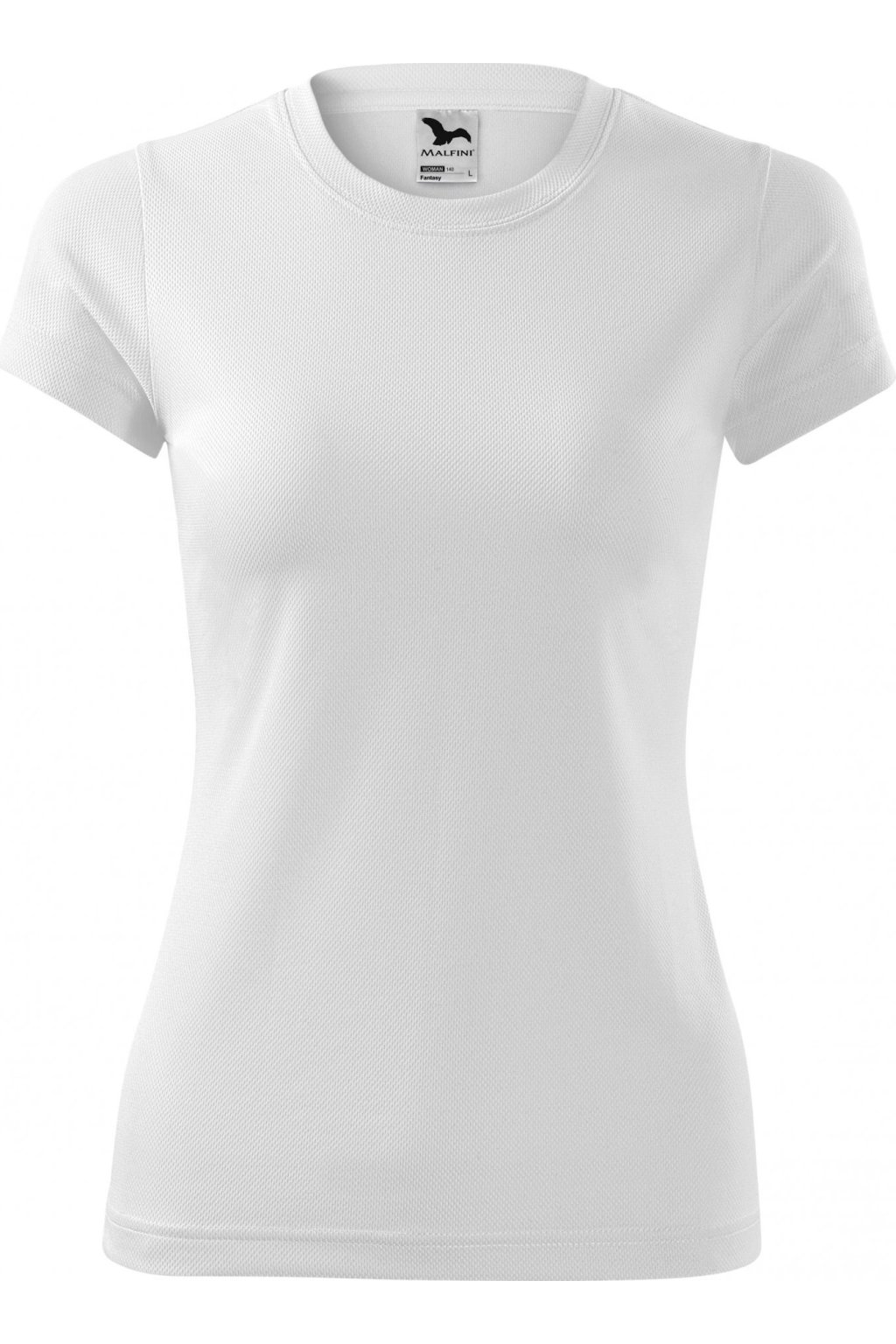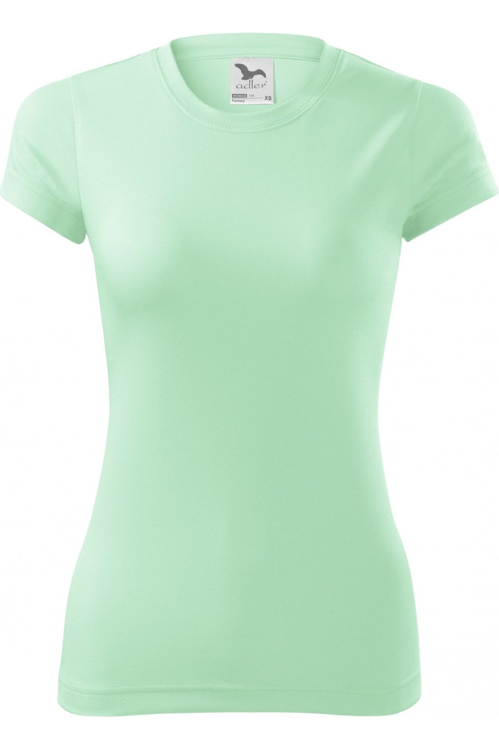 rychleschnoucí materiál, lehce vypasovaný střih s bočními švy, úzký lem průkrčníku z vrchového materiálu, vnitřní část průkrčníku začištěna páskou z vrchového materiálu, zpevnění ramenních švů páskou, ideální pro sport a pohybové aktivity, vhodné pro sublimační potisk (světlé barvy)