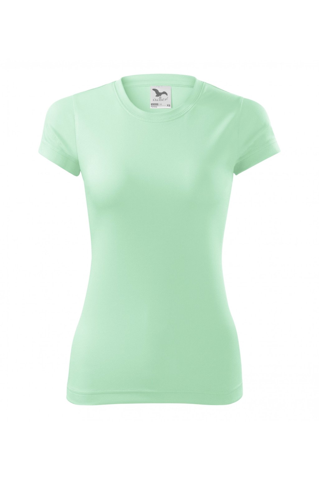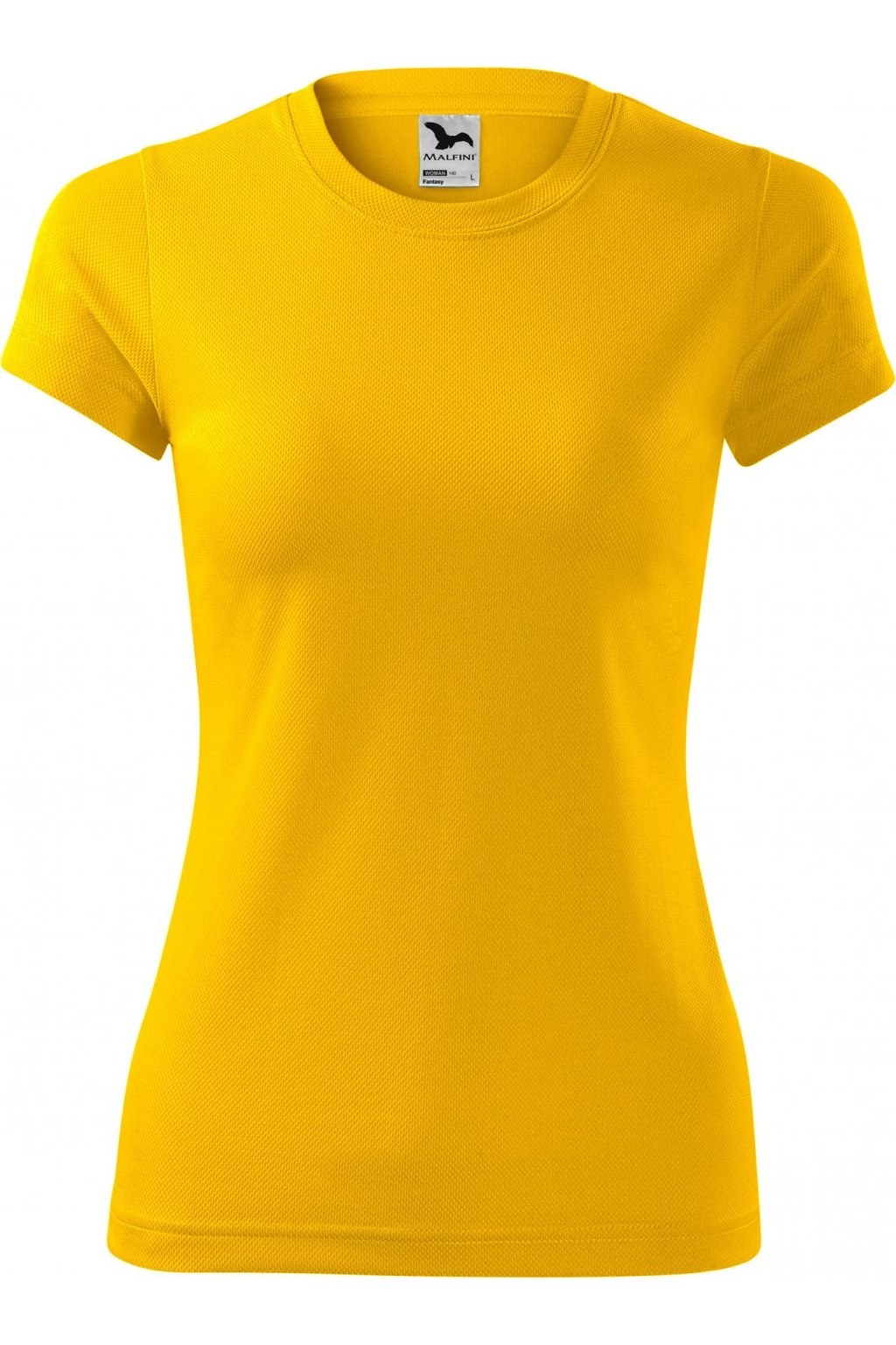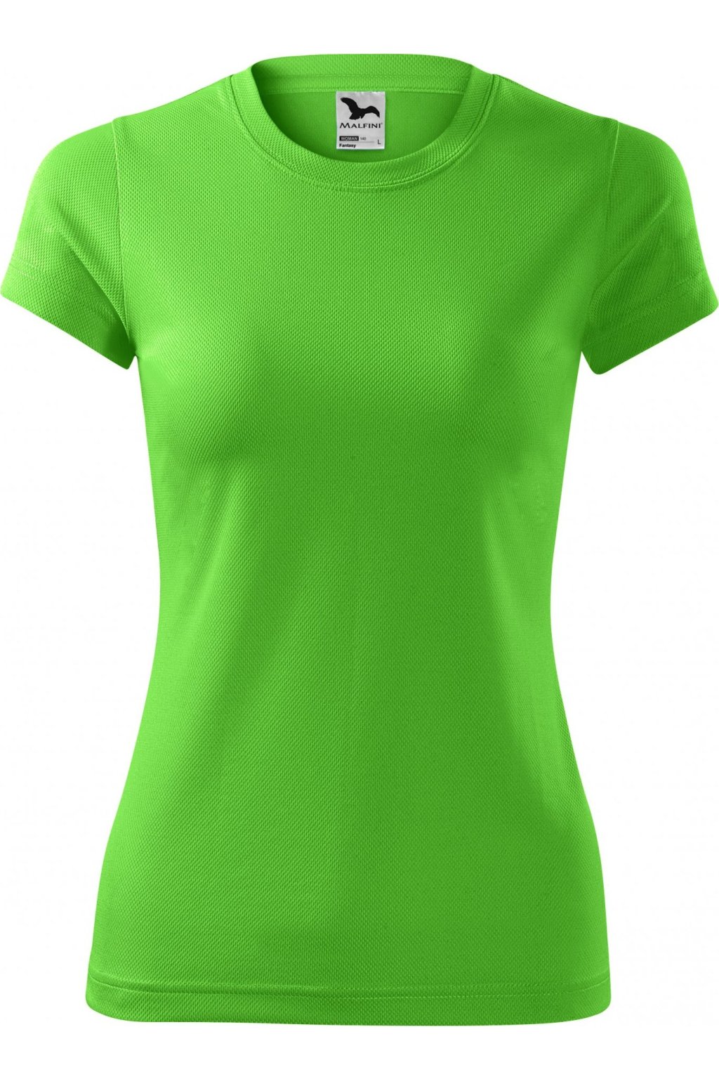 rychleschnoucí materiál, lehce vypasovaný střih s bočními švy, úzký lem průkrčníku z vrchového materiálu, vnitřní část průkrčníku začištěna páskou z vrchového materiálu, zpevnění ramenních švů páskou, ideální pro sport a pohybové aktivity, vhodné pro sublimační potisk (světlé barvy)