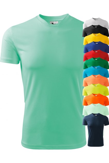 rychleschnoucí materiál, lehce vypasovaný střih s bočními švy, úzký lem průkrčníku z vrchového materiálu, vnitřní část průkrčníku začištěna páskou z vrchového materiálu, zpevnění ramenních švů páskou, ideální pro sport a pohybové aktivity, vhodné pro sublimační potisk (světlé barvy)
