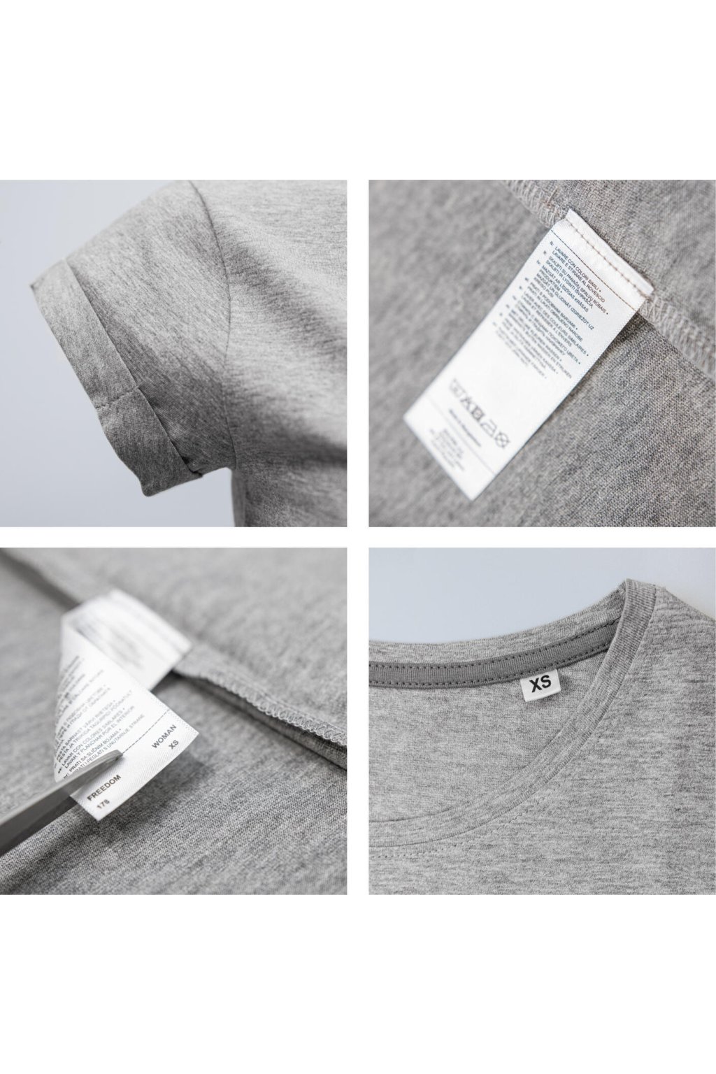 bez etikety - připraveno na rebranding, volný, lehce tvarovaný střih s bočními švy, neutrální velikostní štítek v boční části průkrčníku, vnitřní část průkrčníku začištěna páskou v barvě 36, zpevňující páska od ramene k rameni, ohrnuté rukávy zachycené ve 4 bodech šitím