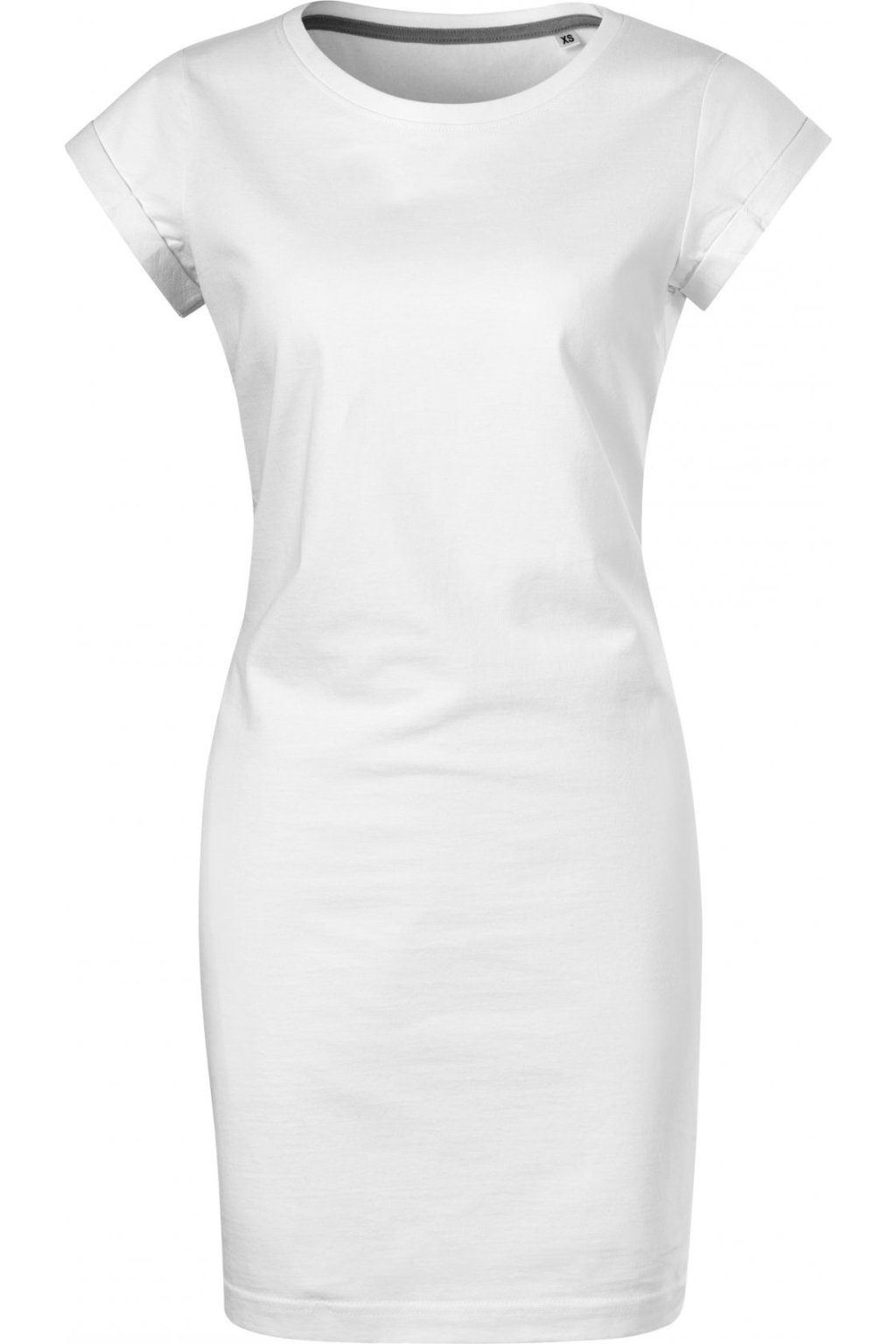 délka nad kolena, hlubší kulatý výstřih, úzký lem průkrčníku z vrchového materiálu s 5 % elastanu,