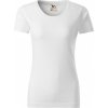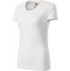 certifikovaná organická bavlna, strukturovaná pletenina slub, lehce vypasovaný střih s bočními švy, úzký lem průkrčníku z vrchového materiálu s 5 % elastanu, vnitřní část průkrčníku začištěna páskou z vrchového materiálu, zpevnění ramenních švů páskou, více o Standardu GOTS