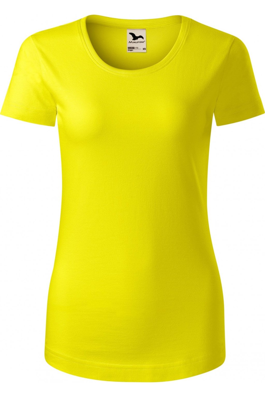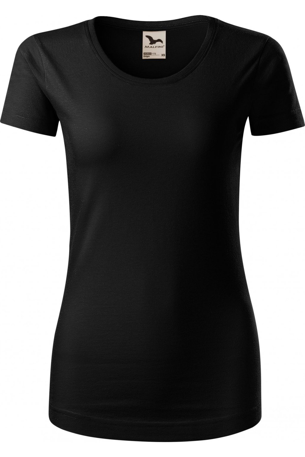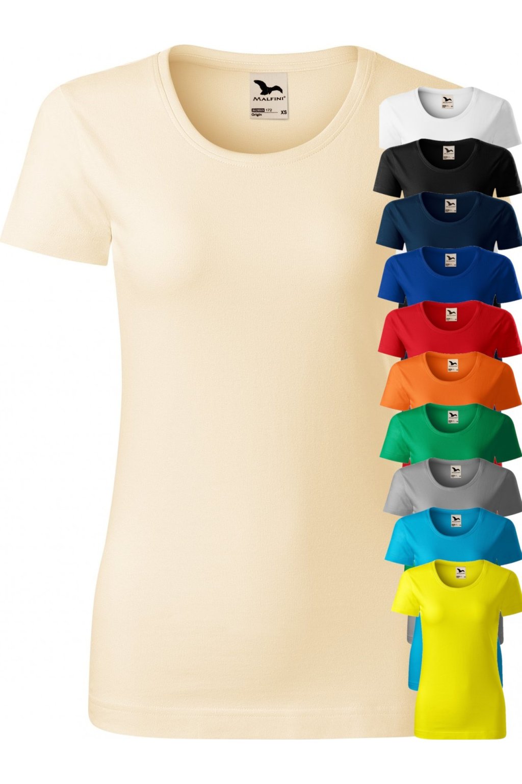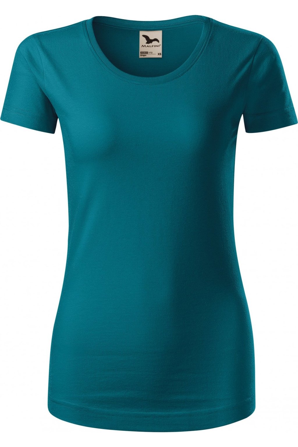 certifikovaná organická bavlna, lehce vypasovaný střih s bočními švy, úzký lem průkrčníku z vrchového materiálu s 5 % elastanu, vnitřní část průkrčníku začištěna páskou z vrchového materiálu, zpevnění ramenních švů páskou, tvarovaný dolní kraj, více o Standardu GOTS