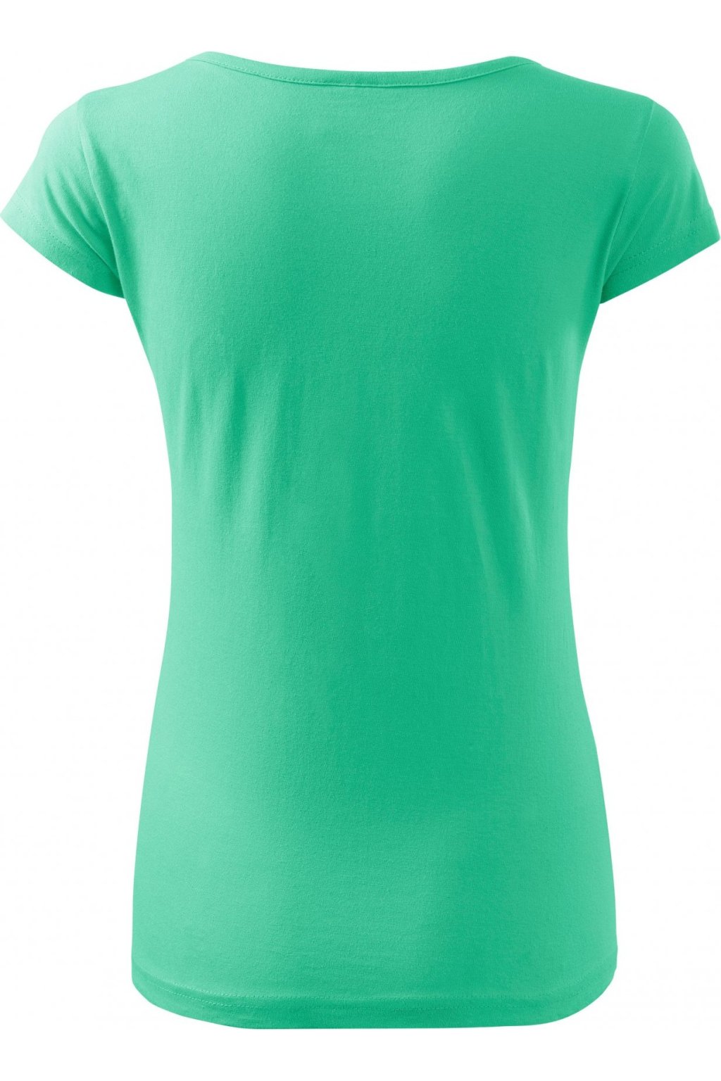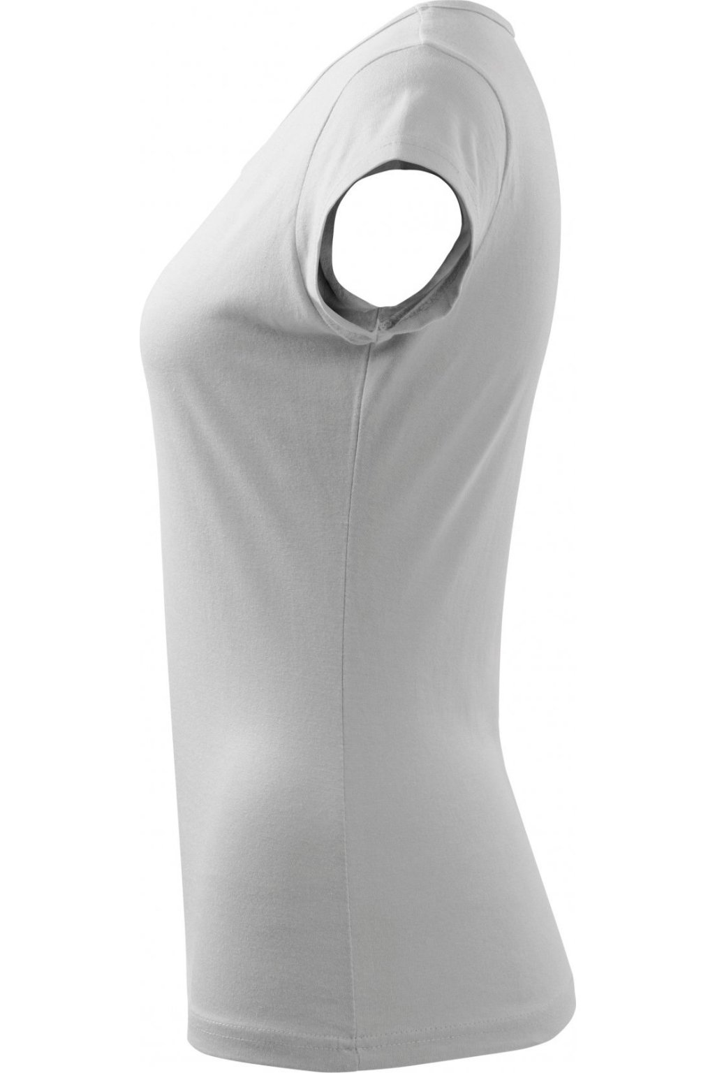 lehce vypasovaný střih s bočními švy, průkrčník lemován vrchovým materiálem, zpevnění ramenních švů páskou, rukávy kratší délky, silikonová úprava