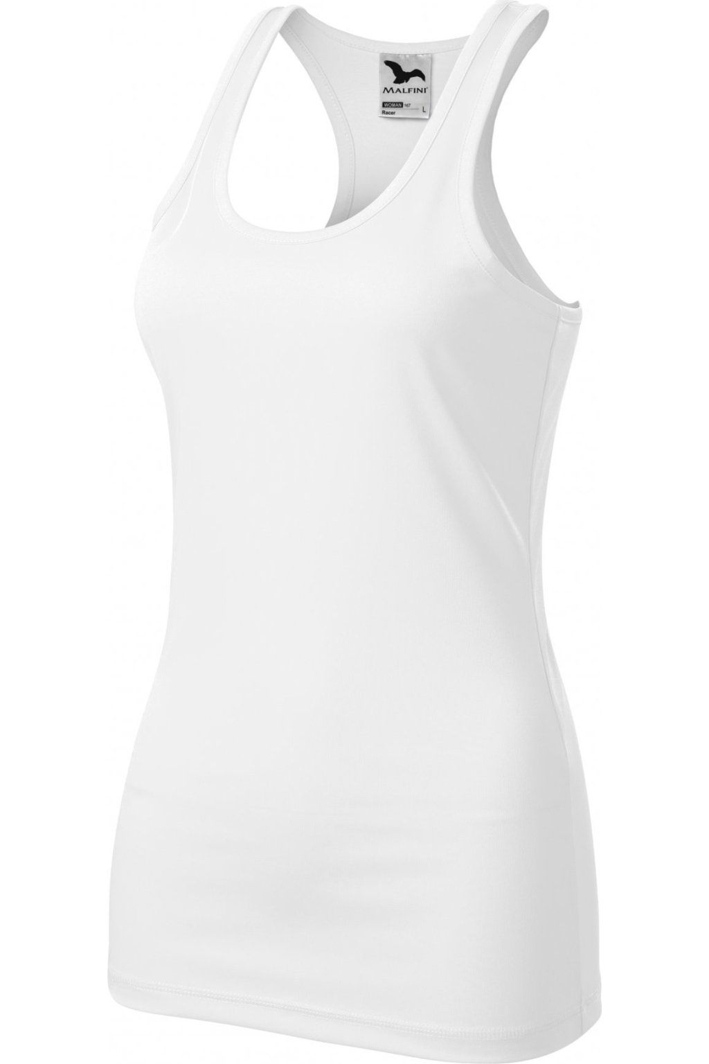 hladký rychleschnoucí materiál, lehce vypasovaný střih s bočními švy, vykrojený zadní díl tílka (racerback), hlubší kulatý výstřih, průkrčník a průramky lemovány vrchovým materiálem, ideální pro sport a pohybové aktivity, vhodné pro sublimační potisk (světlé barvy)