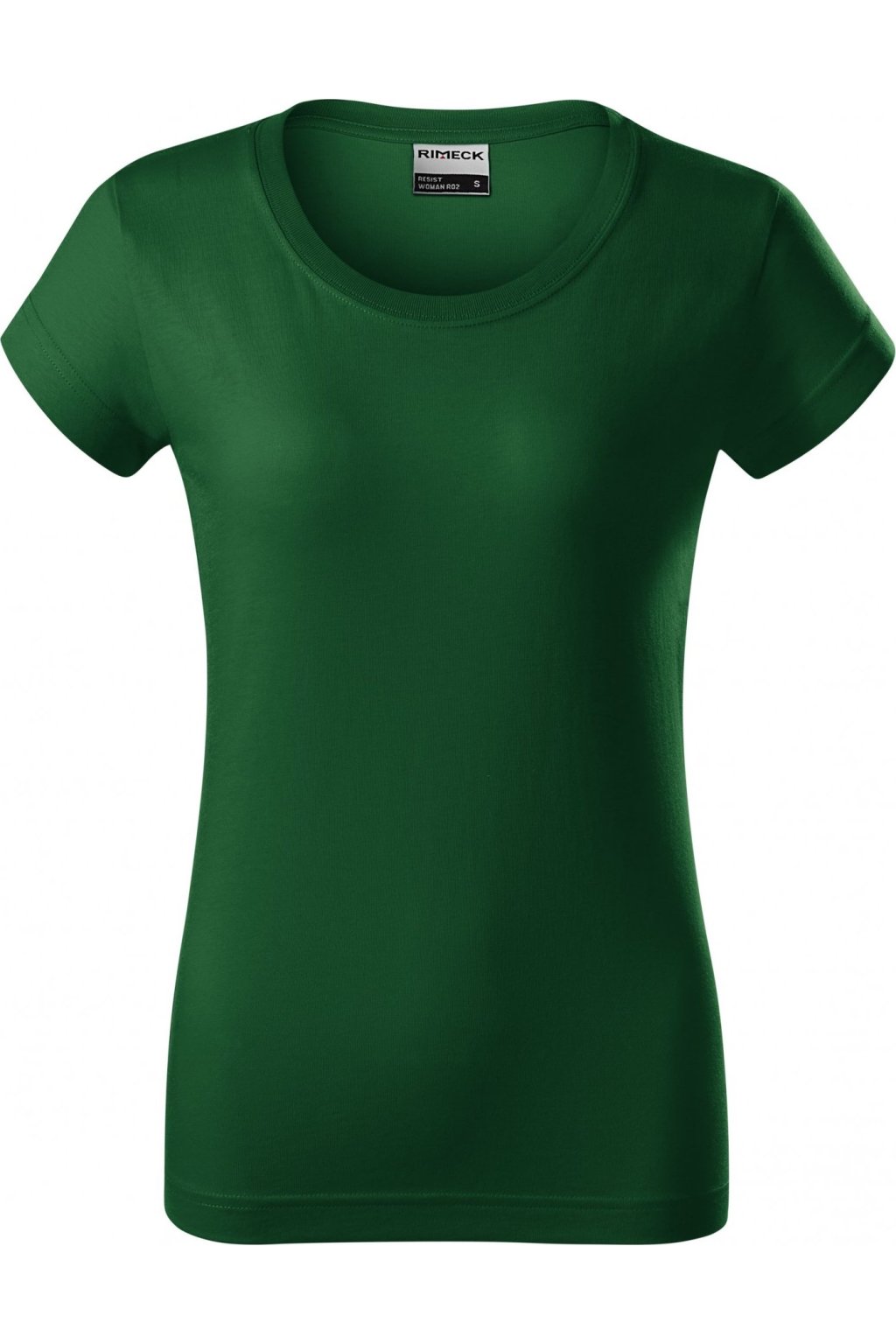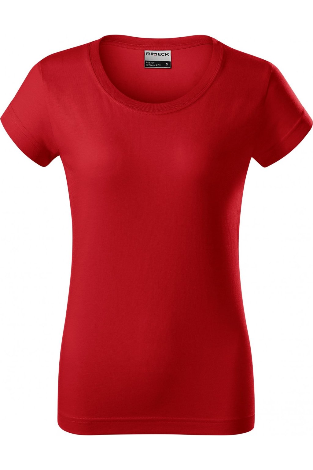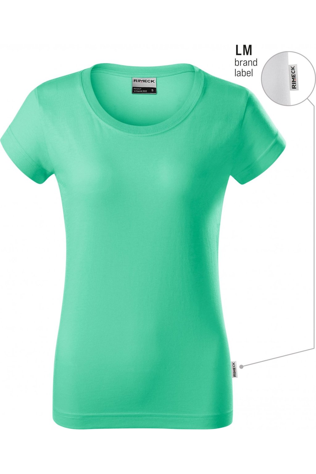 předsrážená bavlna odolná vyšším teplotám, pratelné na 95 °C (bílé) a 60 °C (barevné), lehce vypasovaný střih s bočními švy, průkrčník lemován žebrovým úpletem 1:1, zpevnění ramenních švů páskou, rukávy kratší délky, Produkt je dostupný ve dvou variantách: s/bez brand labelu v bočním švu (viz přehled barev). Varianta s brand labelem pouze do vyprodání zásob.