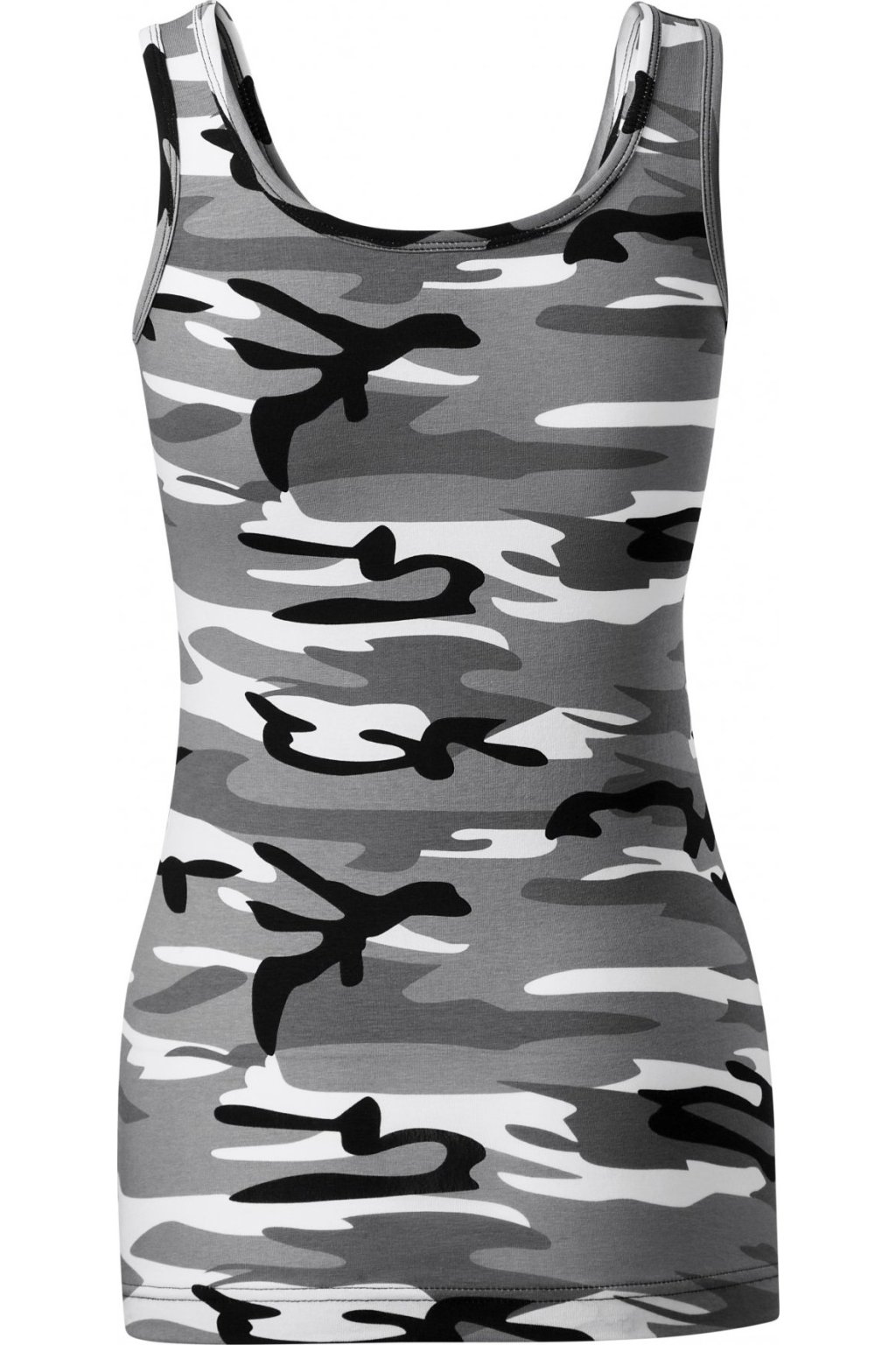 strečový materiál udržující stálost tvaru, přiléhavý střih s bočními švy, hlubší kulatý výstřih, průkrčník a průramky lemovány vrchovým materiálem, širší ramínka