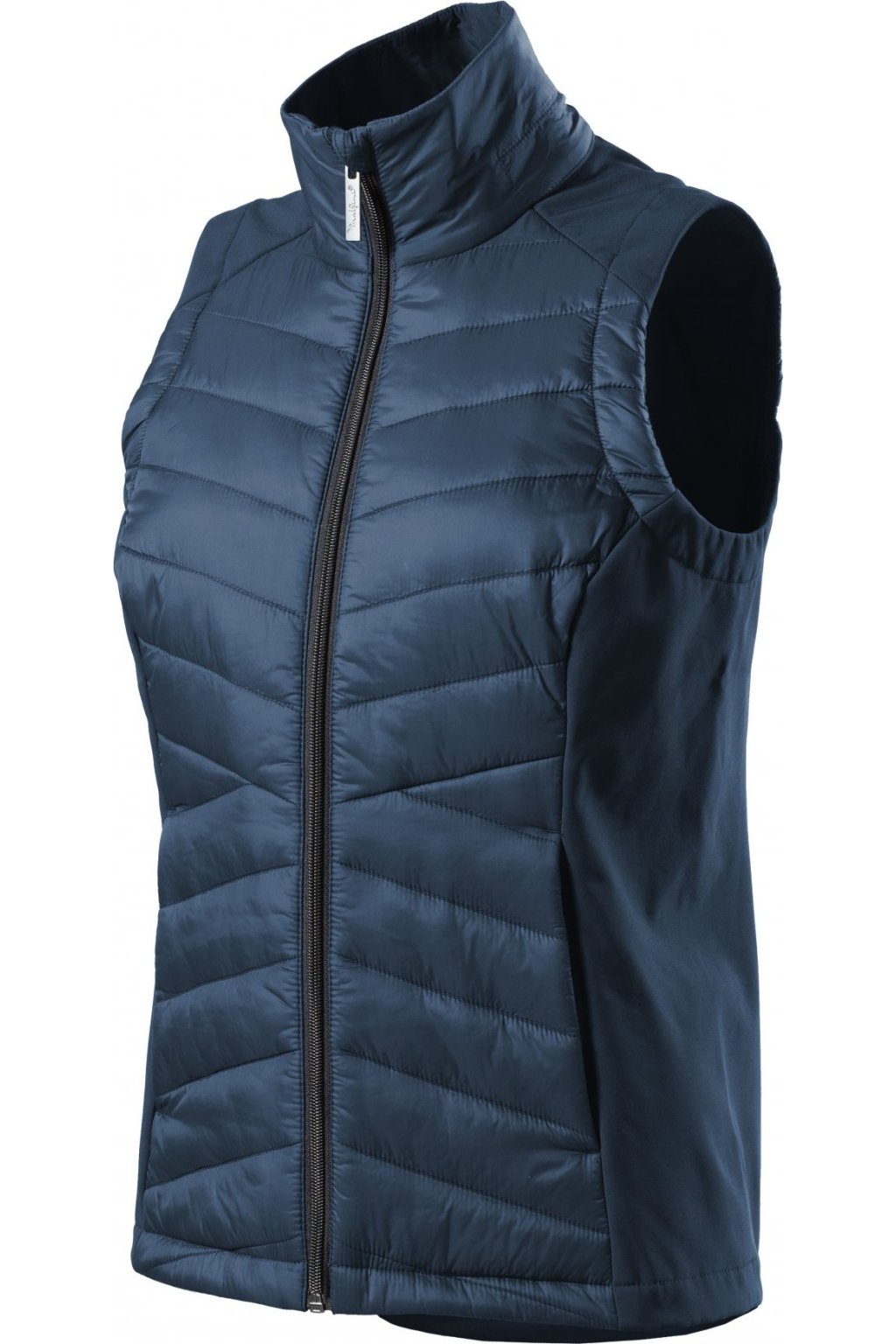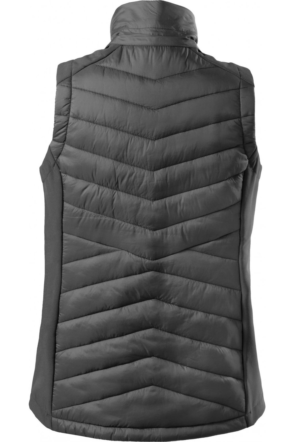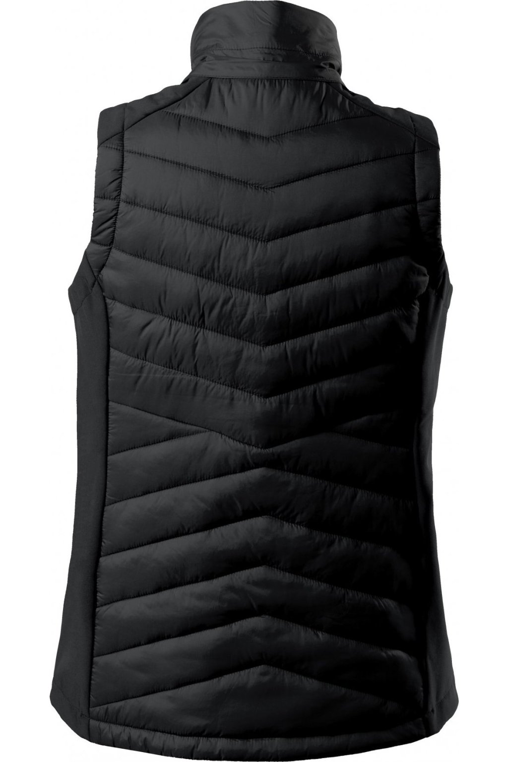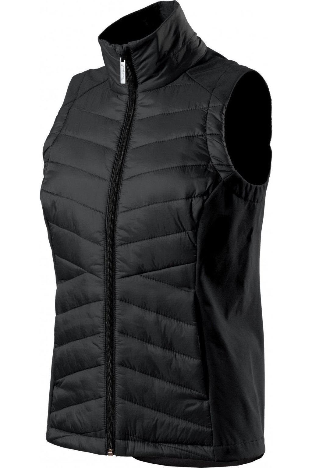kombinace prošívaného a softshellového materiálu, střih tvarovaný bočními díly, celopropínací spirálový zip s krytkou brady, boční kapsy se spirálovým zipem, vnitřní náprsní kapsa na zip, tvarovaný a mírně prodloužený zadní díl , vstup pro branding v podšívce zadního dílu