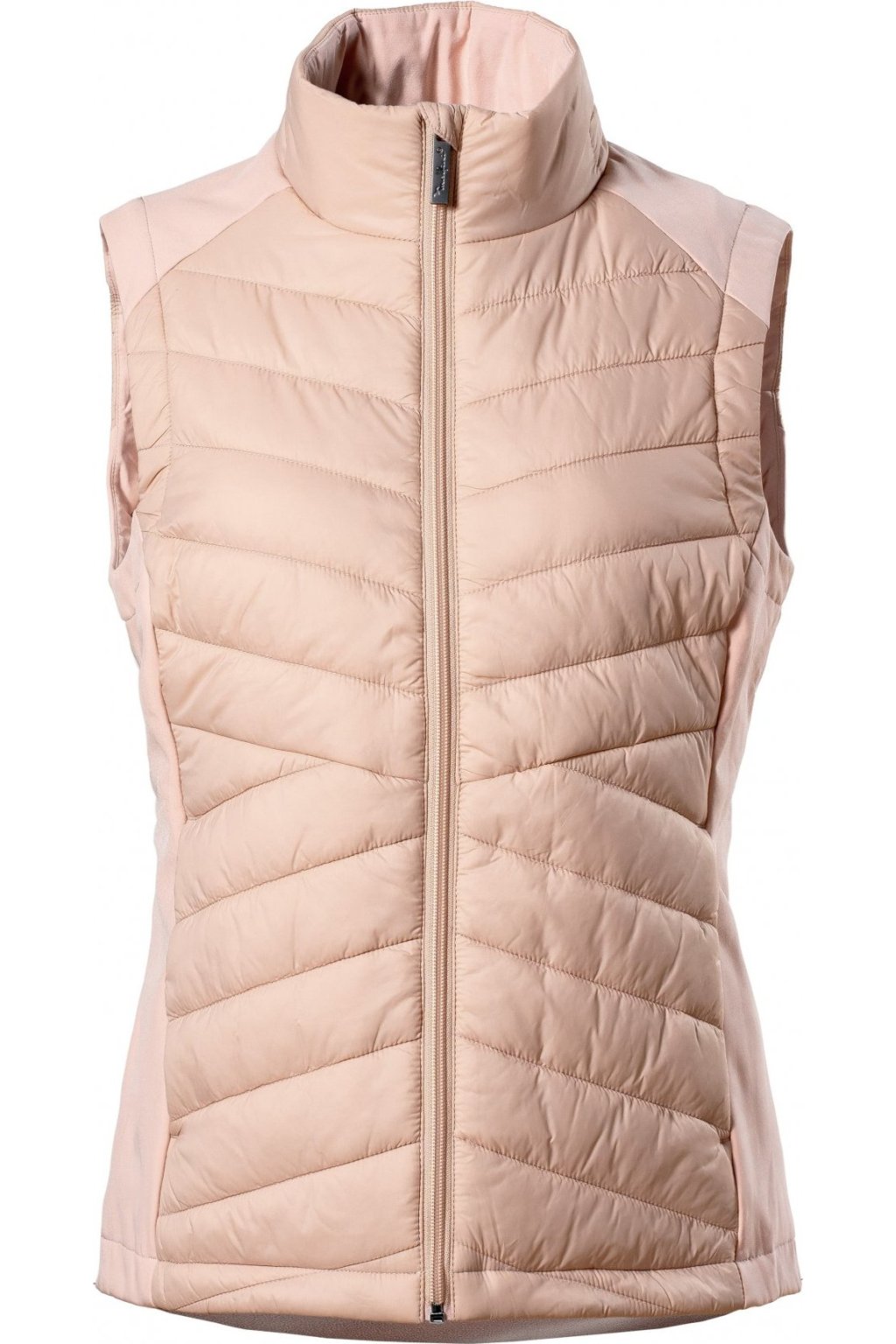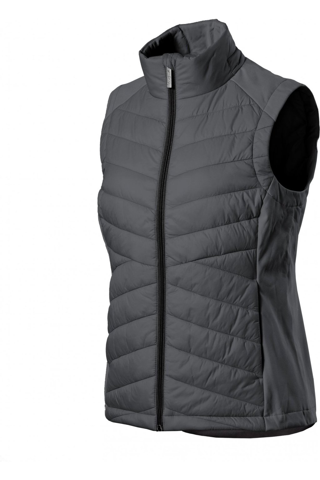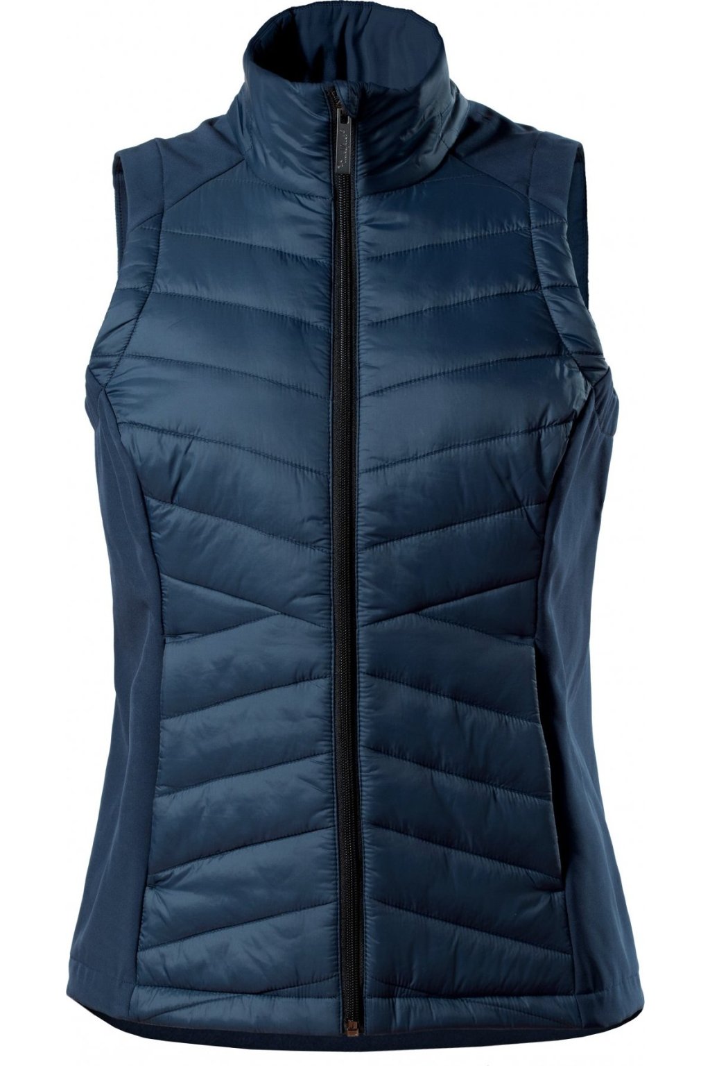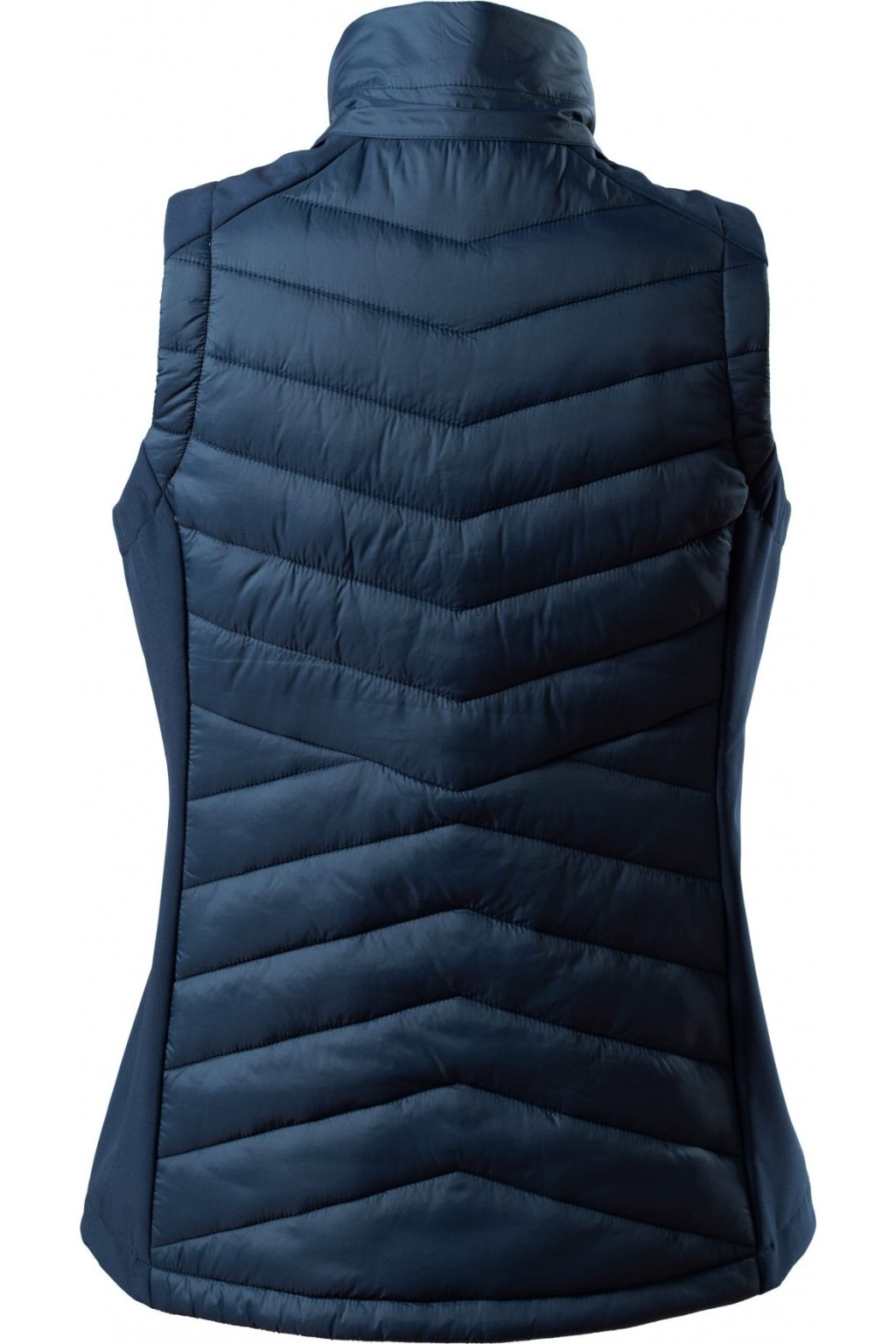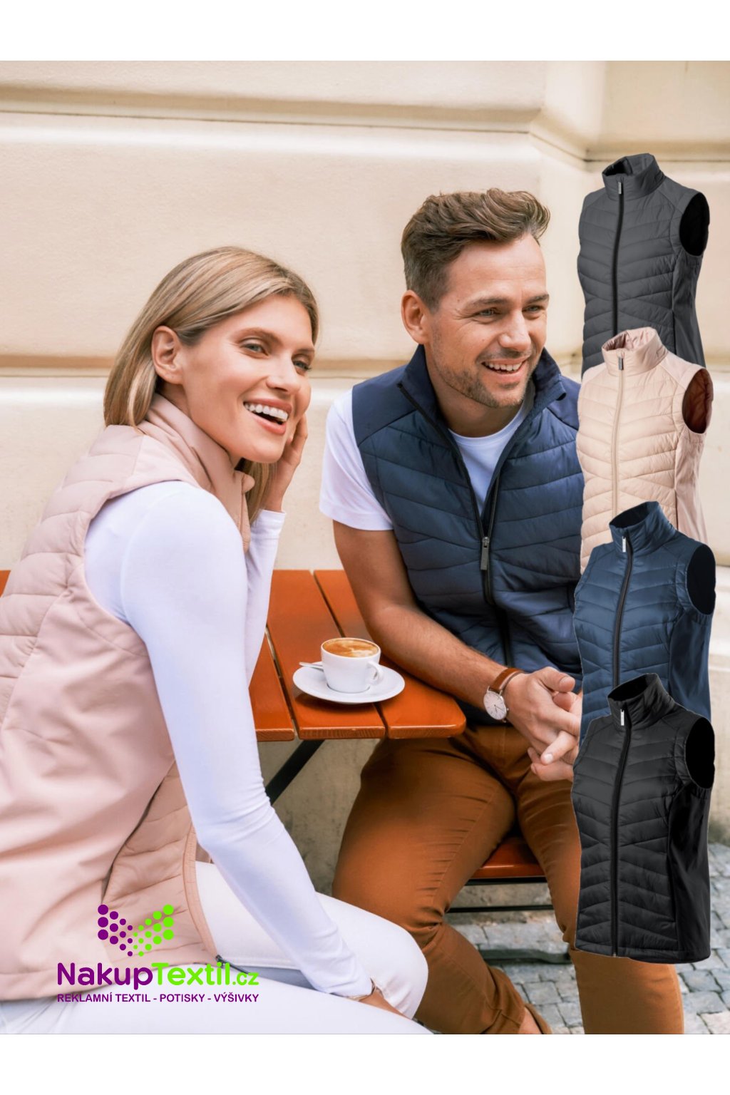 kombinace prošívaného a softshellového materiálu, střih tvarovaný bočními díly, celopropínací spirálový zip s krytkou brady, boční kapsy se spirálovým zipem, vnitřní náprsní kapsa na zip, tvarovaný a mírně prodloužený zadní díl , vstup pro branding v podšívce zadního dílu