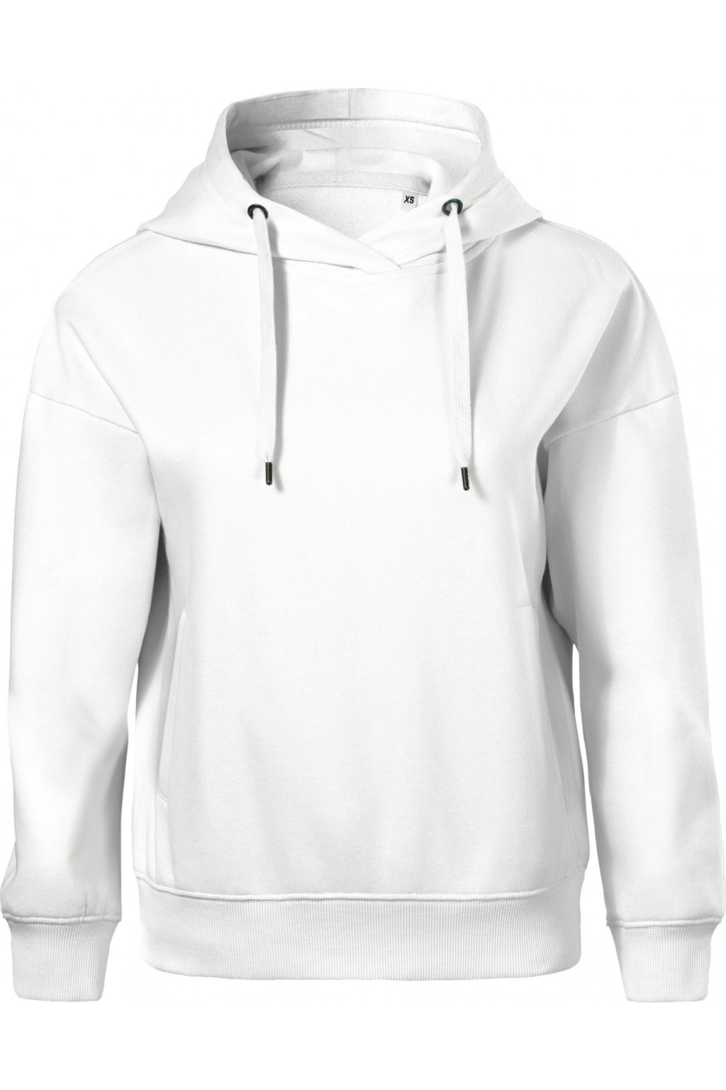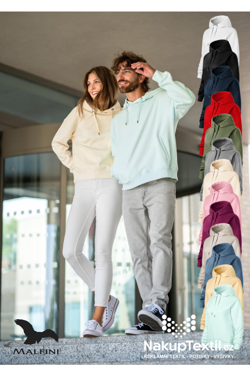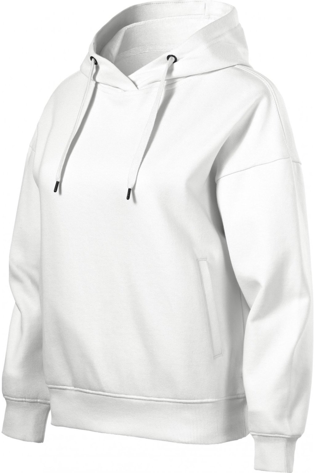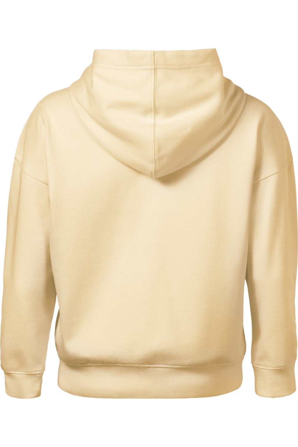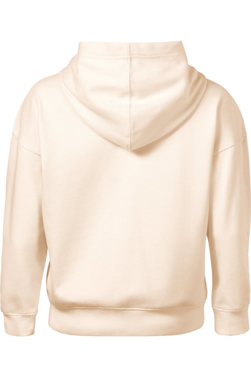 bez etikety - připraveno na rebranding, volný střih s bočními švy, kapuce s podšívkou, na stažení šňůrkou, neutrální velikostní štítek v boční části průkrčníku, vnitřní část průkrčníku začištěna páskou v barvě vrchového materiálu, nízkohlavicové rukávy, lištové kapsy ve stylu klokanky, dolní lem a manžety rukávů z žebrového úpletu 2:2 s 5 % elastanu, vnitřní strana počesaná