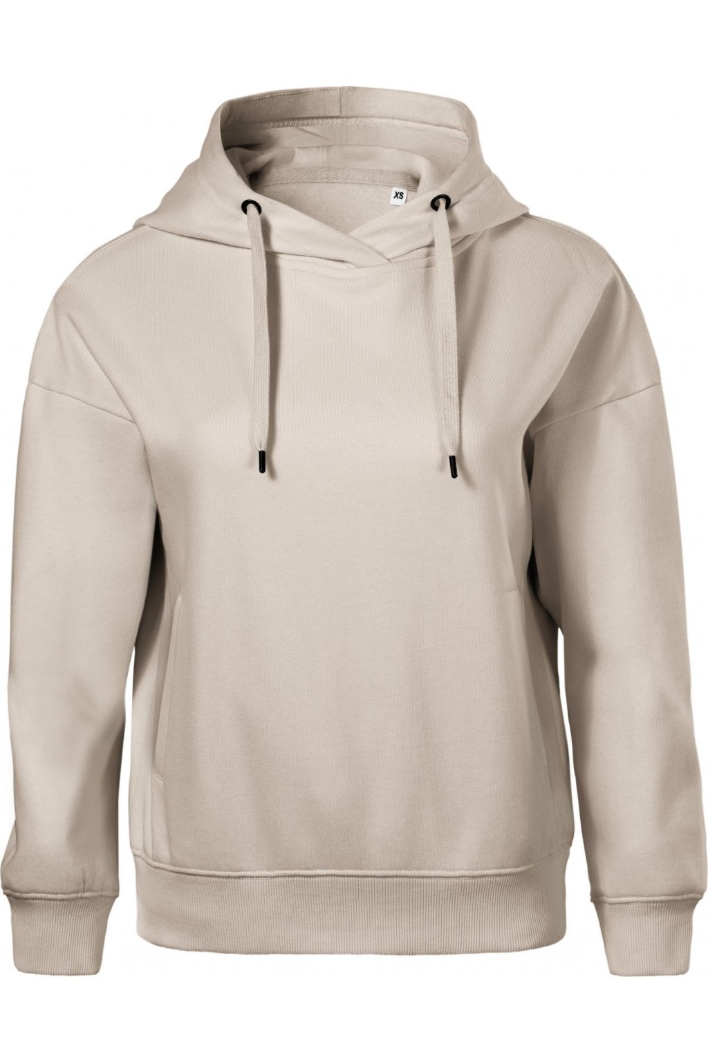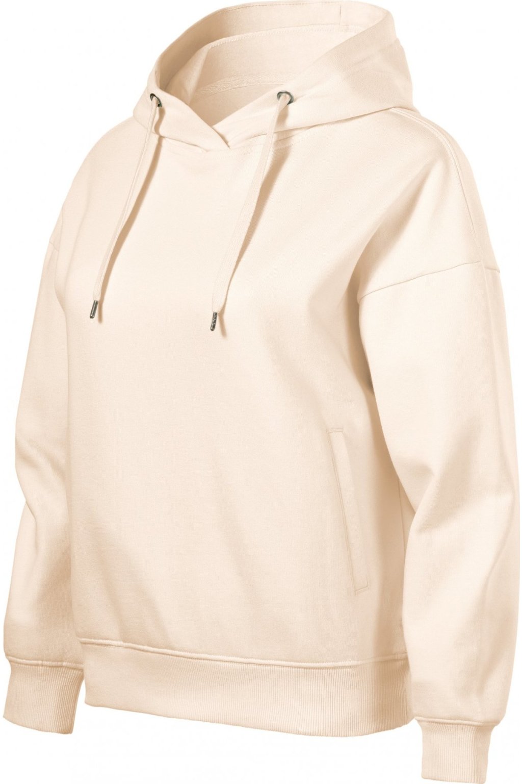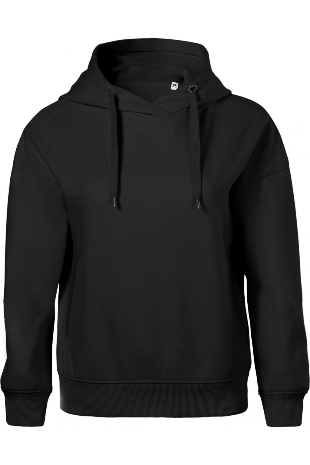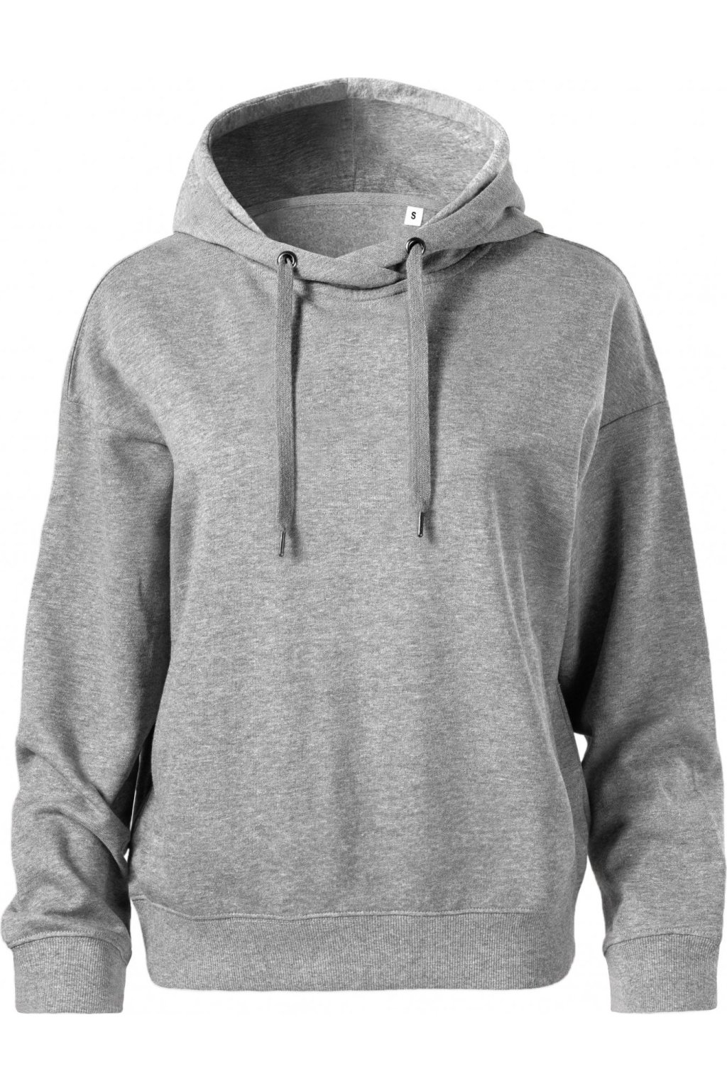 bez etikety - připraveno na rebranding, volný střih s bočními švy, kapuce s podšívkou, na stažení šňůrkou, neutrální velikostní štítek v boční části průkrčníku, vnitřní část průkrčníku začištěna páskou v barvě vrchového materiálu, nízkohlavicové rukávy, lištové kapsy ve stylu klokanky, dolní lem a manžety rukávů z žebrového úpletu 2:2 s 5 % elastanu, vnitřní strana počesaná