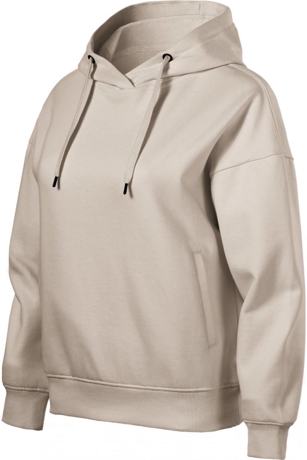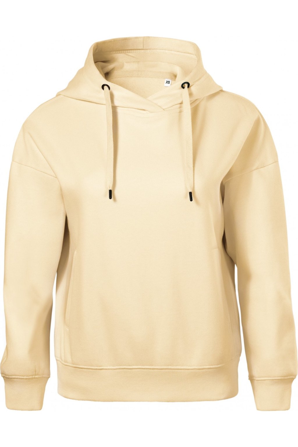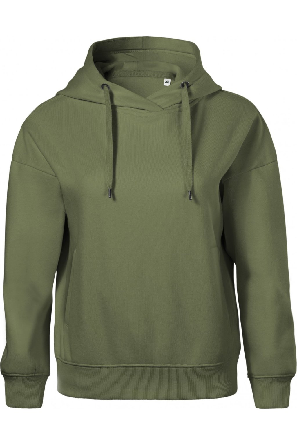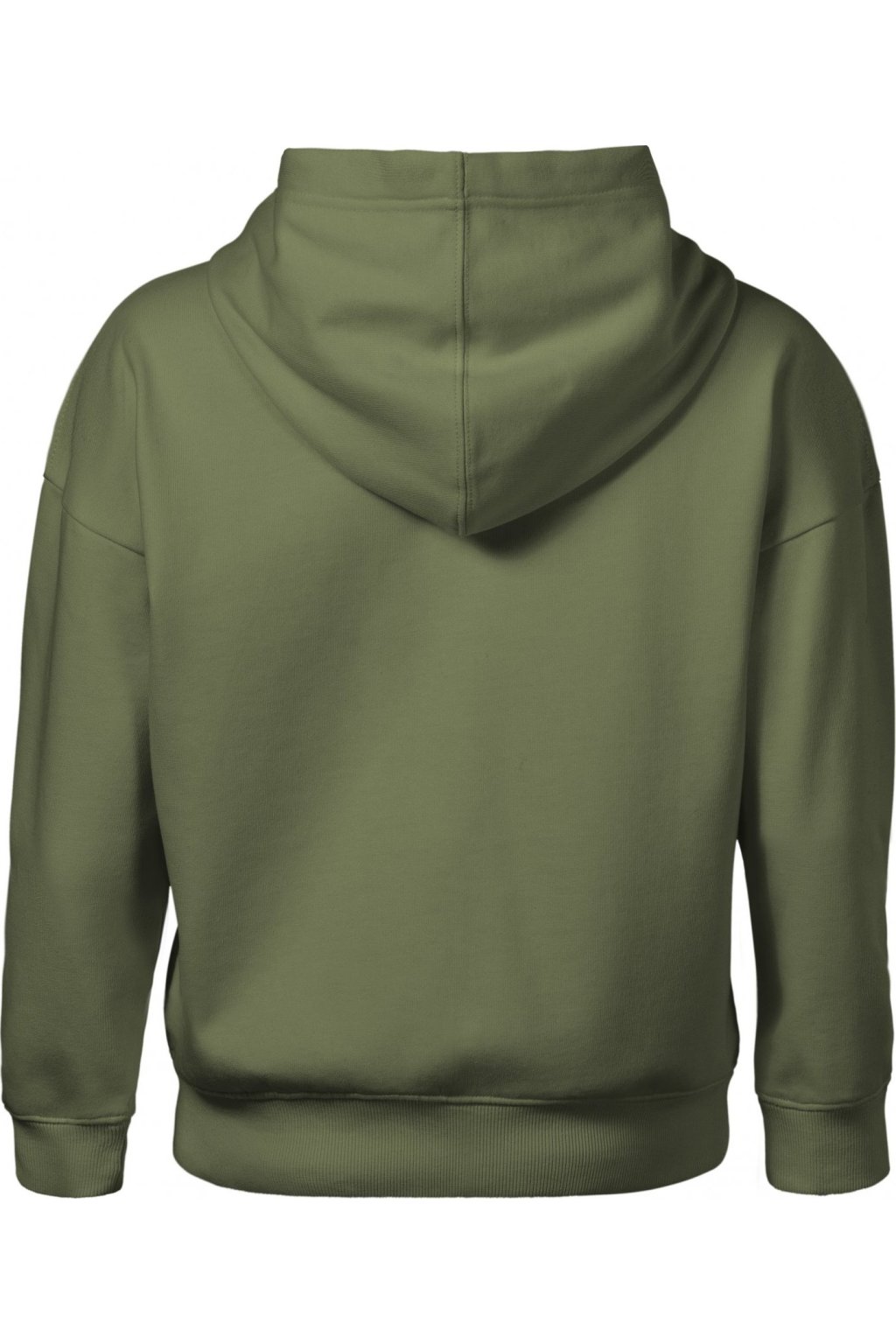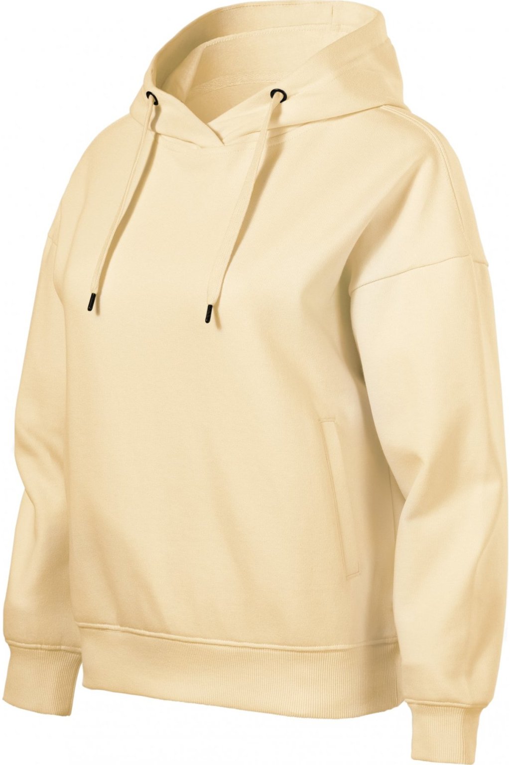 bez etikety - připraveno na rebranding, volný střih s bočními švy, kapuce s podšívkou, na stažení šňůrkou, neutrální velikostní štítek v boční části průkrčníku, vnitřní část průkrčníku začištěna páskou v barvě vrchového materiálu, nízkohlavicové rukávy, lištové kapsy ve stylu klokanky, dolní lem a manžety rukávů z žebrového úpletu 2:2 s 5 % elastanu, vnitřní strana počesaná