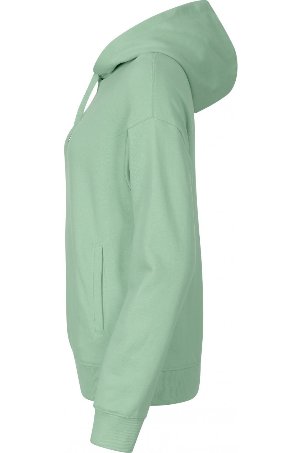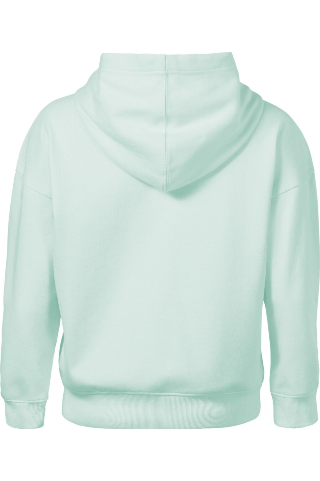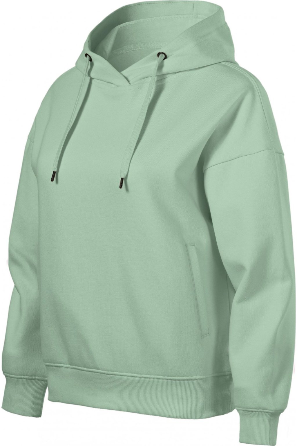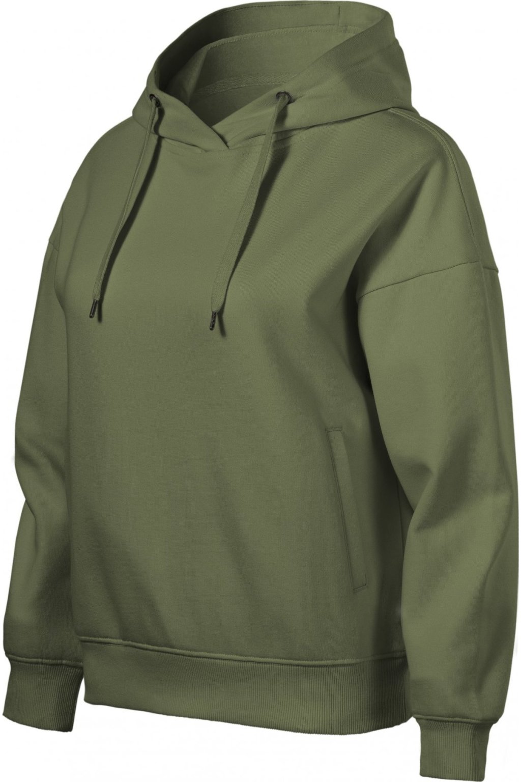 bez etikety - připraveno na rebranding, volný střih s bočními švy, kapuce s podšívkou, na stažení šňůrkou, neutrální velikostní štítek v boční části průkrčníku, vnitřní část průkrčníku začištěna páskou v barvě vrchového materiálu, nízkohlavicové rukávy, lištové kapsy ve stylu klokanky, dolní lem a manžety rukávů z žebrového úpletu 2:2 s 5 % elastanu, vnitřní strana počesaná