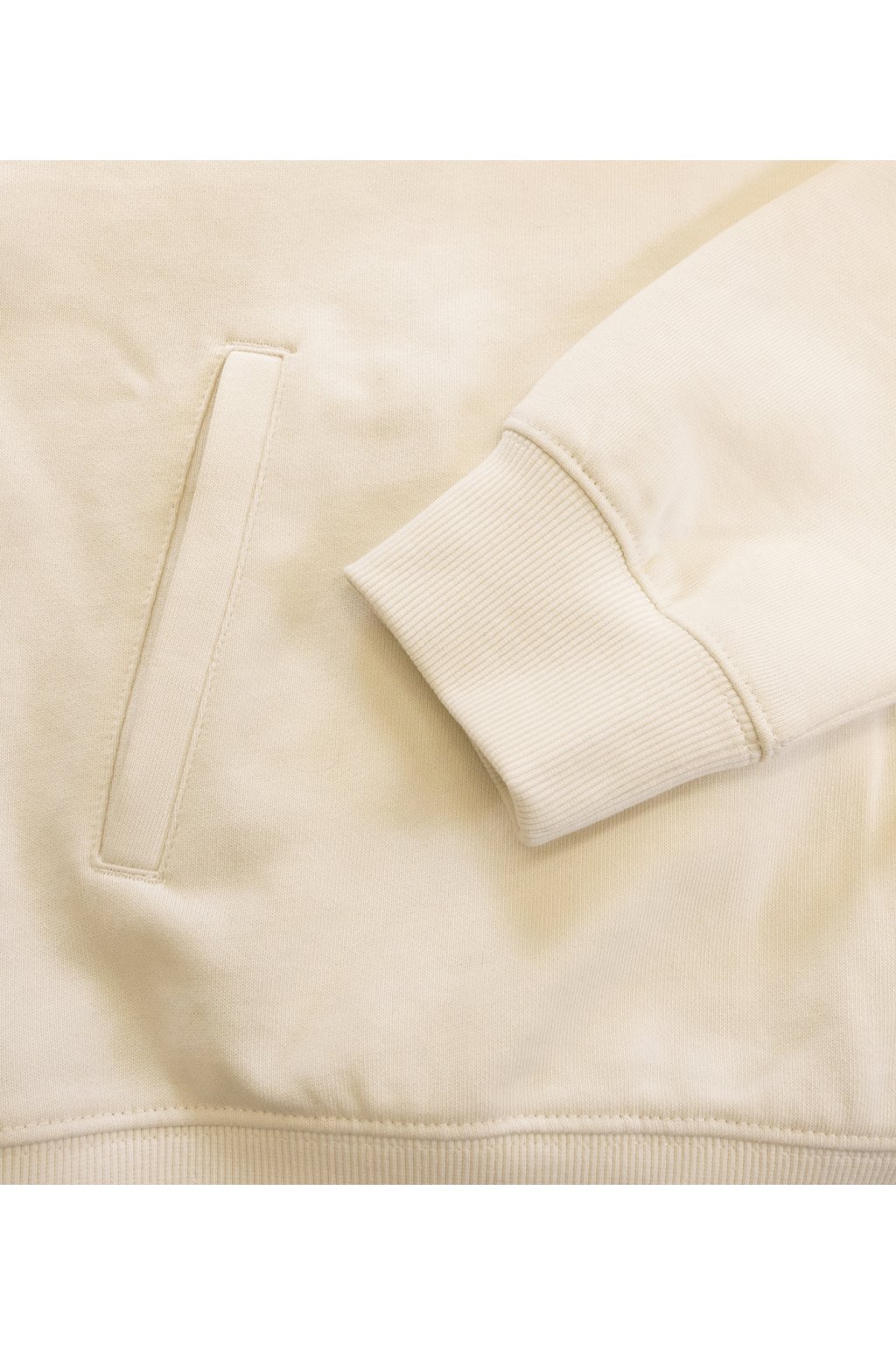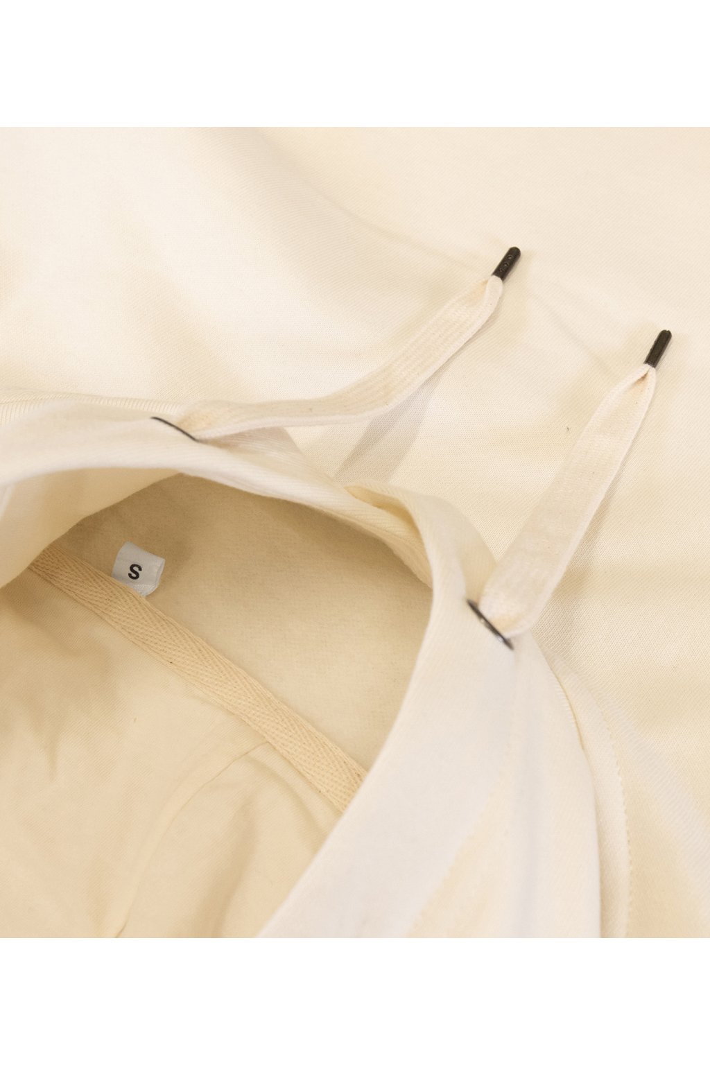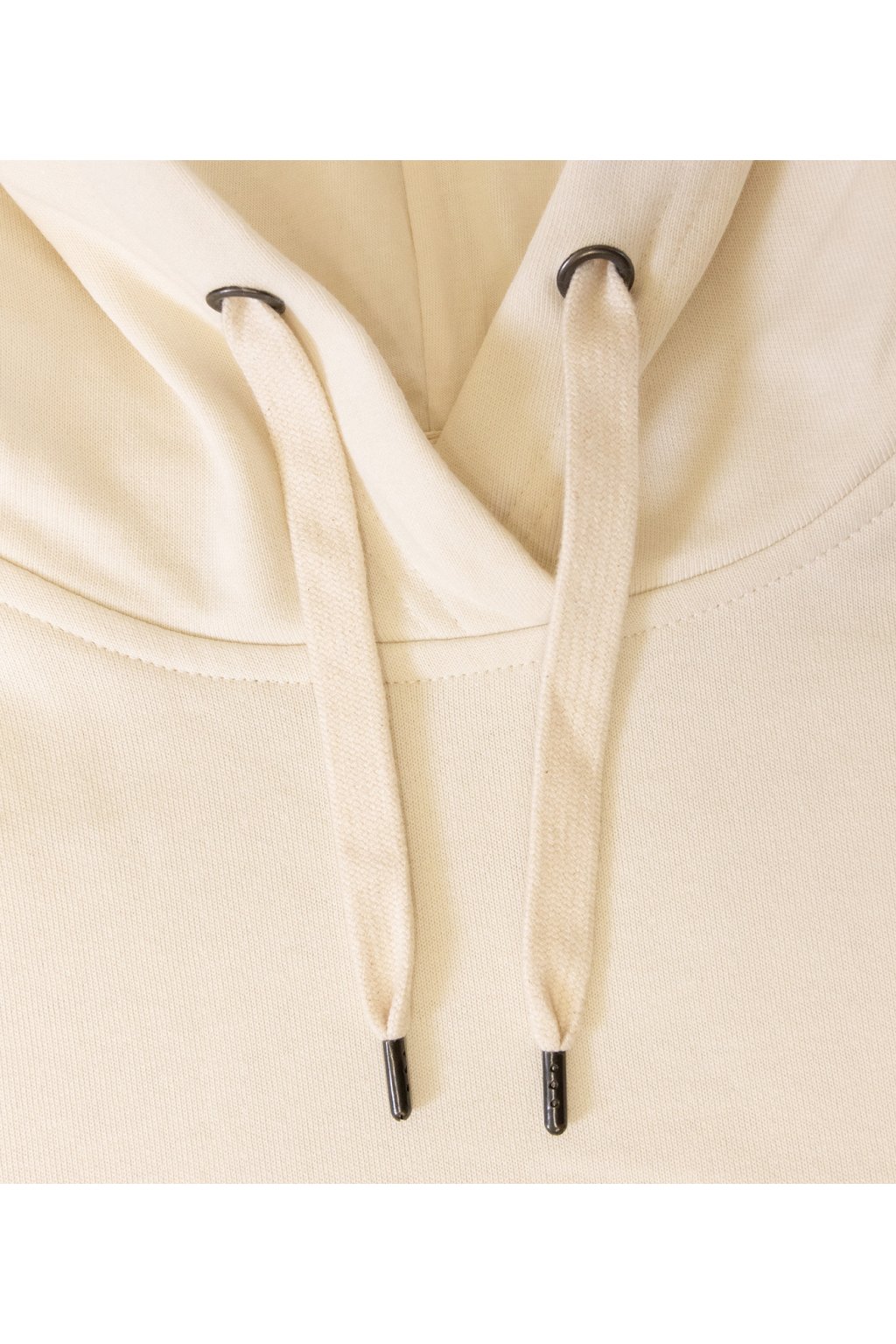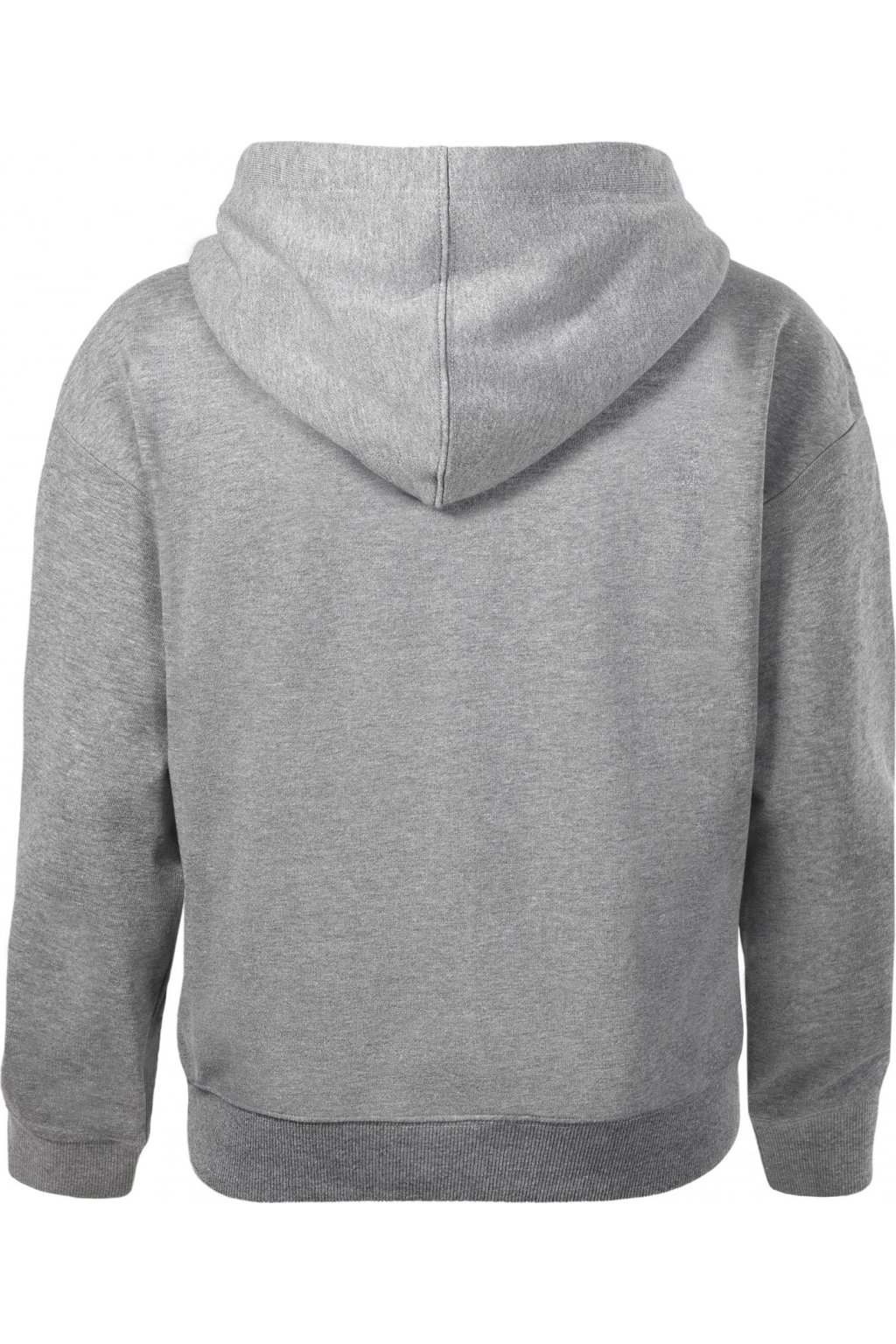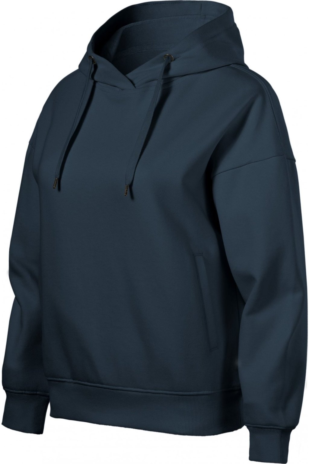bez etikety - připraveno na rebranding, volný střih s bočními švy, kapuce s podšívkou, na stažení šňůrkou, neutrální velikostní štítek v boční části průkrčníku, vnitřní část průkrčníku začištěna páskou v barvě vrchového materiálu, nízkohlavicové rukávy, lištové kapsy ve stylu klokanky, dolní lem a manžety rukávů z žebrového úpletu 2:2 s 5 % elastanu, vnitřní strana počesaná
