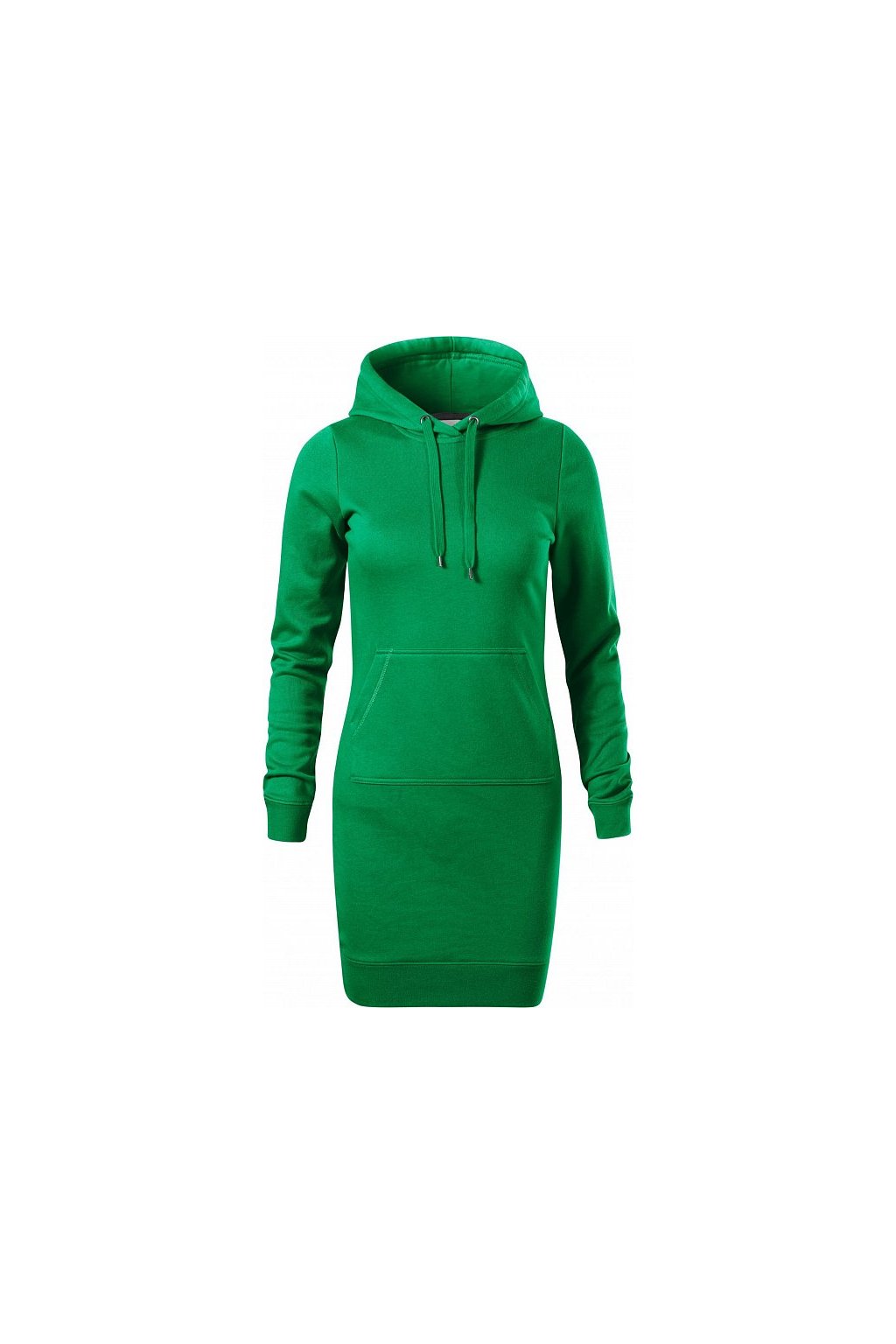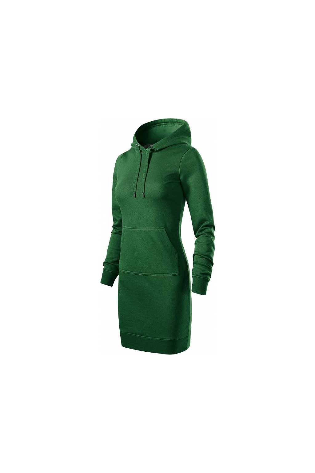 lehce vypasovaný střih s bočními švy, délka nad kolena, kapuce s podšívkou, na stažení šňůrkou, vnitřní část průkrčníku začištěna páskou v barvě 94, dolní lem a manžety rukávů z žebrového úpletu 1:1 s 5 % elastanu, nakládaná kapsa ve stylu klokanky, vnitřní strana nepočesaná
