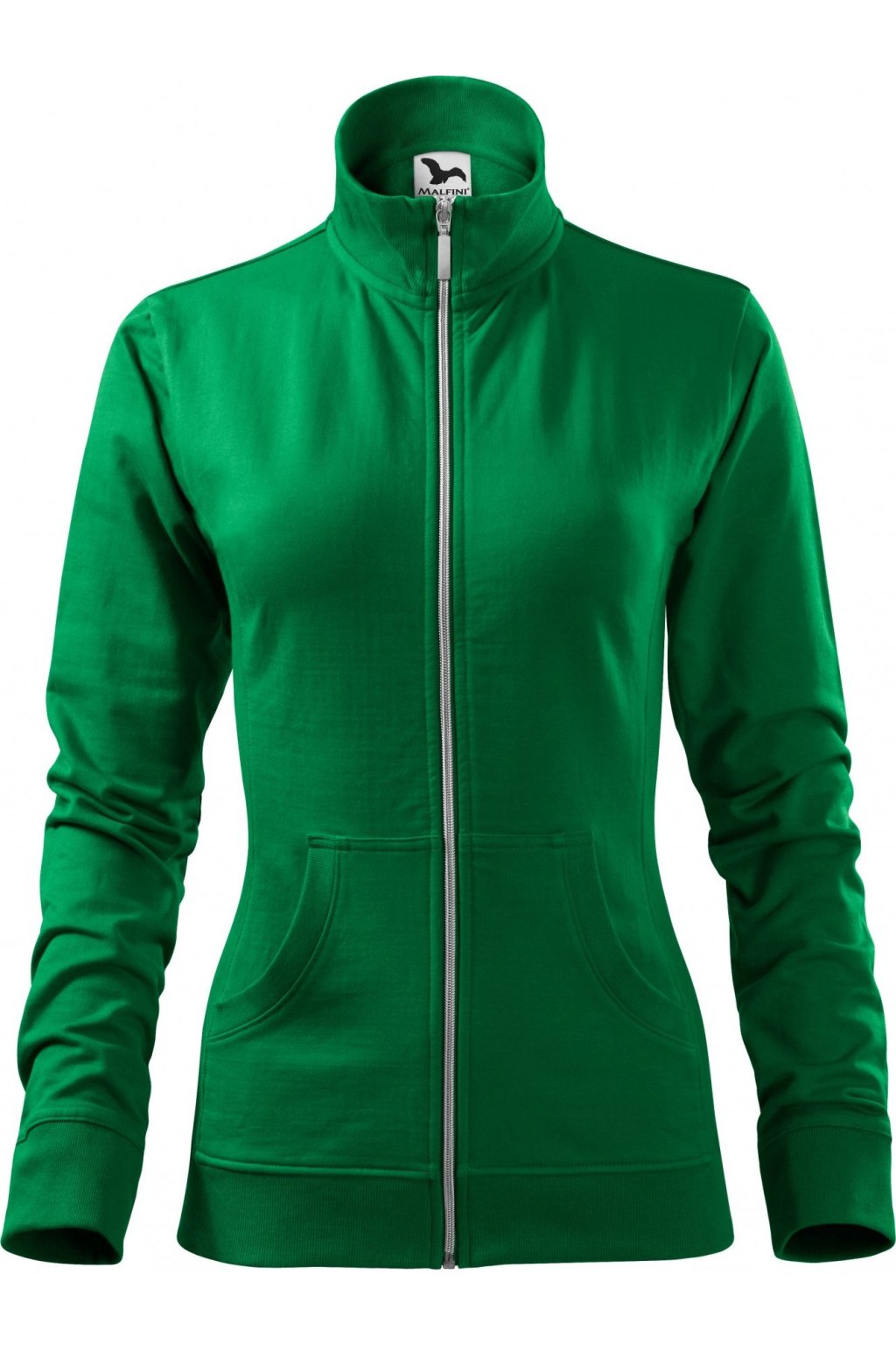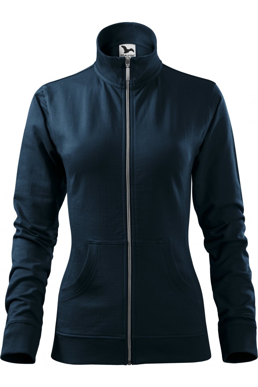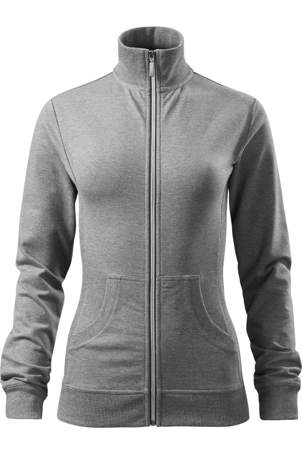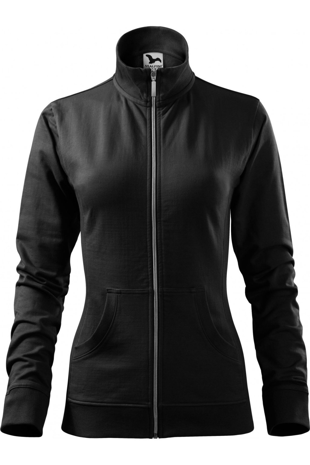 strečový materiál udržující stálost tvaru, střih tvarovaný bočními díly, celopropínací stříbrný spirálový zip, stojáček a boční díly z žebrového úpletu 2:2 s 5 % elastanu, vnitřní průkrčník začištěn páskou v barvě vrchového materiálu, nakládané kapsy ve stylu klokanky, dolní lem, manžety a lemy kapes z žebrového úpletu 2:2 s 5 % elastanu, vnitřní strana počesaná