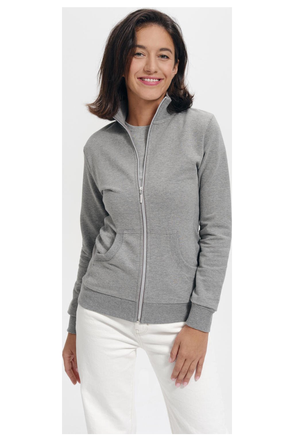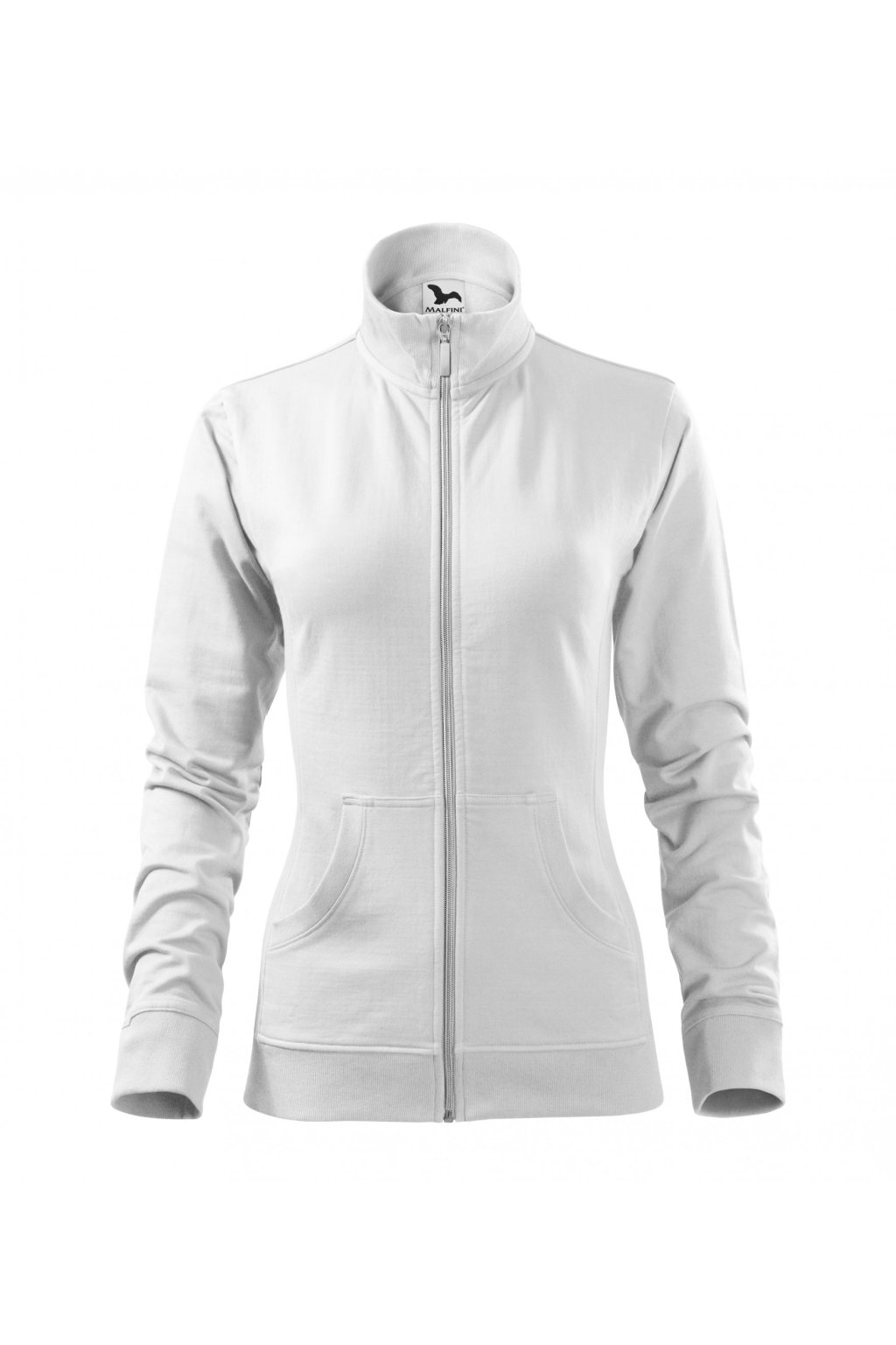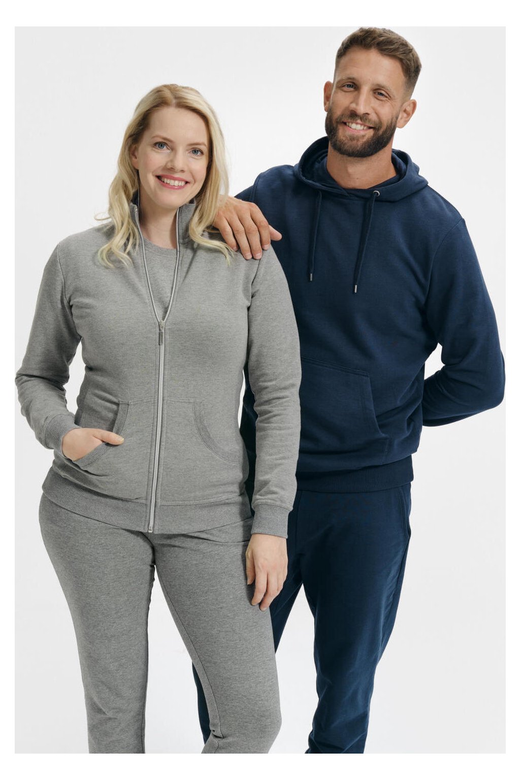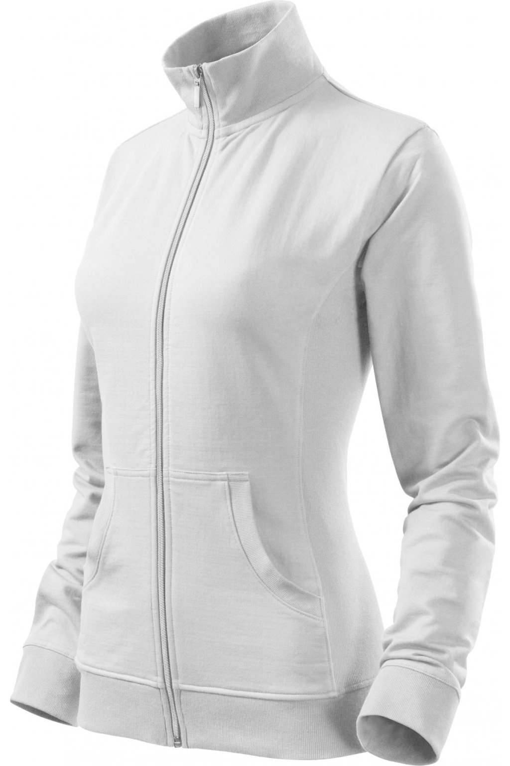 strečový materiál udržující stálost tvaru, střih tvarovaný bočními díly, celopropínací stříbrný spirálový zip, stojáček a boční díly z žebrového úpletu 2:2 s 5 % elastanu, vnitřní průkrčník začištěn páskou v barvě vrchového materiálu, nakládané kapsy ve stylu klokanky, dolní lem, manžety a lemy kapes z žebrového úpletu 2:2 s 5 % elastanu, vnitřní strana počesaná