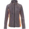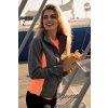 Dámská dvoubarevná vyštíhlená flísová bunda s 8mm černým plastovým celozipem, raglánové rukávy, stahovací šňůrka v pase, elastické stahovací manžety na zápěstí, dvě kapsy se skrytým zipem, jedna přední kapsa na zip, kontrastní výztuž límečku, zesílené švy.