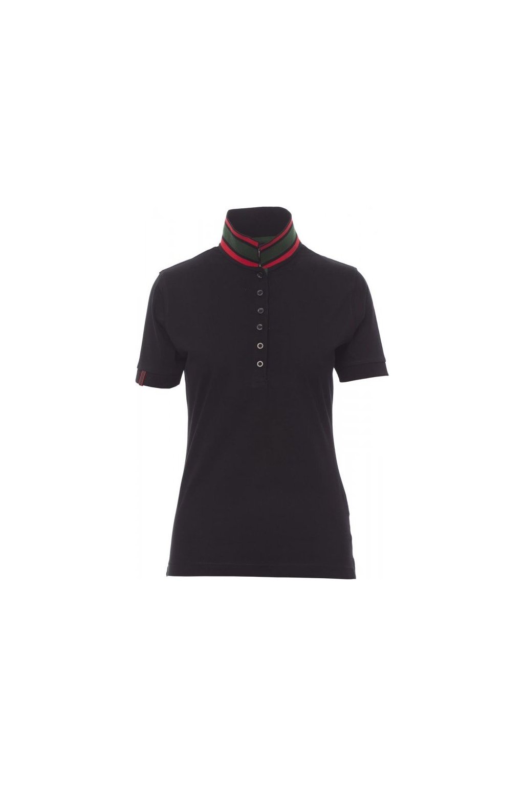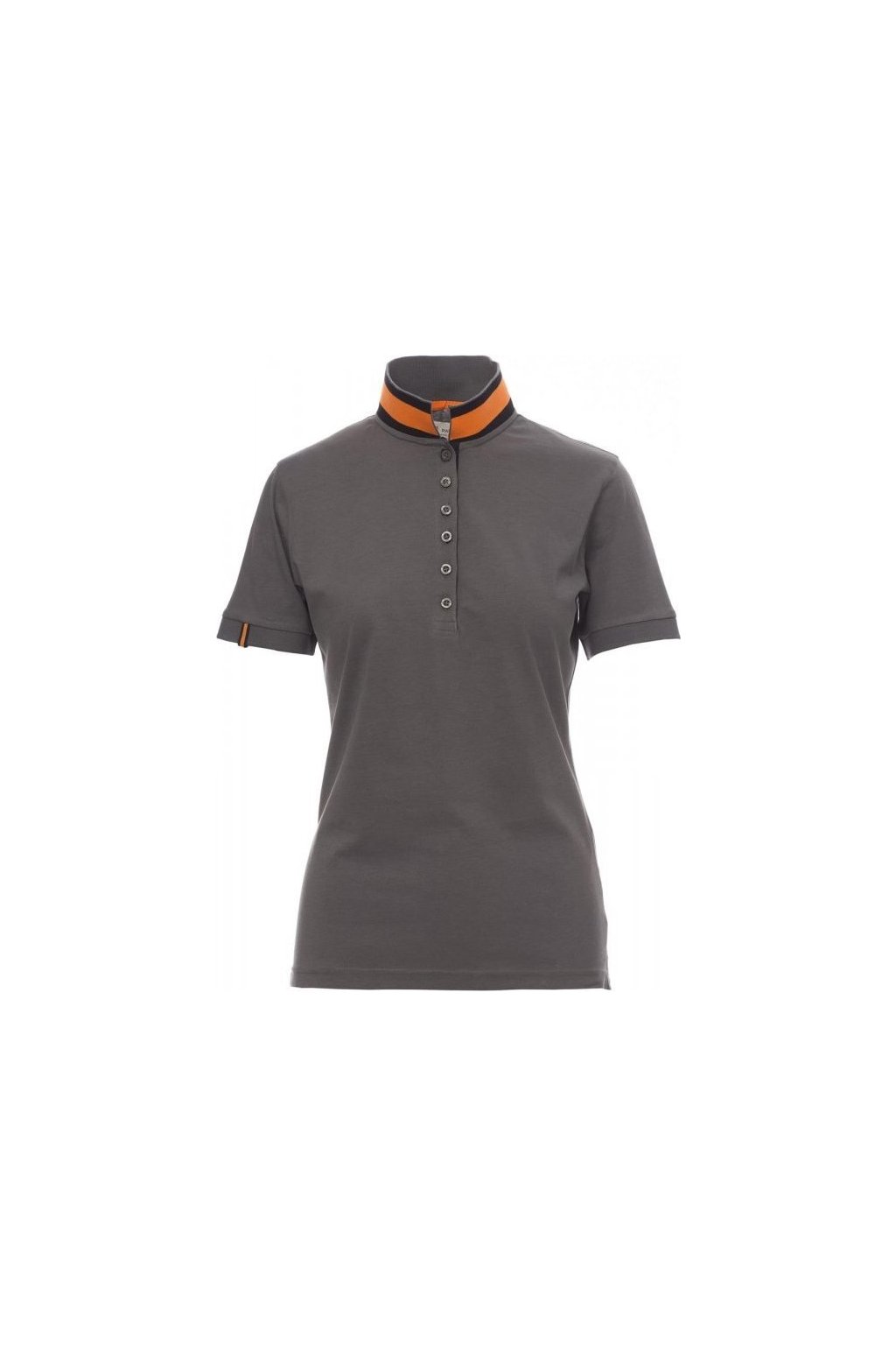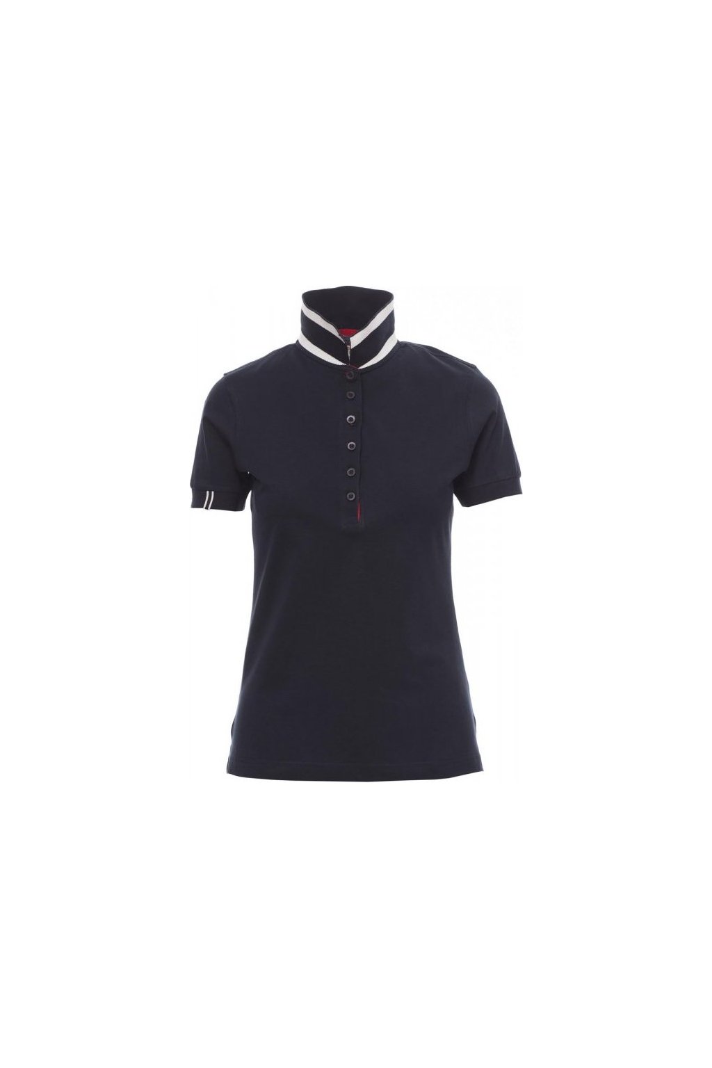 Dámská vyštíhlená polokošile s krátkým rukávem s 6 barevně sladěnými perleťovými knoflíky, barevně sladěný límeček na jedné straně, s kontrastním rubem, který je vidět pouze při zvednutí, kontrastní vnitřní knoflíková klopa a postranní rozparky, barevně lemovaný pravý rukáv ve stejné barvě jako límeček, žebrované lemy rukávů, skryté prošití límečku s kontrastní páskou, postranní vyztužovací páska, tvarovaná výztuž na spodní straně límečku.