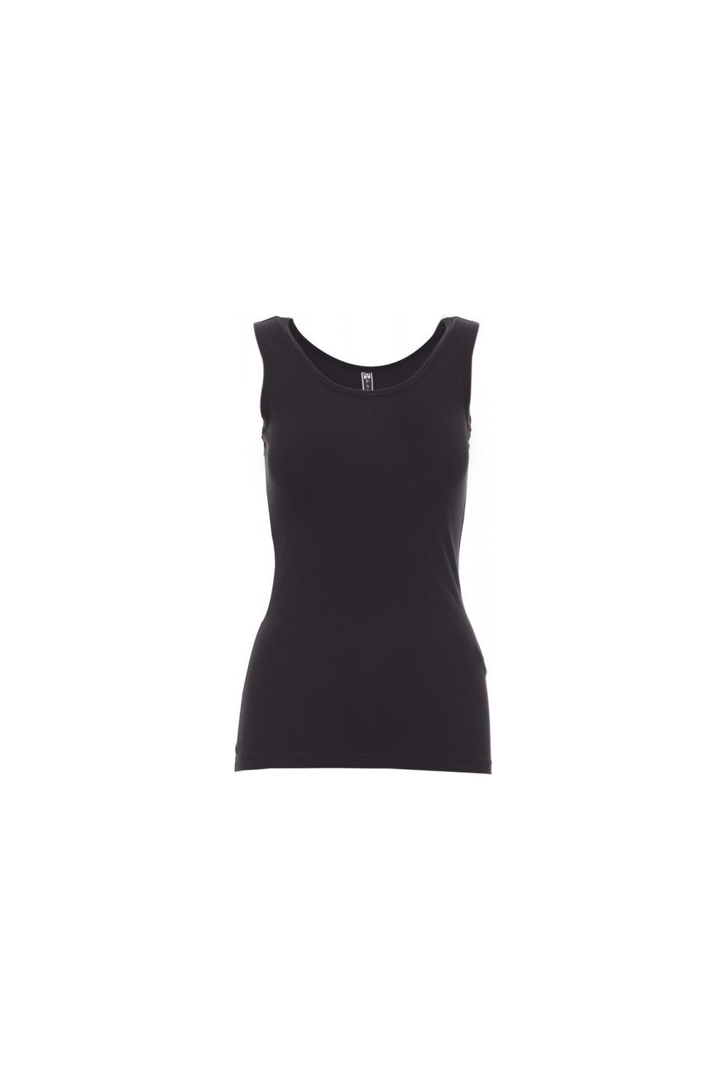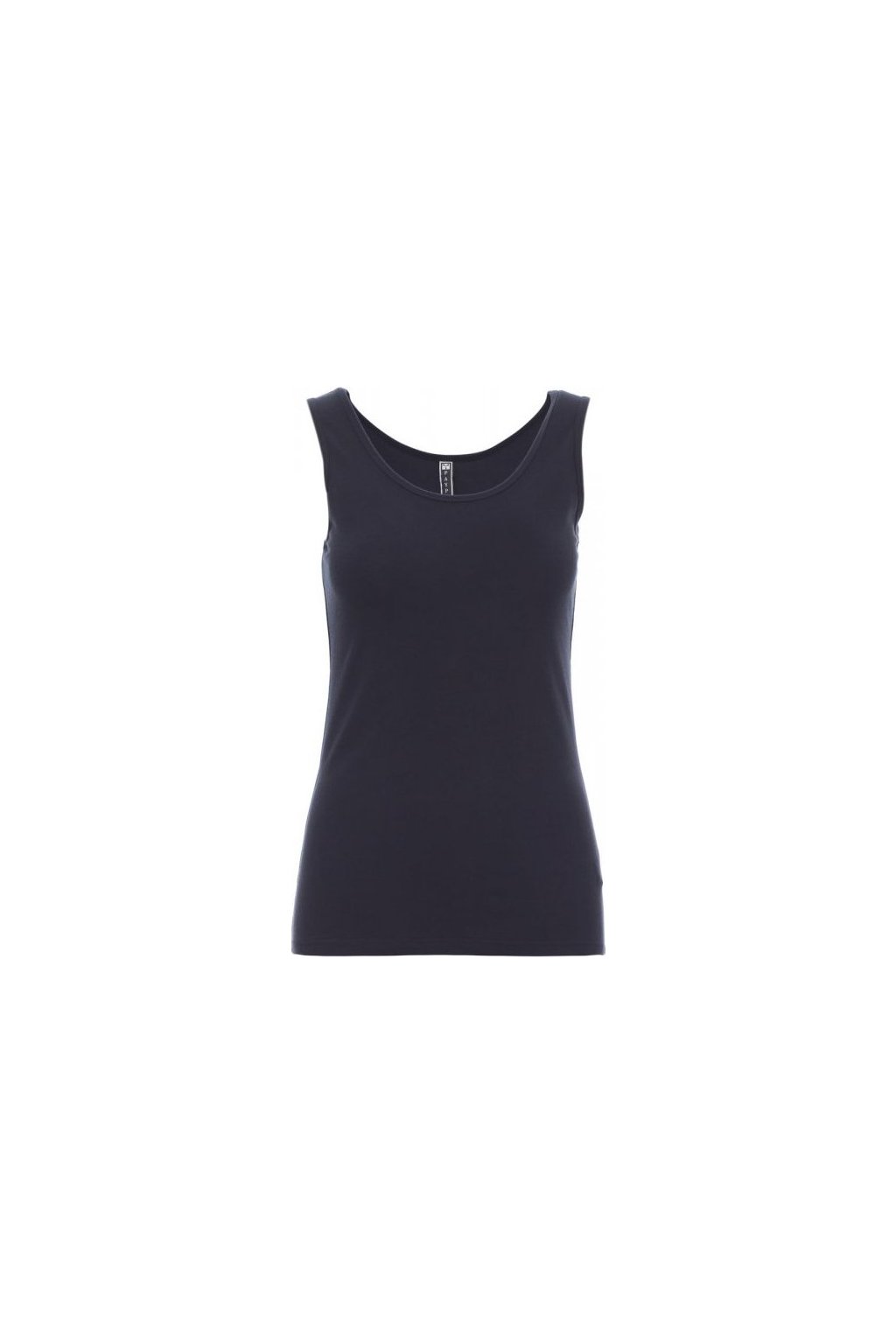 Dámské vyštíhlené tílko s hlubokým kulatým výstřihem, 1 cm lem u krku a u rukávu.