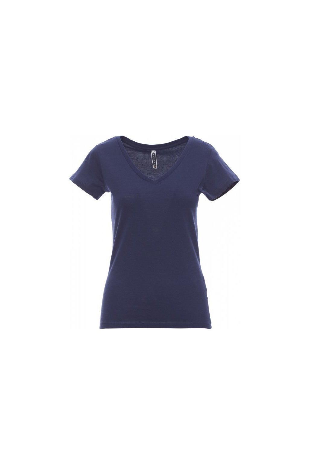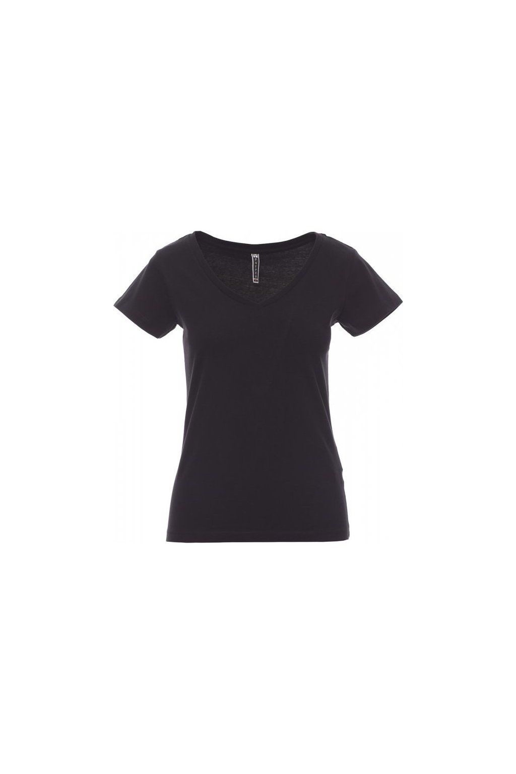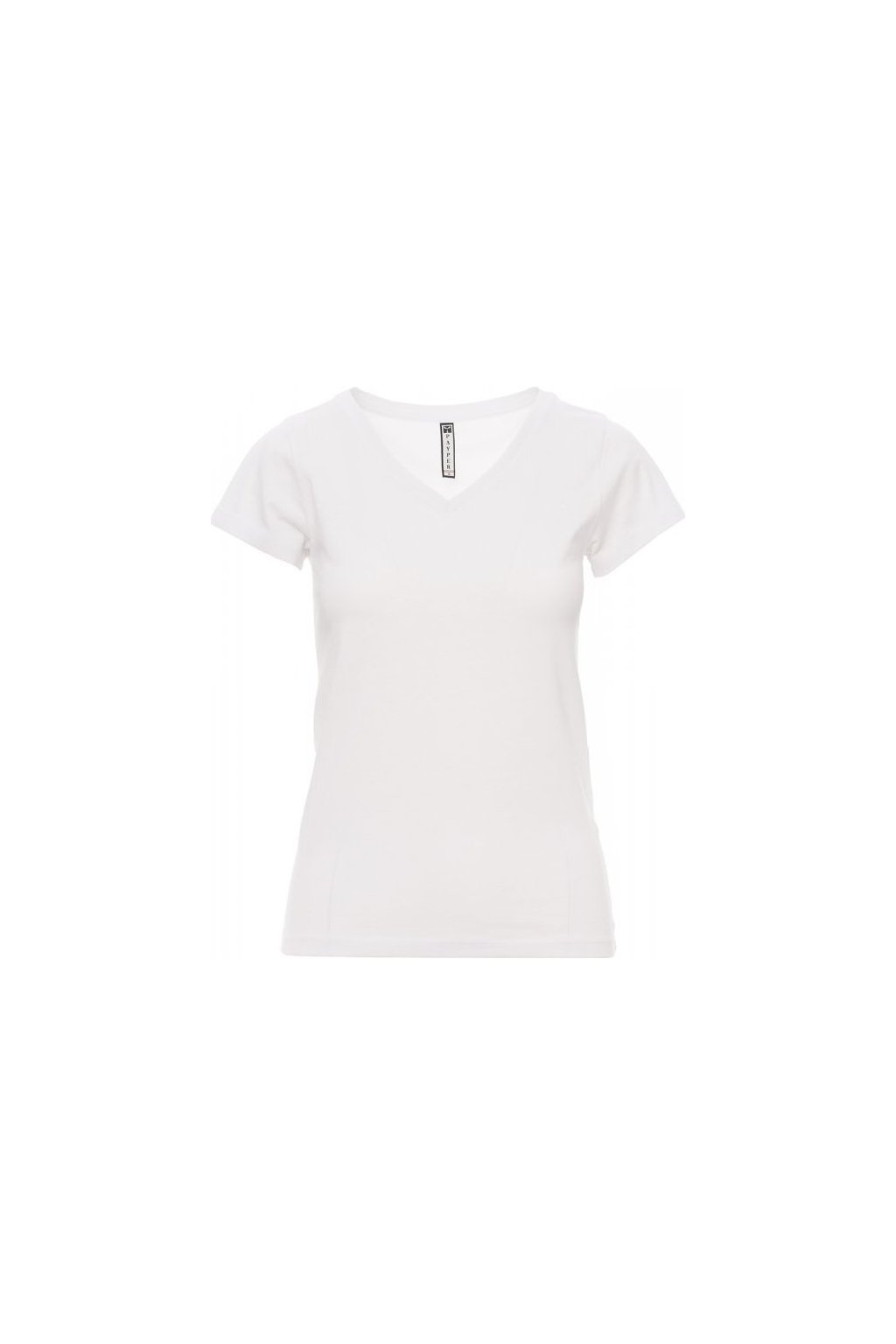 Dámské vyštíhlené tričko s krátkým rukávem a hlubokým výstřihem do V, pružný žebrovaný lem 1,2 cm ze směsi spandex ve spodní části, krátké přiléhavé rukávy a postranní šev pro pohodlnější nošení, dvojjehlové prošití na ramenou, bavlněná spodní část límečku a pásky.