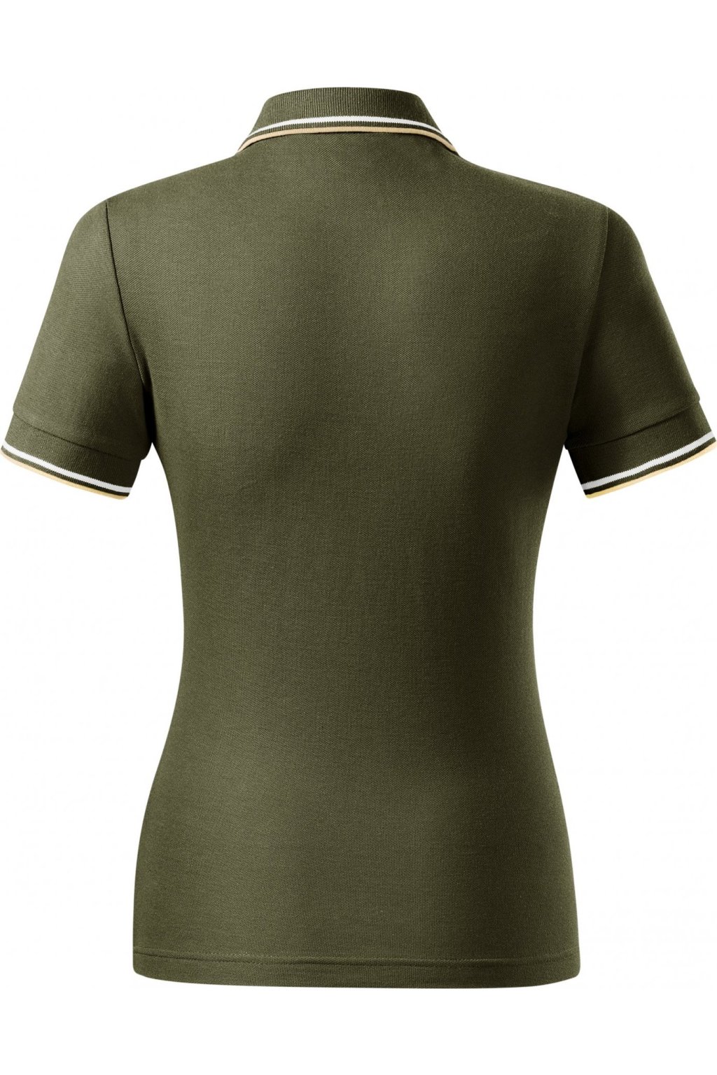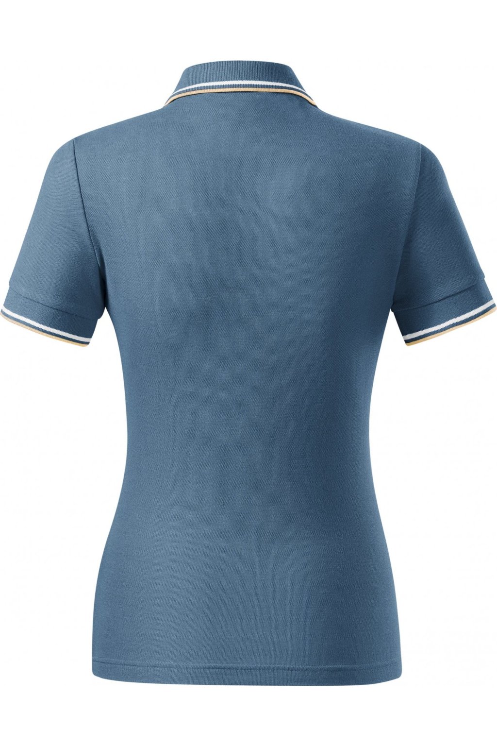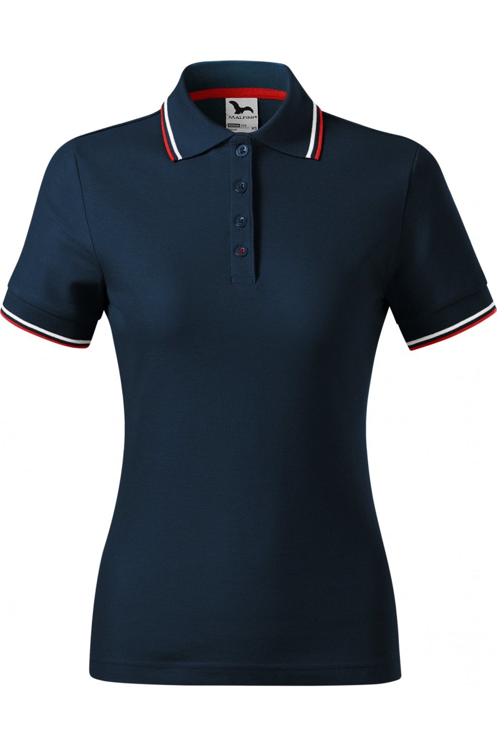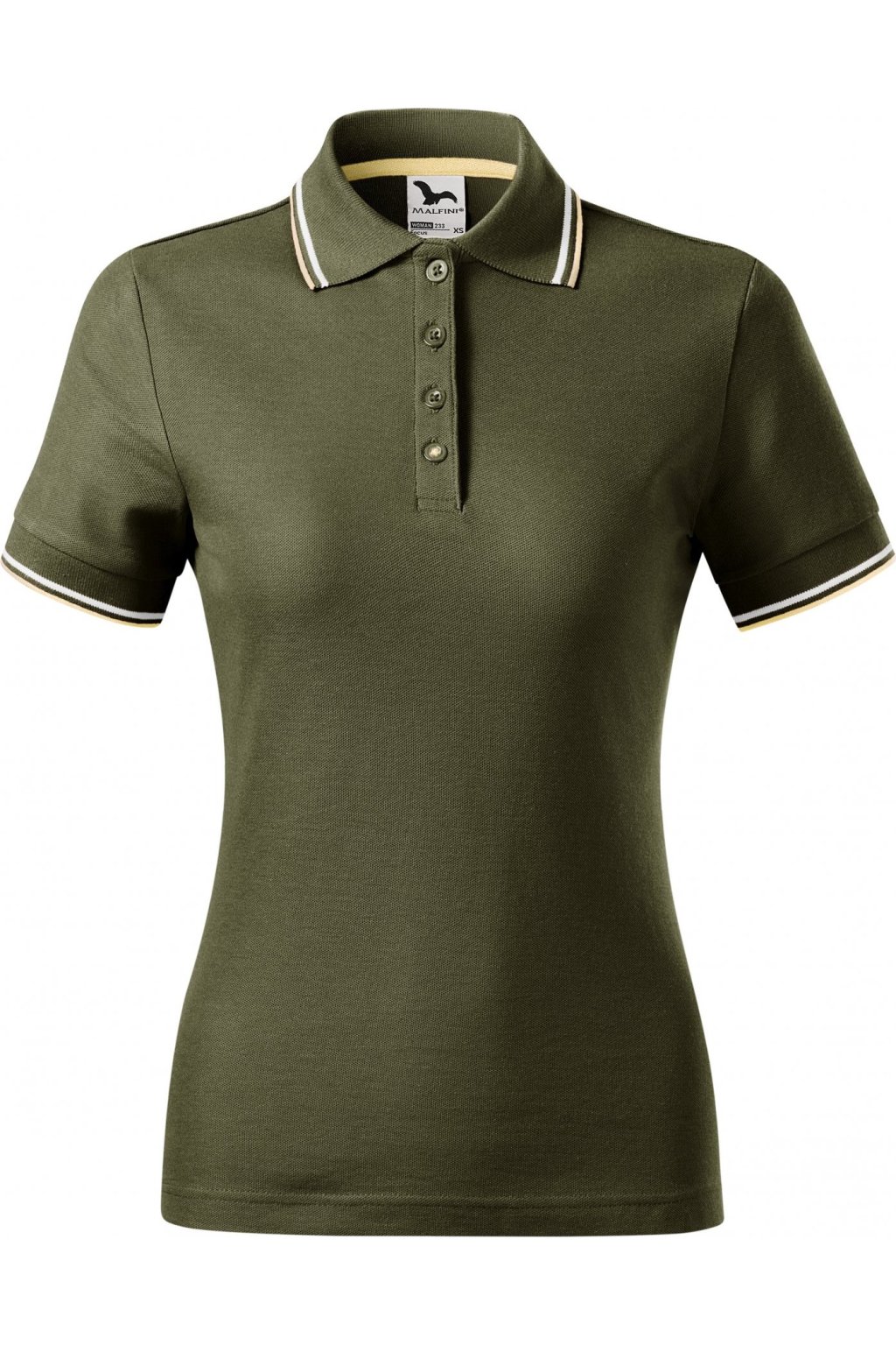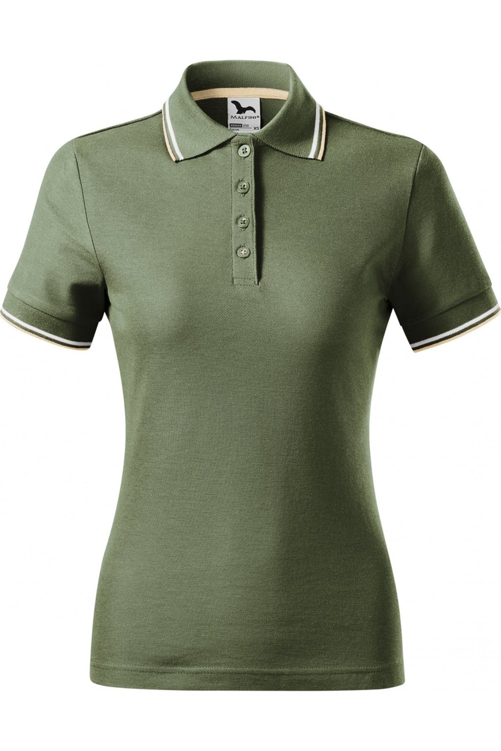 lehce vypasovaný střih s bočními švy, límeček z žebrového úpletu 1:1, 2 kontrastní proužky na rukávu a límečku , úzká léga s 4 knoflíčky v barvě materiálu, spodní knoflíček přišitý kontrastní nití, vnitřní průkrčník začištěn kontrastní páskou, zpevnění ramenních švů páskou, rozparky v bočních švech s kontrastní páskou, zboží II. jakosti, na zboží II. jakosti se nevztahuje reklamace