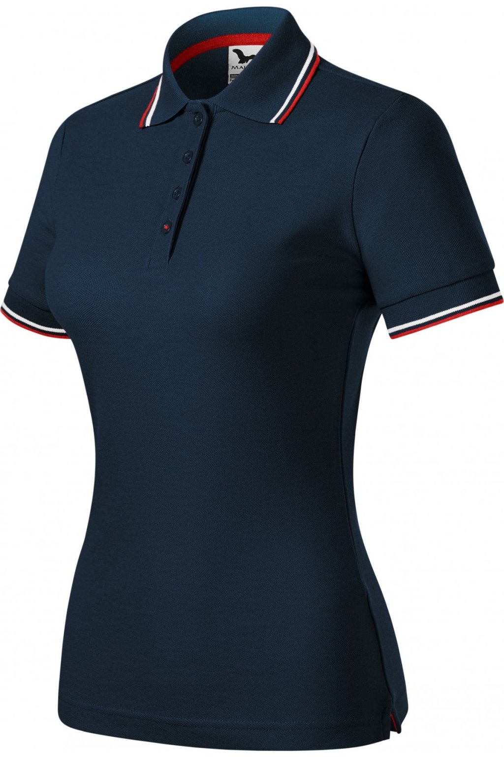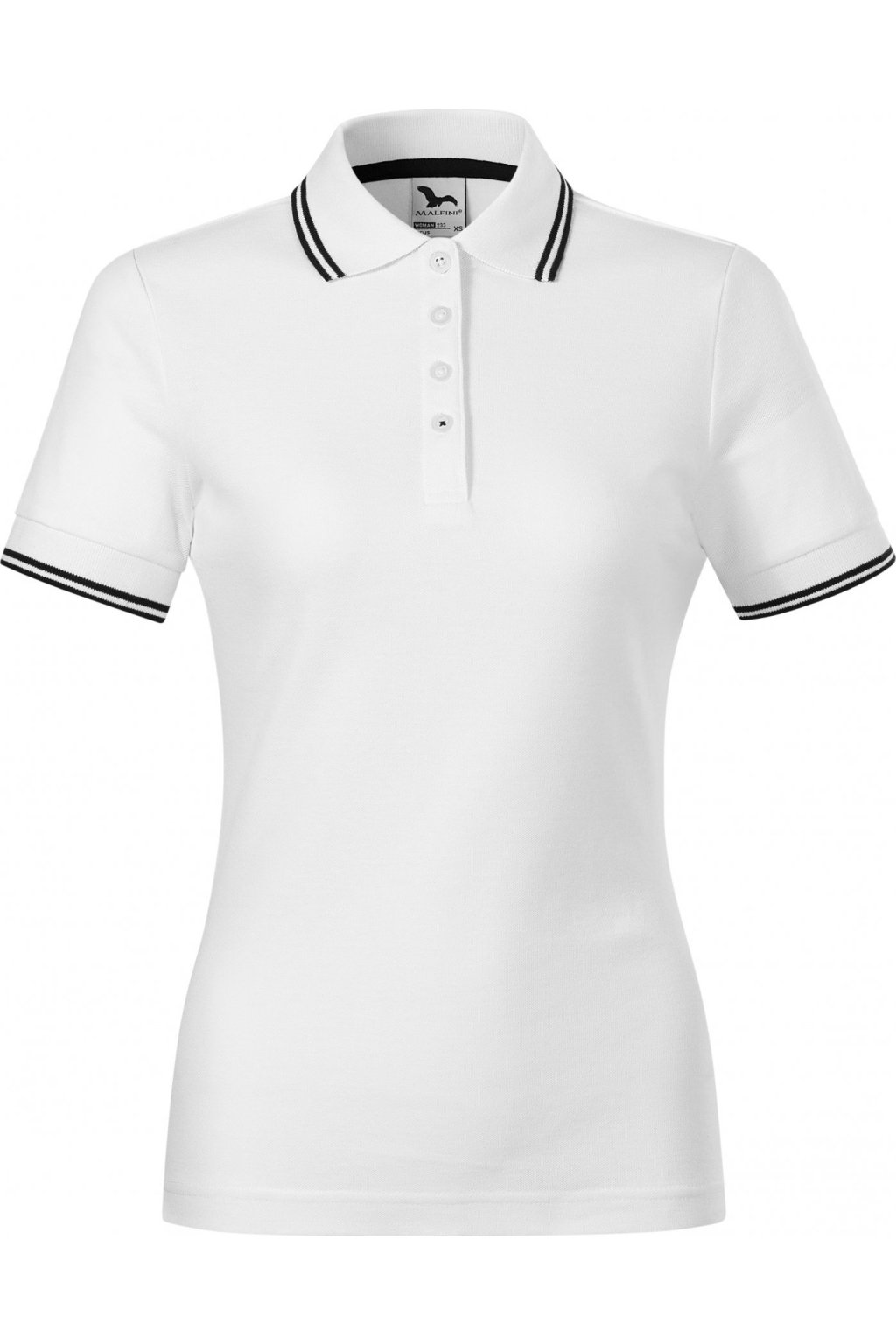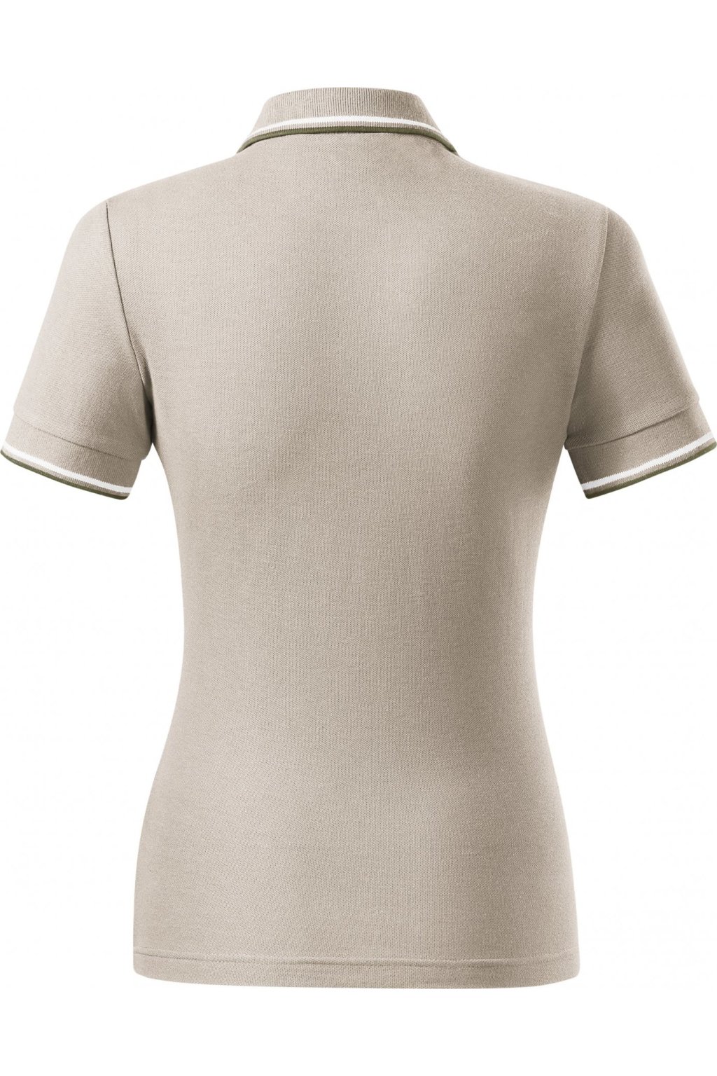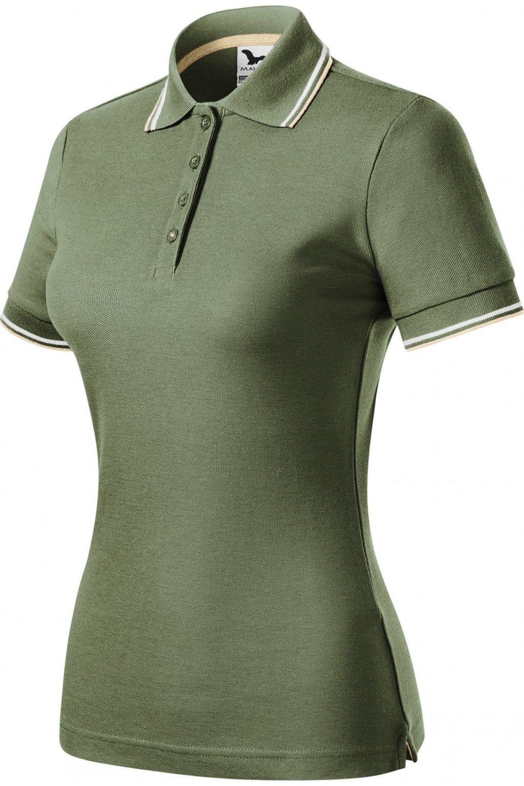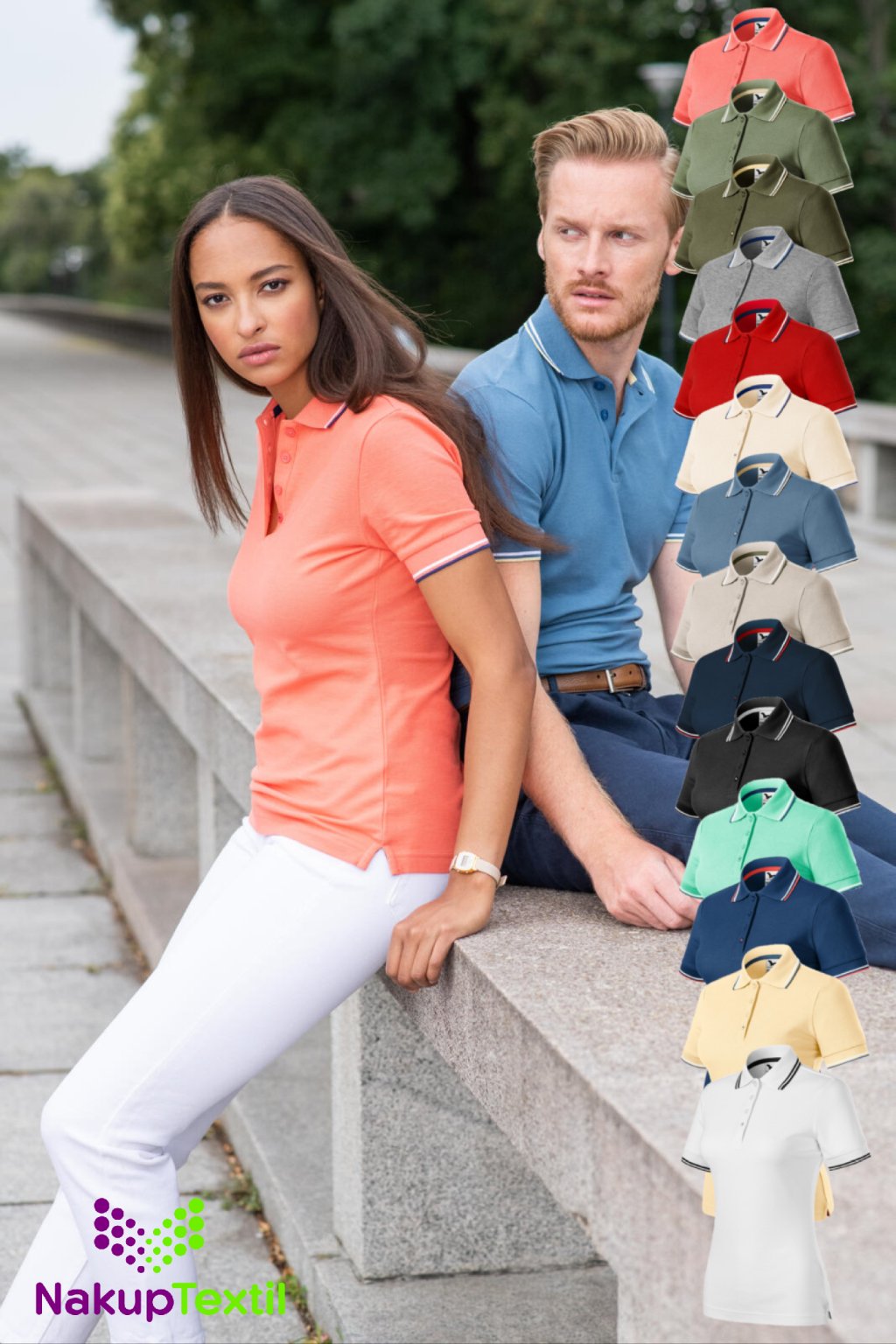 lehce vypasovaný střih s bočními švy, límeček z žebrového úpletu 1:1, 2 kontrastní proužky na rukávu a límečku , úzká léga s 4 knoflíčky v barvě materiálu, spodní knoflíček přišitý kontrastní nití, vnitřní průkrčník začištěn kontrastní páskou, zpevnění ramenních švů páskou, rozparky v bočních švech s kontrastní páskou, zboží II. jakosti, na zboží II. jakosti se nevztahuje reklamace