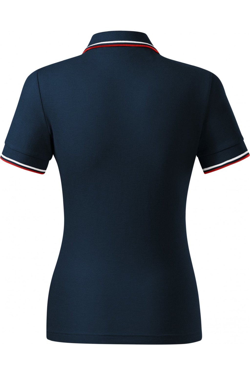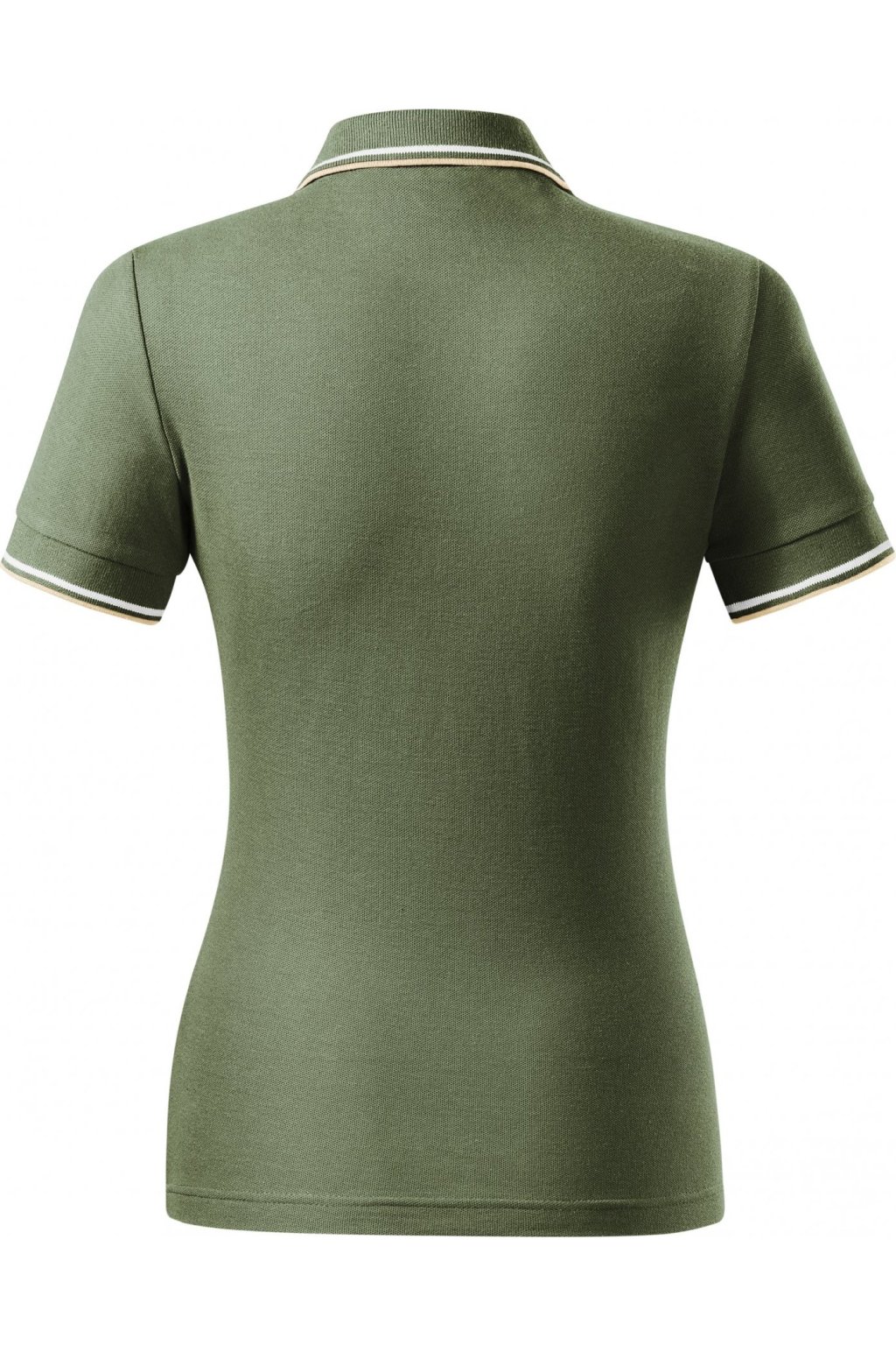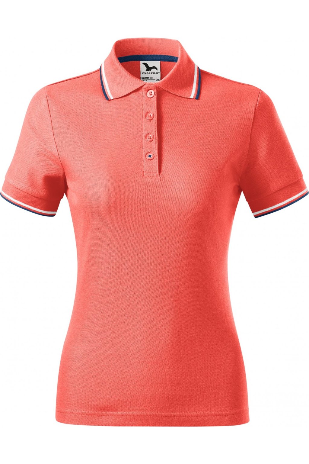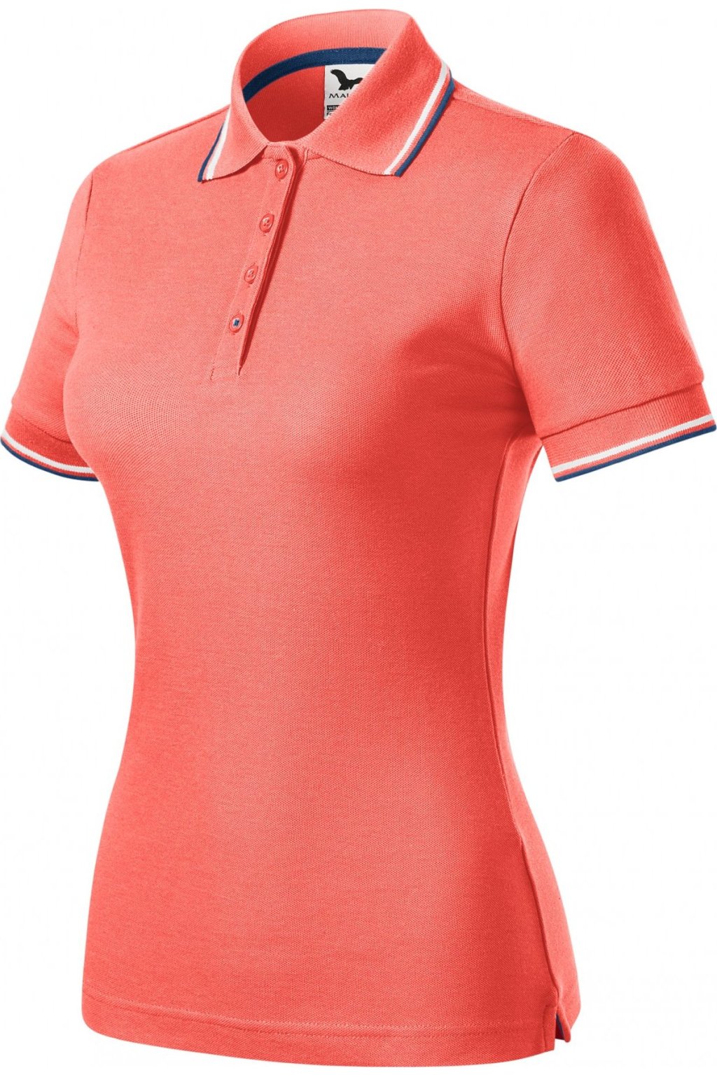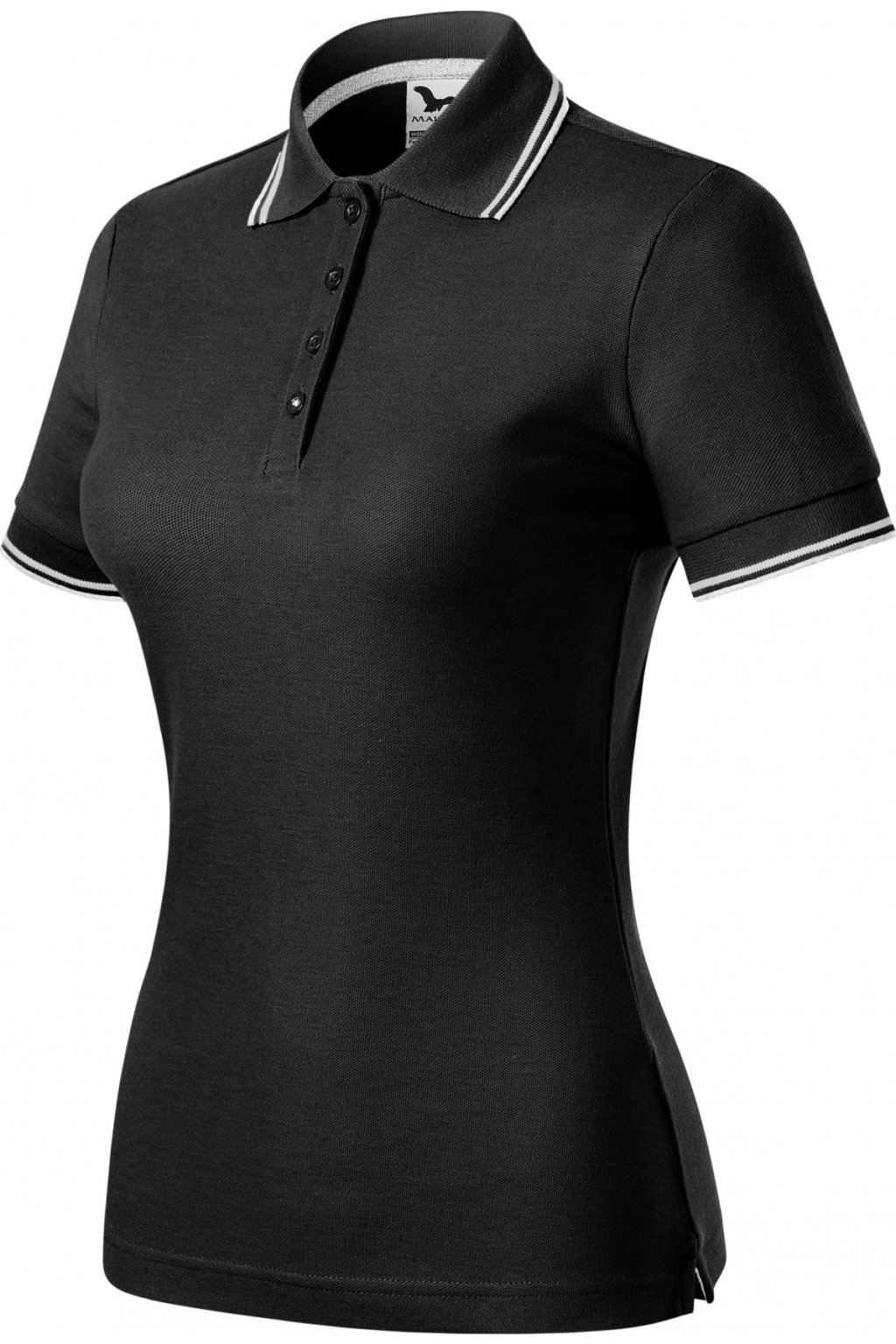 lehce vypasovaný střih s bočními švy, límeček z žebrového úpletu 1:1, 2 kontrastní proužky na rukávu a límečku , úzká léga s 4 knoflíčky v barvě materiálu, spodní knoflíček přišitý kontrastní nití, vnitřní průkrčník začištěn kontrastní páskou, zpevnění ramenních švů páskou, rozparky v bočních švech s kontrastní páskou, zboží II. jakosti, na zboží II. jakosti se nevztahuje reklamace