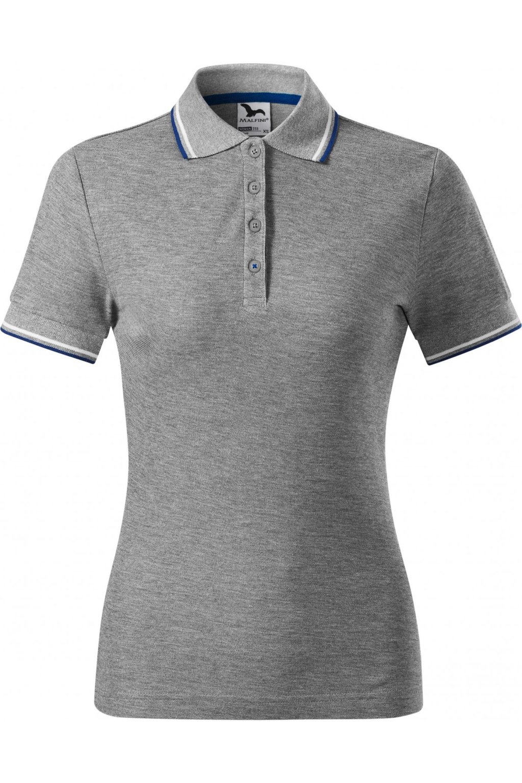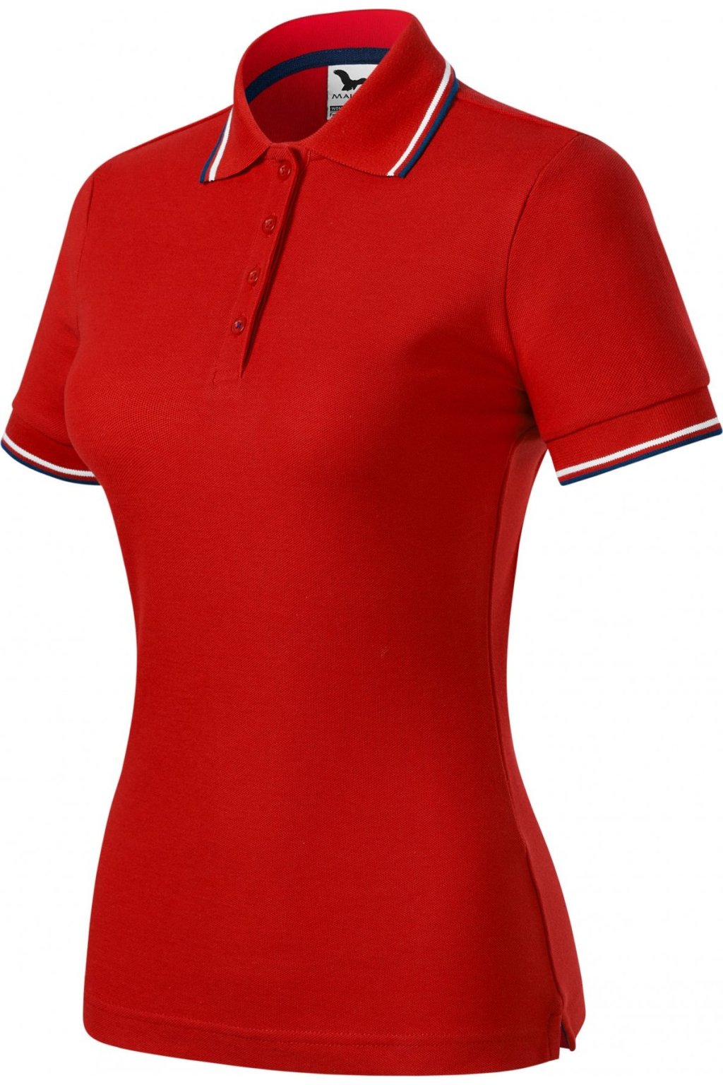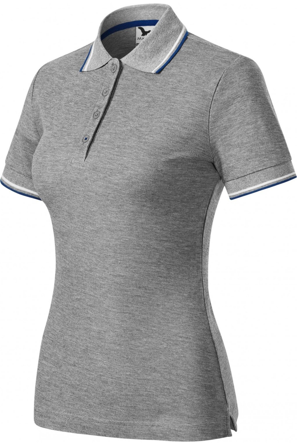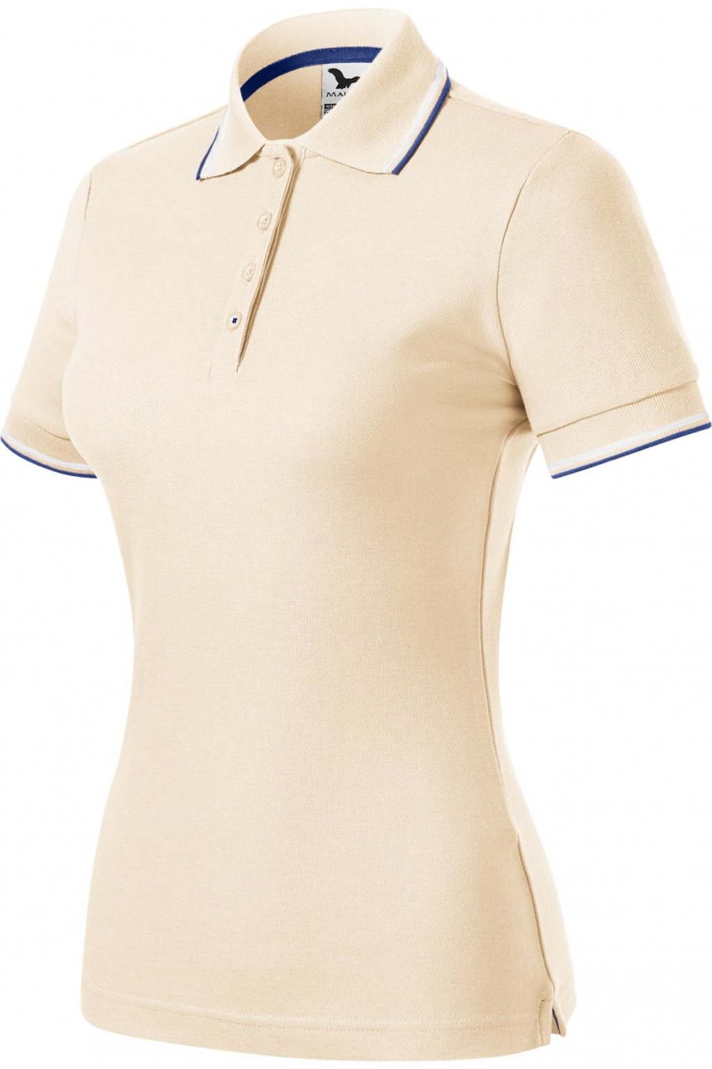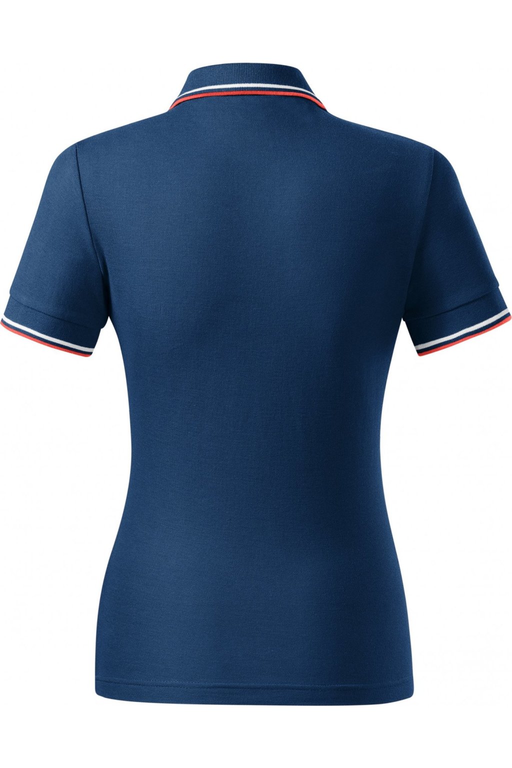 lehce vypasovaný střih s bočními švy, límeček z žebrového úpletu 1:1, 2 kontrastní proužky na rukávu a límečku , úzká léga s 4 knoflíčky v barvě materiálu, spodní knoflíček přišitý kontrastní nití, vnitřní průkrčník začištěn kontrastní páskou, zpevnění ramenních švů páskou, rozparky v bočních švech s kontrastní páskou, zboží II. jakosti, na zboží II. jakosti se nevztahuje reklamace