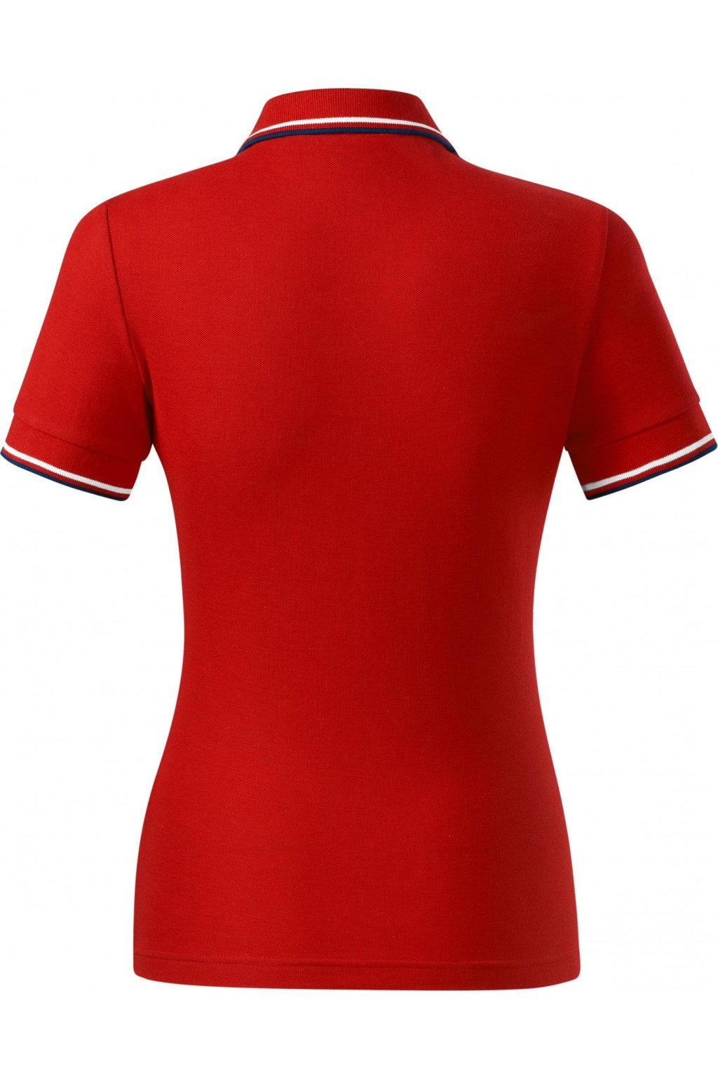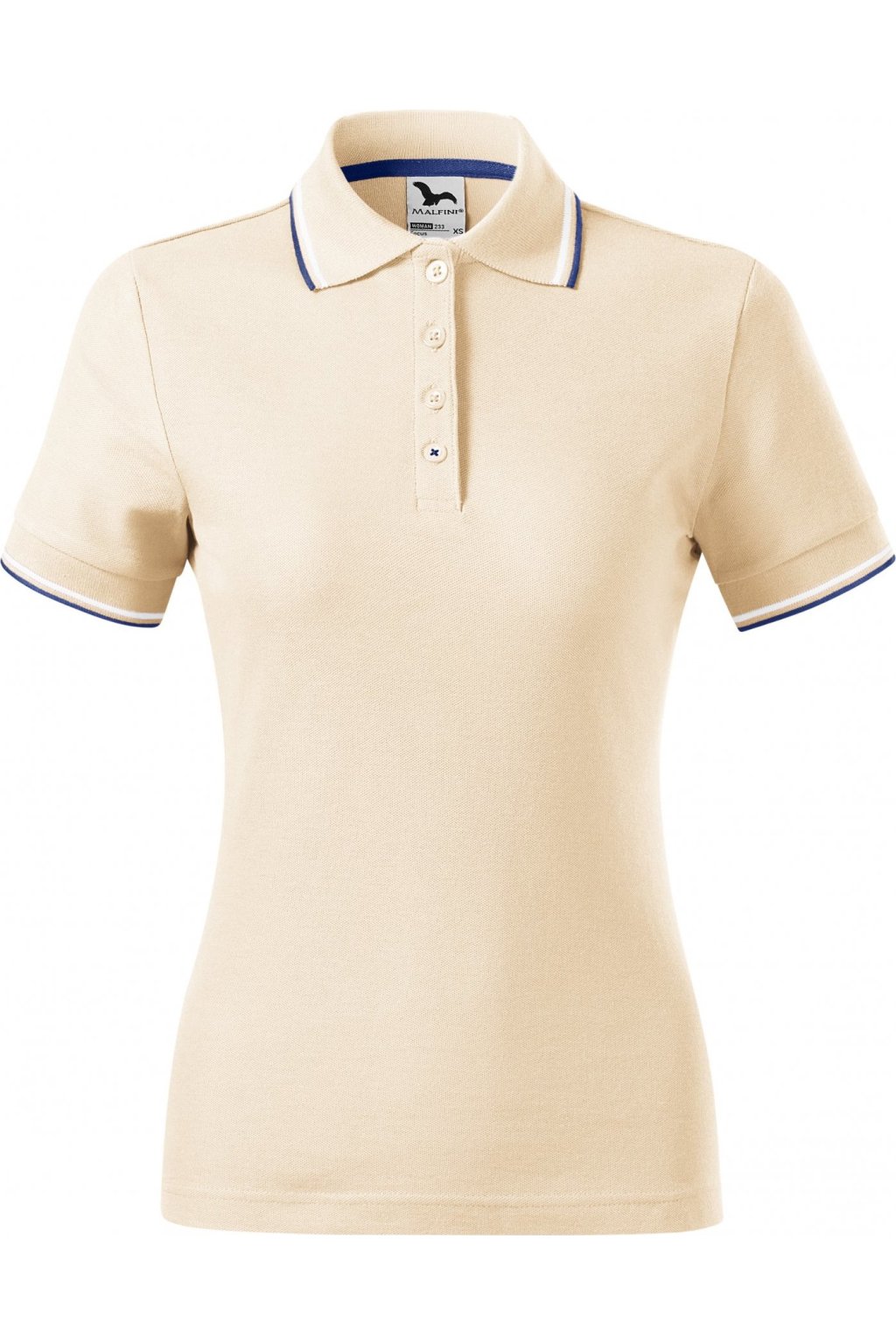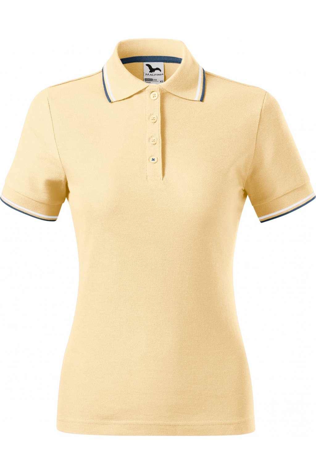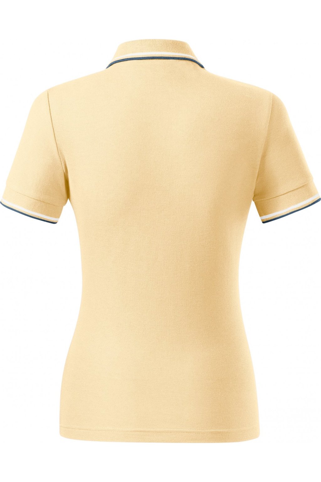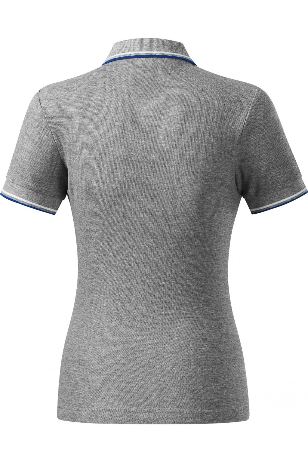 lehce vypasovaný střih s bočními švy, límeček z žebrového úpletu 1:1, 2 kontrastní proužky na rukávu a límečku , úzká léga s 4 knoflíčky v barvě materiálu, spodní knoflíček přišitý kontrastní nití, vnitřní průkrčník začištěn kontrastní páskou, zpevnění ramenních švů páskou, rozparky v bočních švech s kontrastní páskou, zboží II. jakosti, na zboží II. jakosti se nevztahuje reklamace