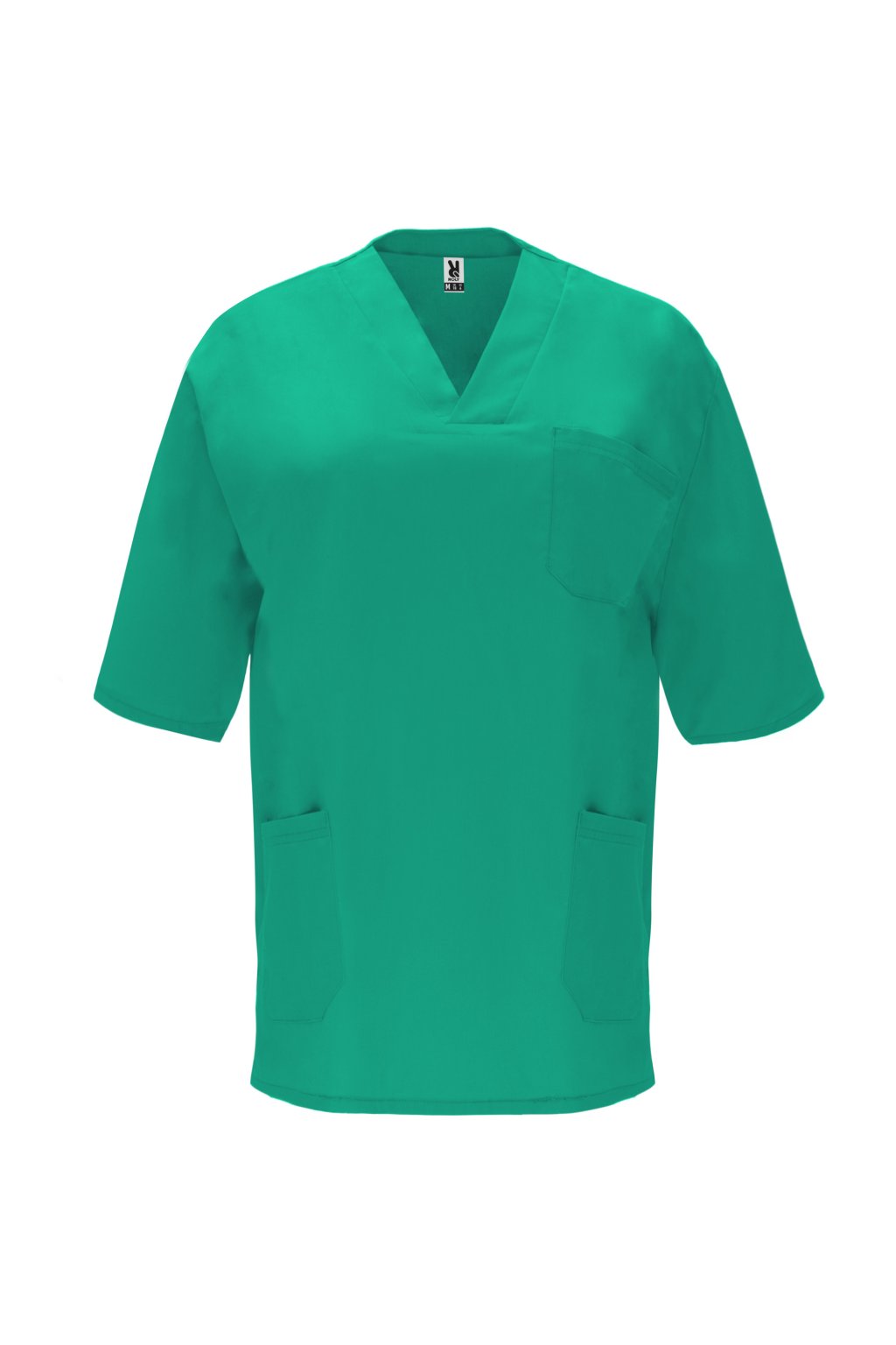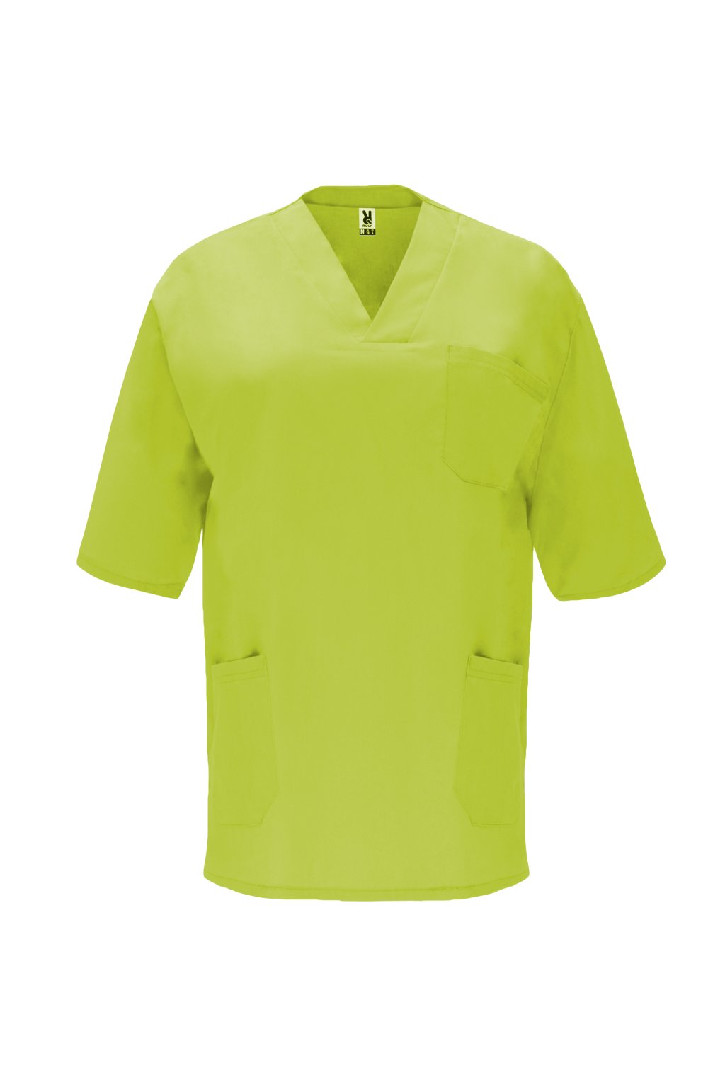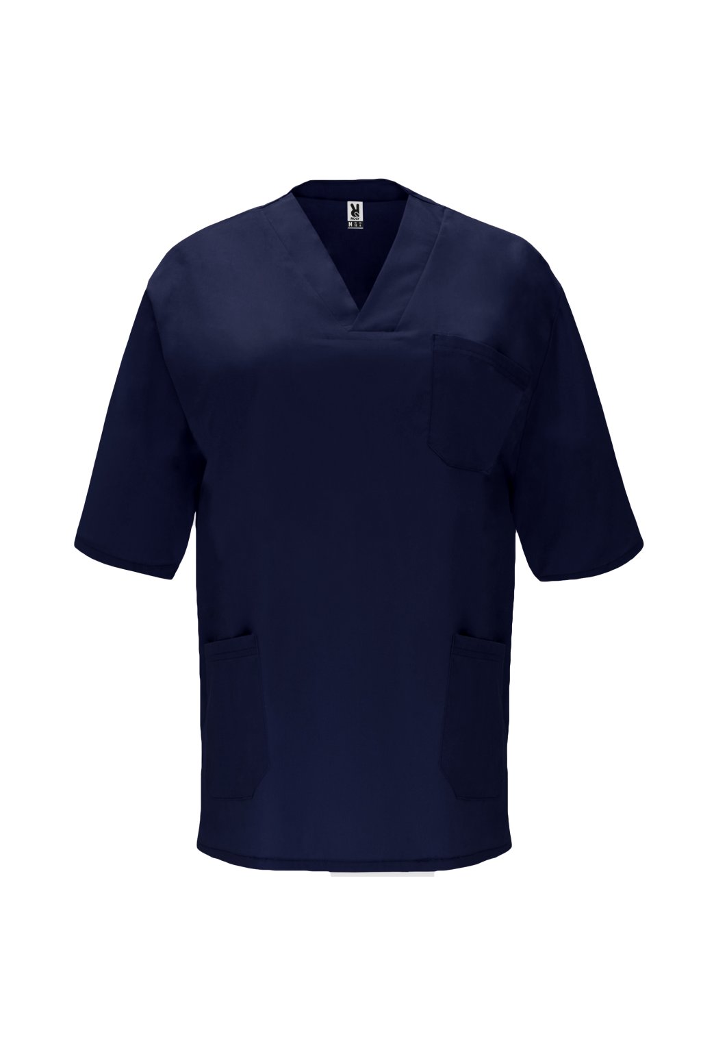 Pracovní blůza unisex s krátkým rukávem a překříženým výstřihem do V.Blůza má jednu náprsní kapsu,dvě postranní kapsy a boční rozparky-