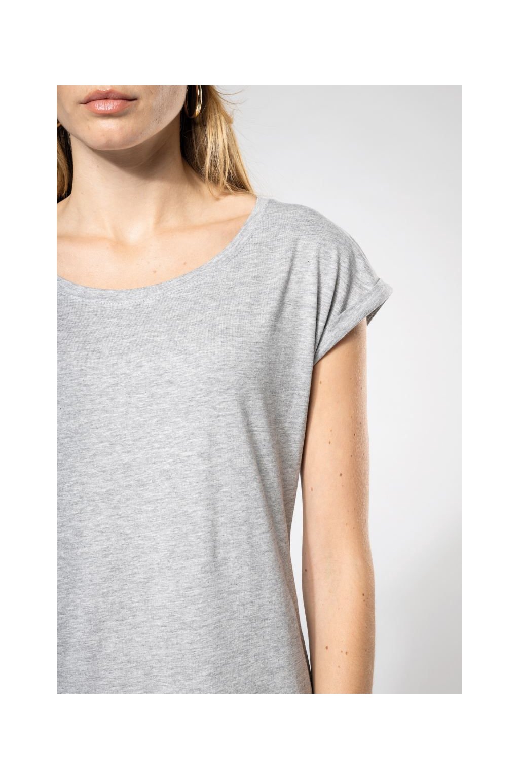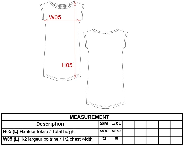 Volnější střih, pohodlný střih a vysoká volnost pohybu, široký kulatý výstřih, rukávy přesahující ramena s ohrnutím, zaoblený lem, dvojité švy na lemu, neutrální velikostní štítek, pratelné na 40°, lze sušit v sušičce při nízké teplotě, nelze chemicky čistit