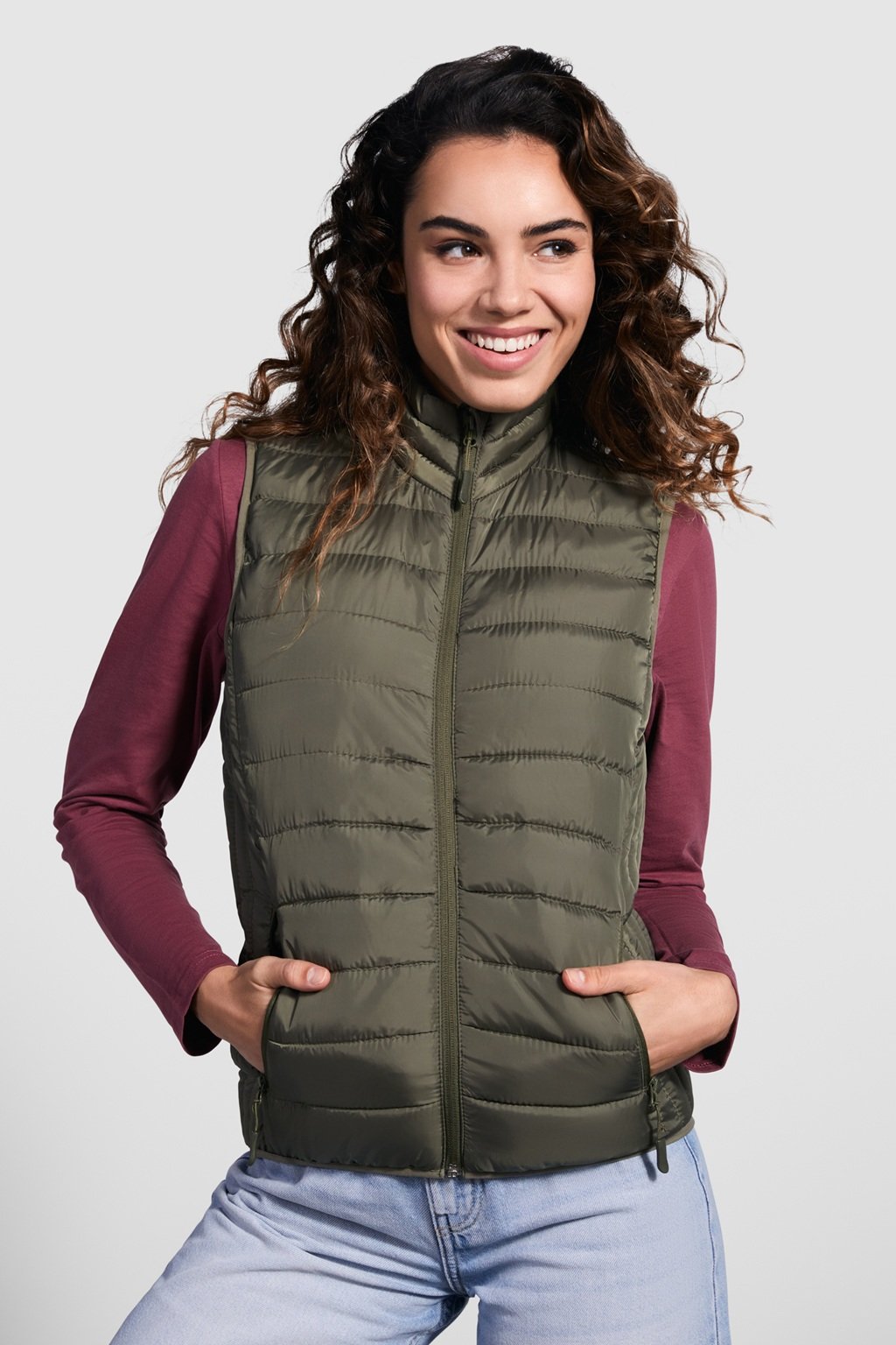 Dámská větru a voděodolná celopropínací vesta s podšívkou. Dvě kapsy a elastický spodní lem. K dispozici je taška na složení.