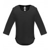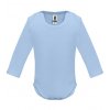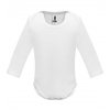 Kojenecké body s dlouhým rukávem. 1x1 žebrovaný průkrčník a spodní část. Zapínaní na cvočky v rozkroku. Na ramínkách překřížení pro snadné oblékání.