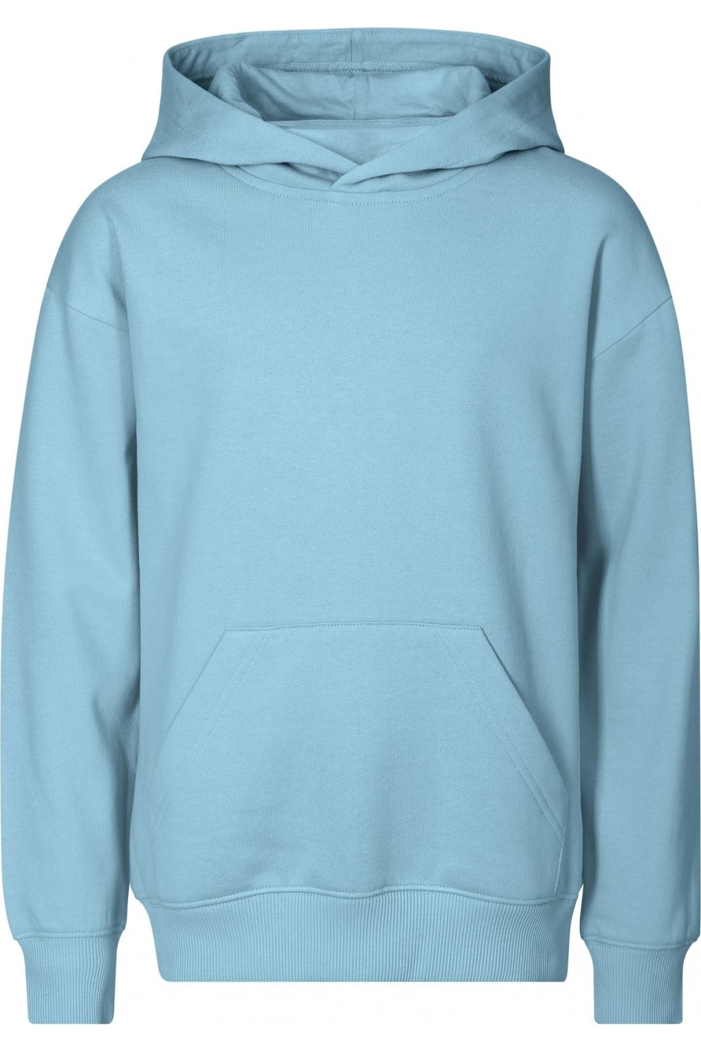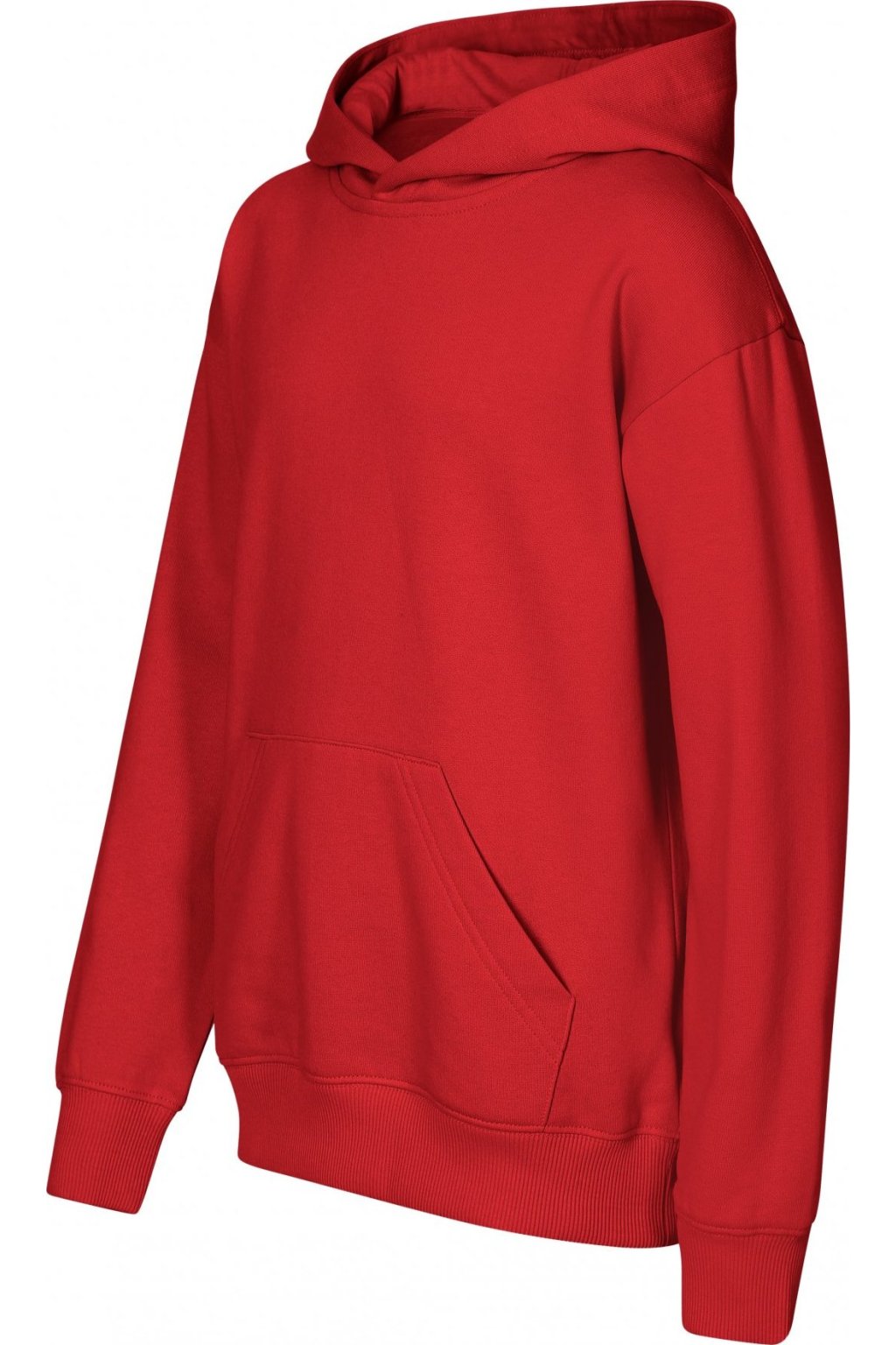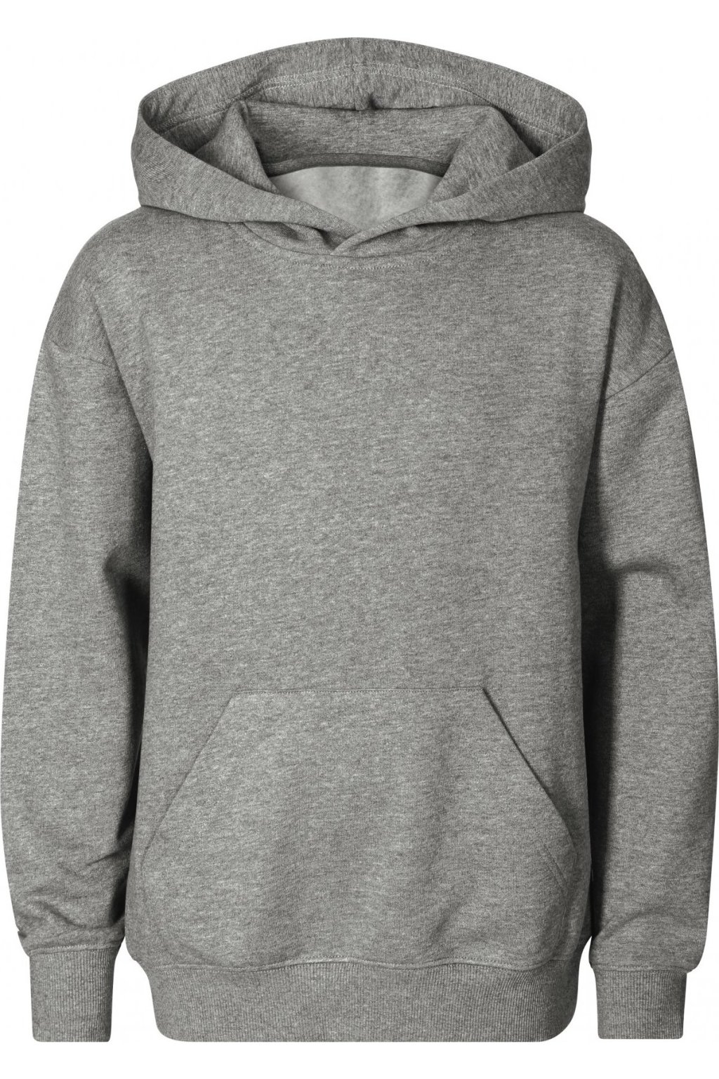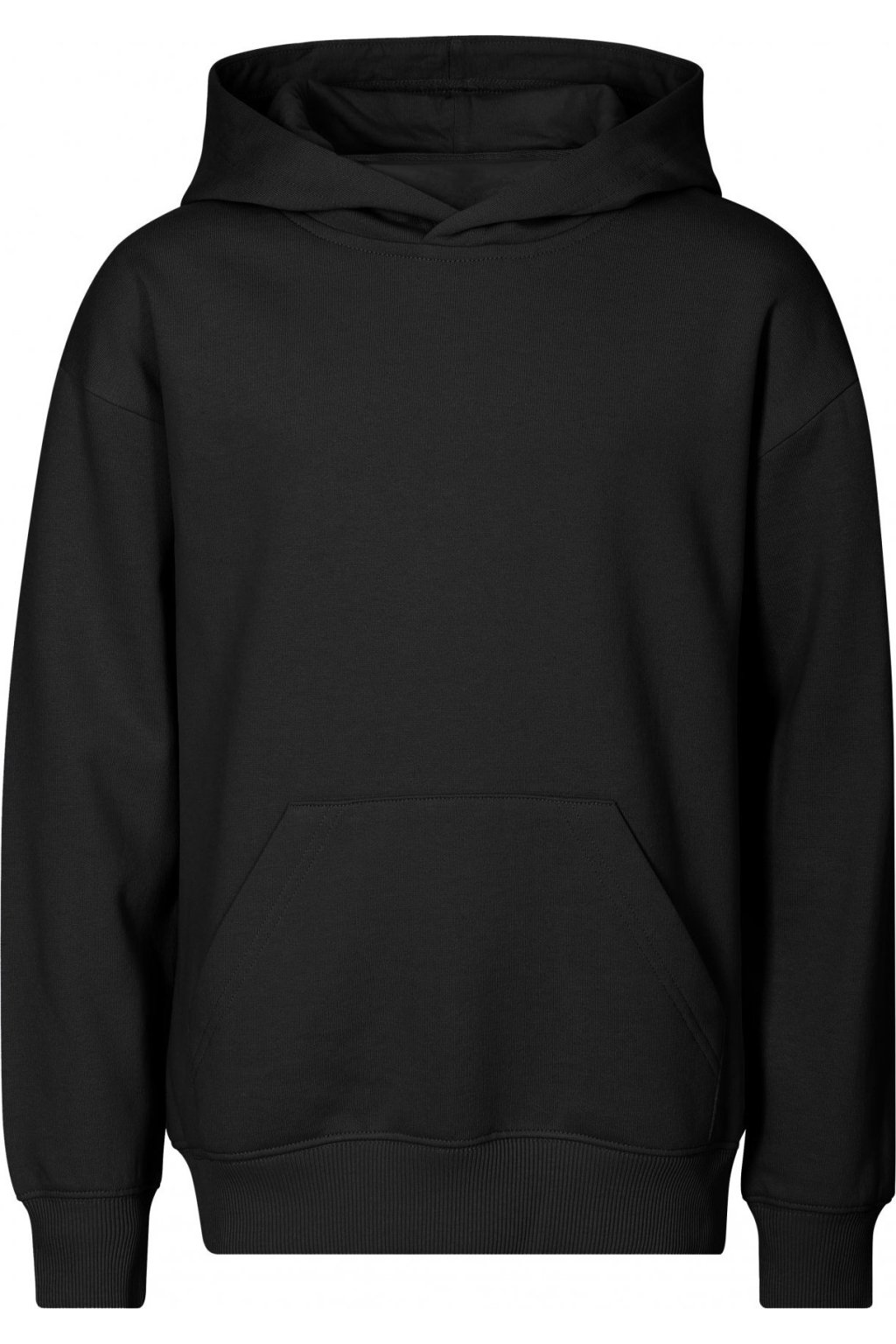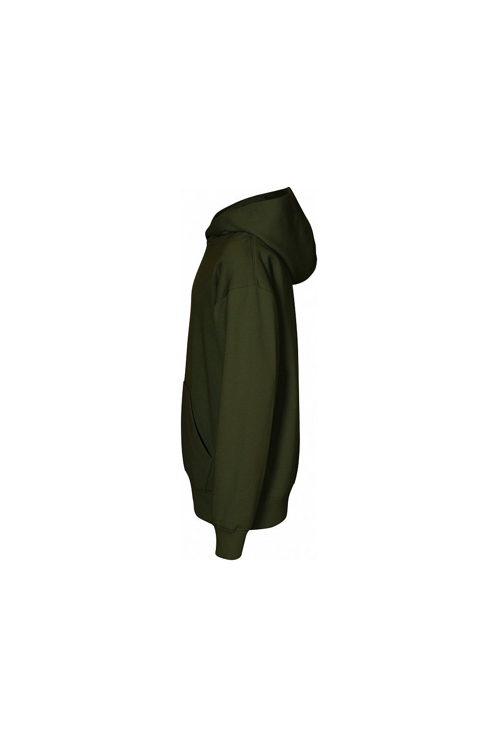 bez etikety - připraveno na rebranding, volný střih s bočními švy, kapuce s podšívkou, neutrální velikostní štítek v boční části průkrčníku, vnitřní část průkrčníku začištěna páskou, nízkohlavicové rukávy, nakládaná kapsa ve stylu klokanky, dolní lem a manžety rukávů z žebrového úpletu 2:2 s 5 % elastanu, vnitřní strana počesaná
