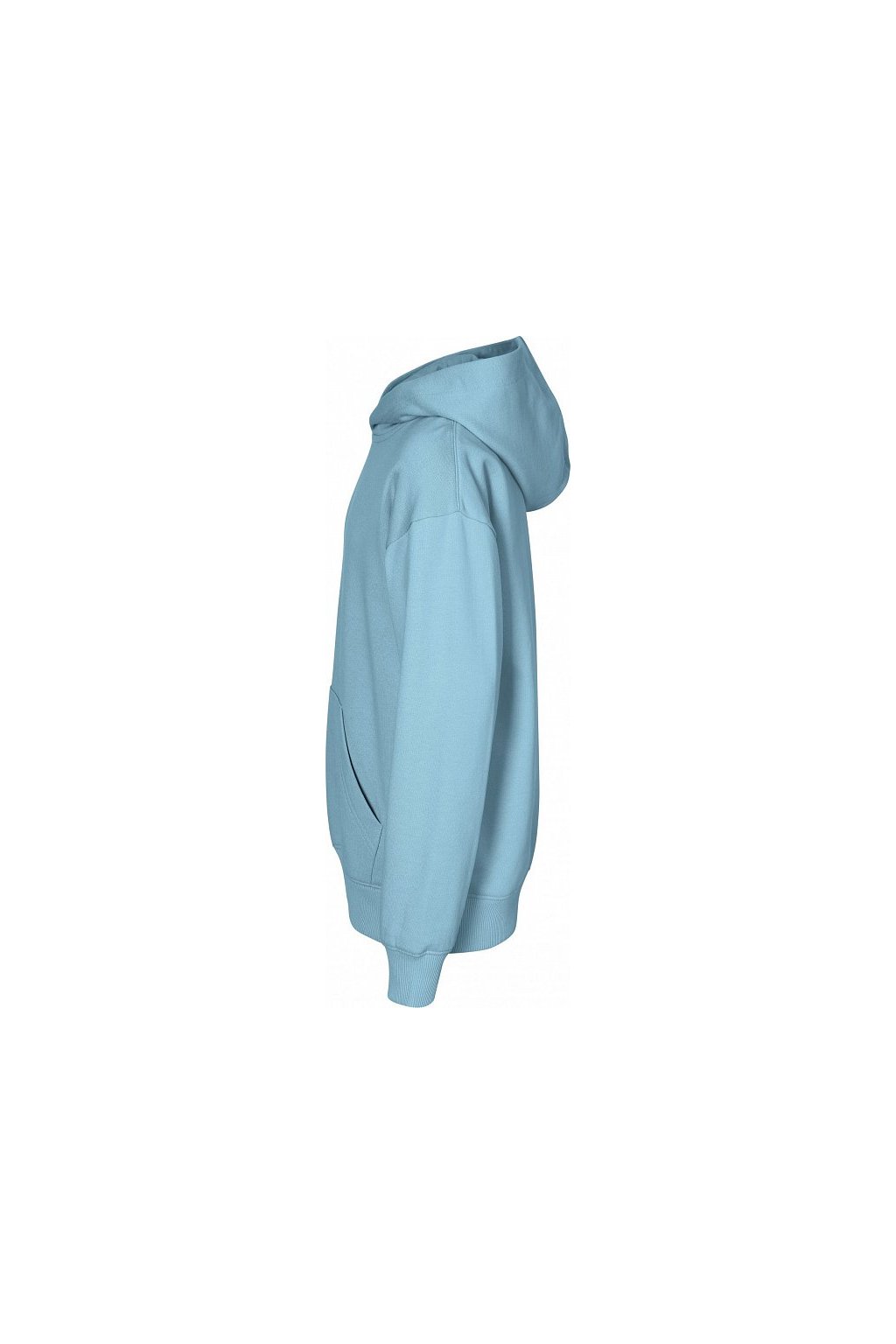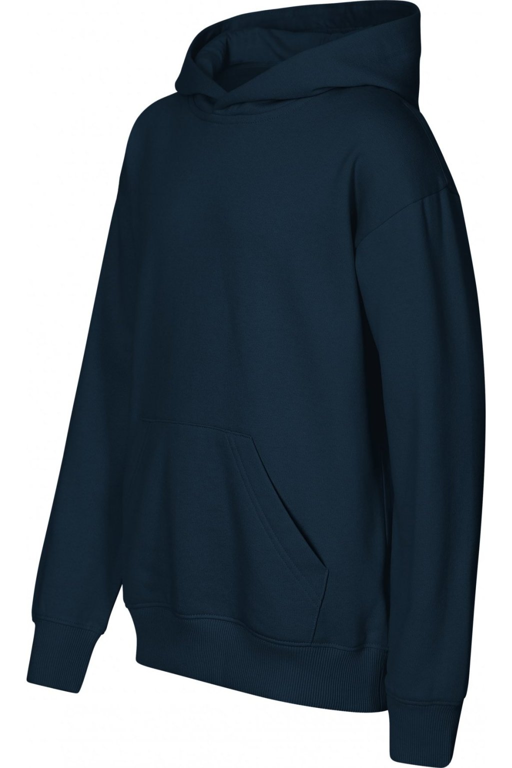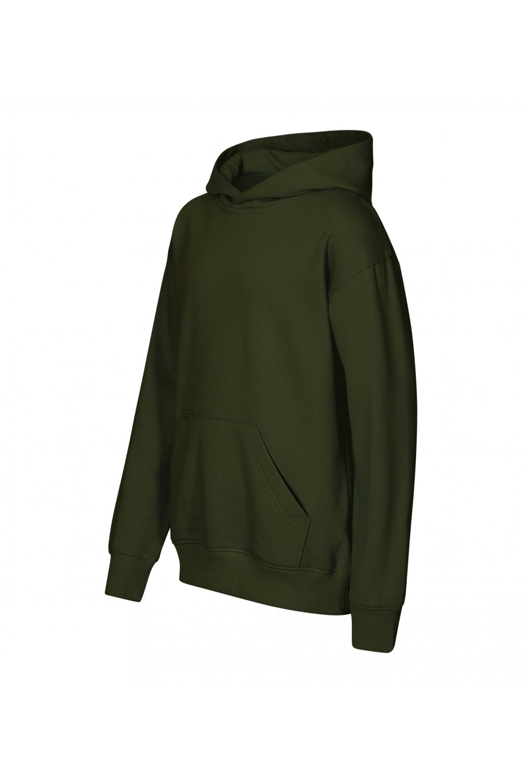 bez etikety - připraveno na rebranding, volný střih s bočními švy, kapuce s podšívkou, neutrální velikostní štítek v boční části průkrčníku, vnitřní část průkrčníku začištěna páskou, nízkohlavicové rukávy, nakládaná kapsa ve stylu klokanky, dolní lem a manžety rukávů z žebrového úpletu 2:2 s 5 % elastanu, vnitřní strana počesaná