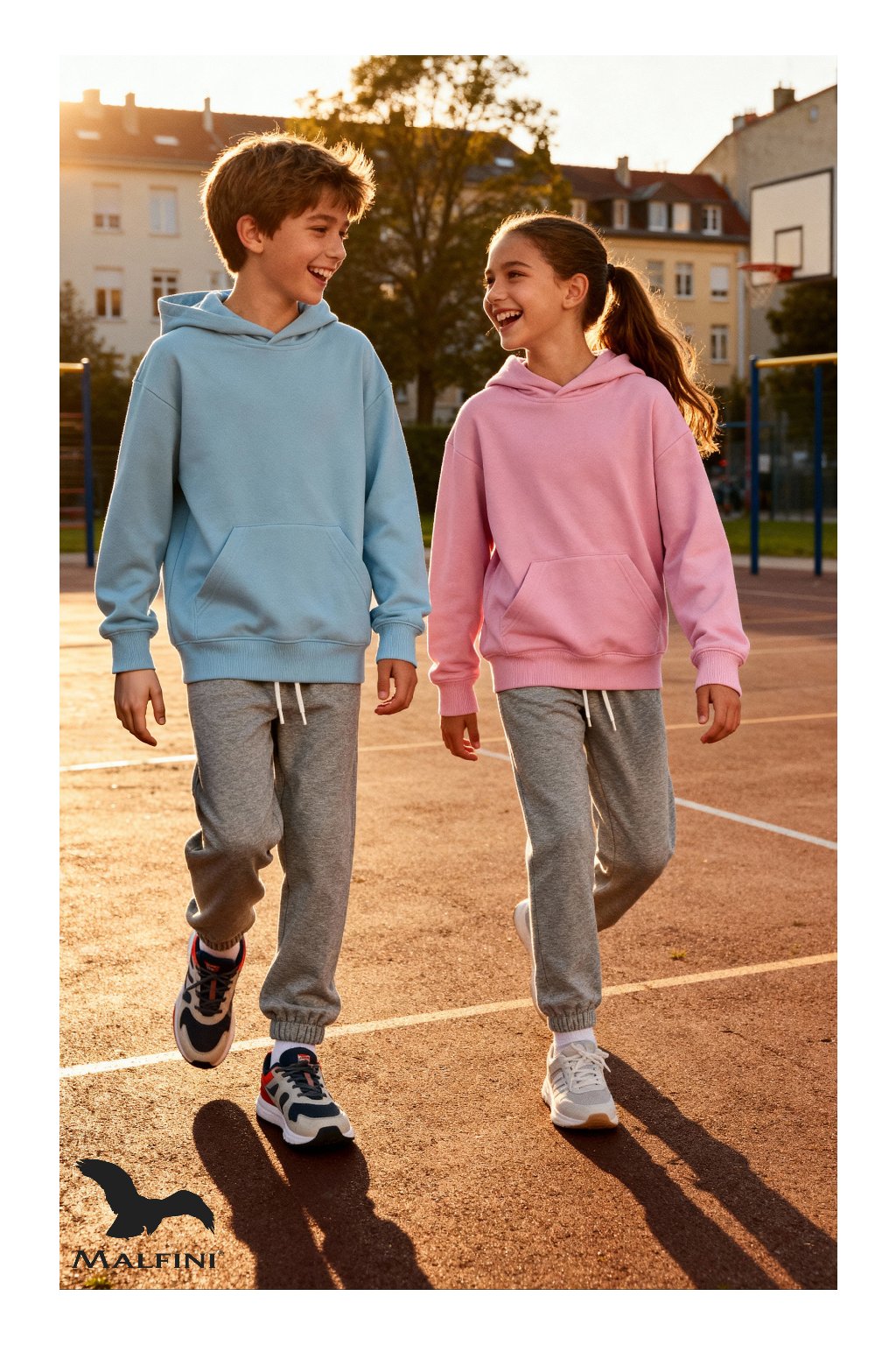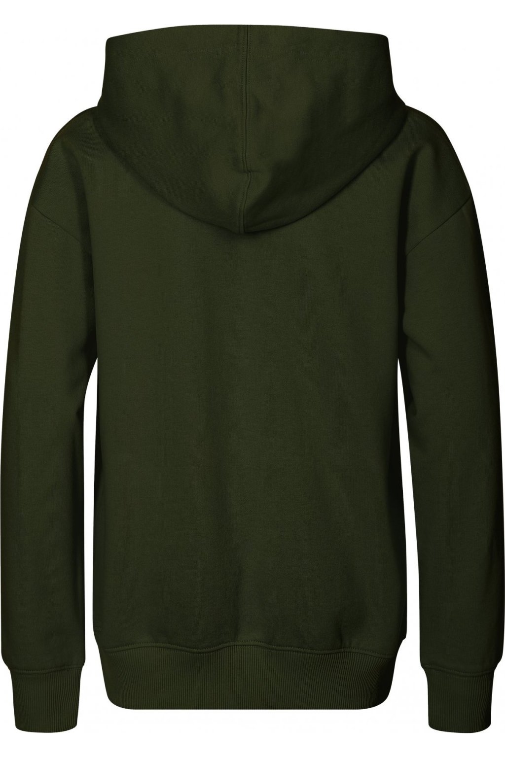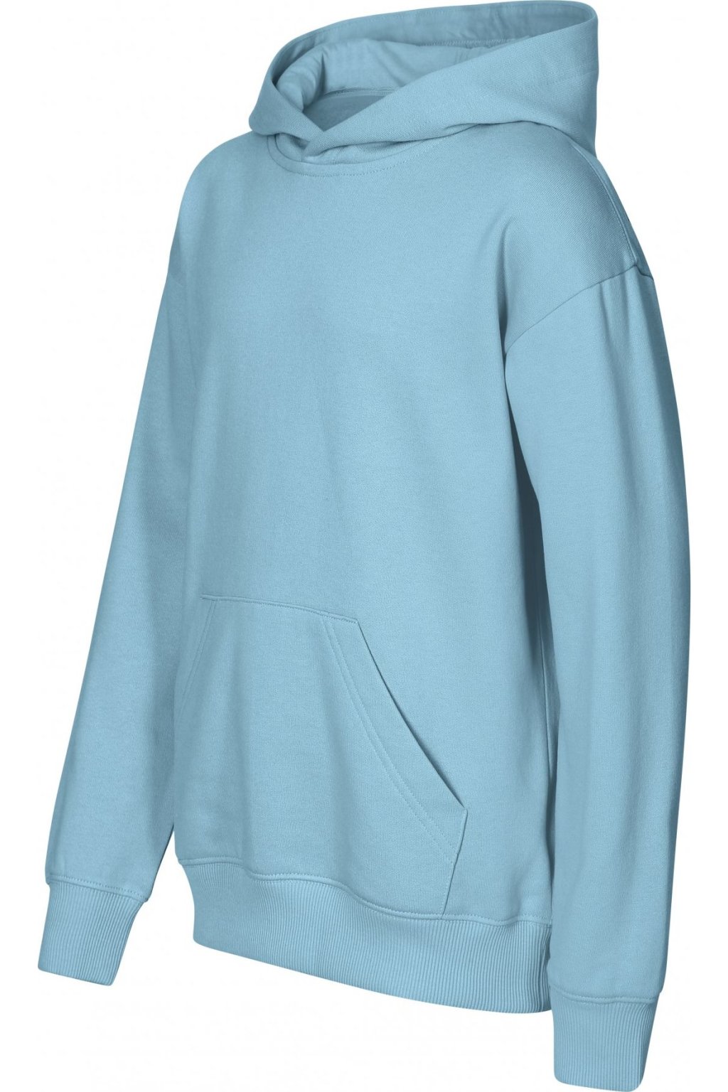 bez etikety - připraveno na rebranding, volný střih s bočními švy, kapuce s podšívkou, neutrální velikostní štítek v boční části průkrčníku, vnitřní část průkrčníku začištěna páskou, nízkohlavicové rukávy, nakládaná kapsa ve stylu klokanky, dolní lem a manžety rukávů z žebrového úpletu 2:2 s 5 % elastanu, vnitřní strana počesaná