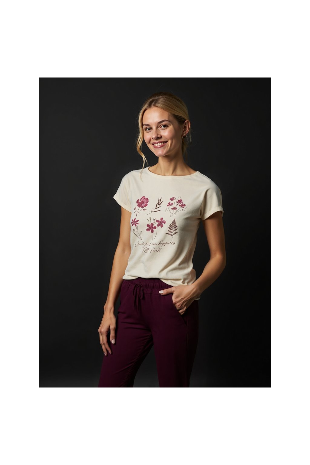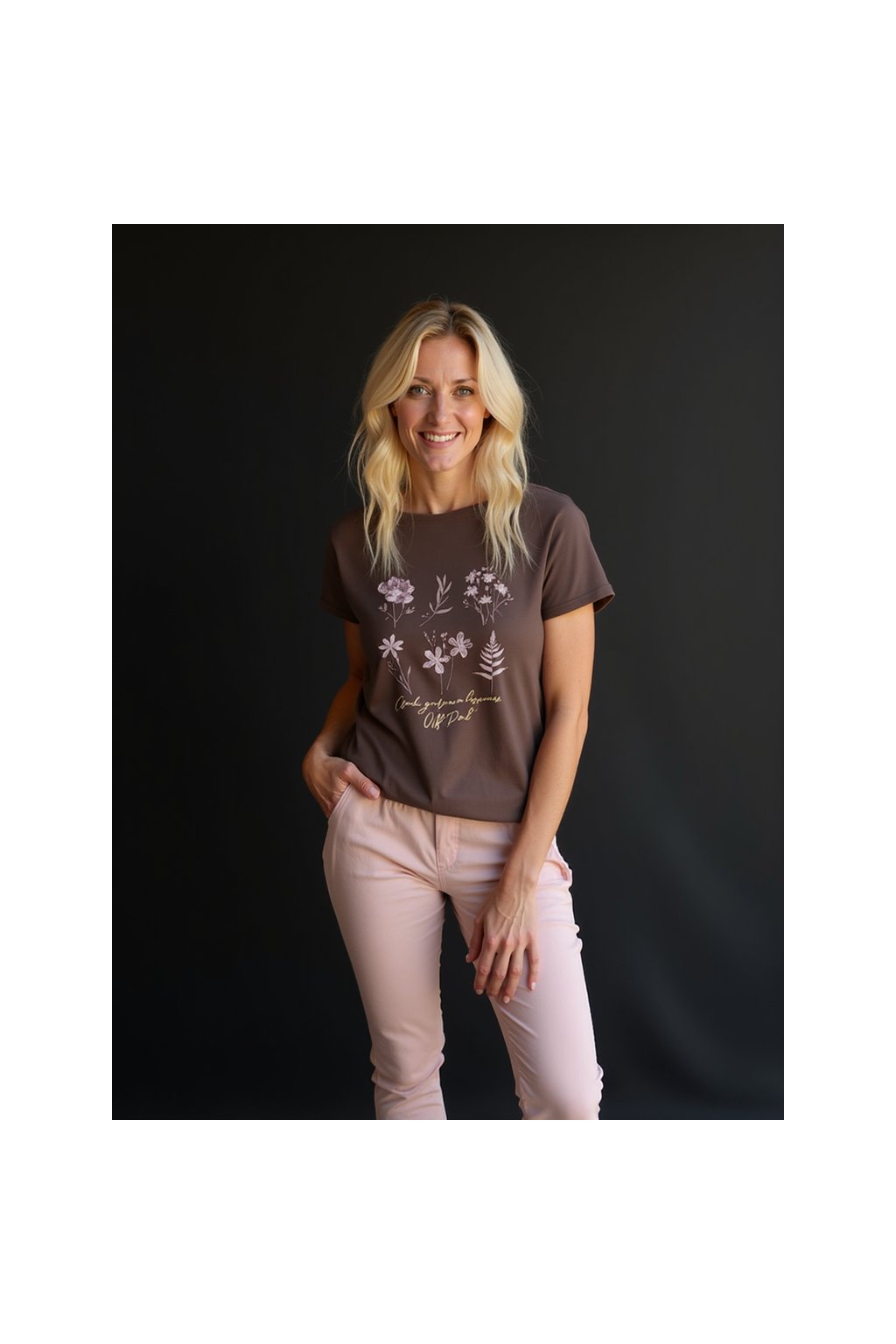 Módní tričko s potiskem, 36- 46, Off pink
