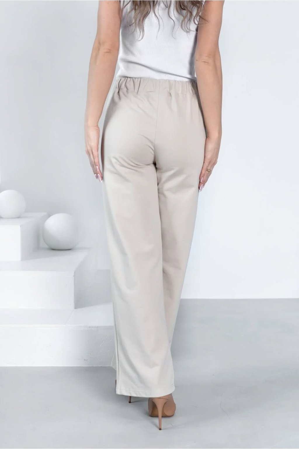 Dámské teplákové kalhoty s širokými nohavicemi a svislým prošitím. Mají elastický pas. Dvě prostorné kapsy jsou skvělým doplňkem. Vyrobeno z husté a elastické bavlny od polského výrobce. Jsou měkké a pohodlné. Ideální do práce nebo ven s přáteli.