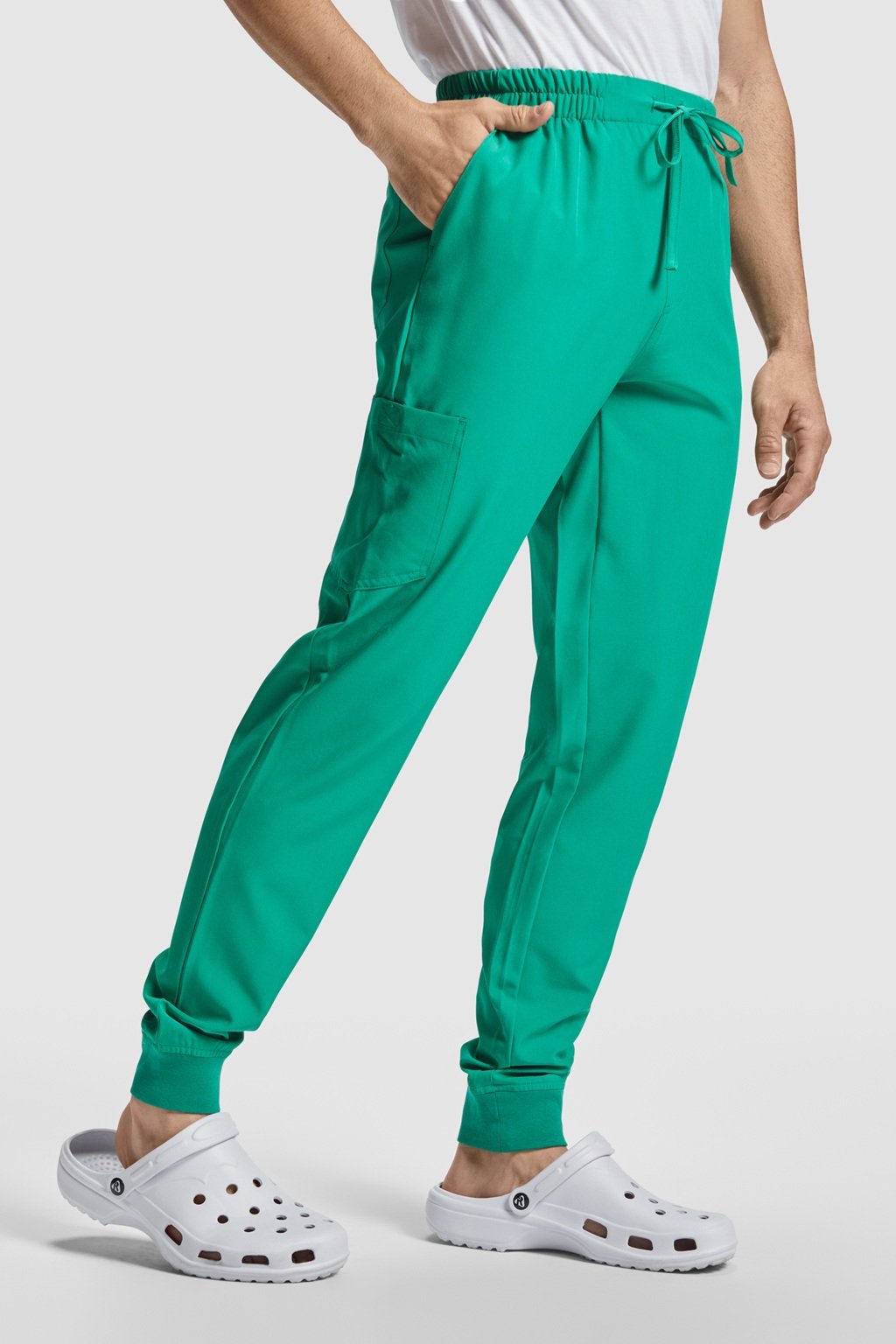 Pracovní kalhoty unisex rovného střihu. Kalhoty mají elastický pás, stahovací sňůrku a boční kapsy.