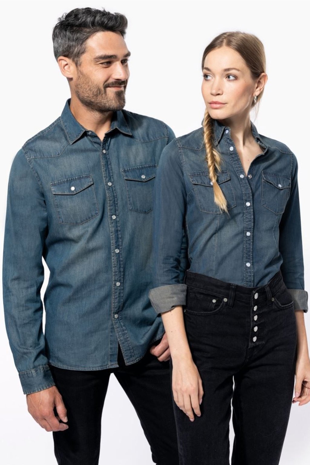 Denim košile s dlouhým rukávem, M - SKLADEM