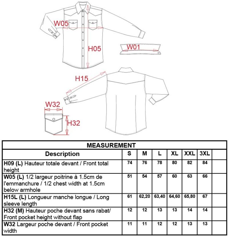 Vypasovaný střih, vsádky vpředu a vzadu, manžety s patentkami, patentky, 2 náprsní kapsy s patentkami a manžetami, pratelné na 40°, nelze sušit v sušičce