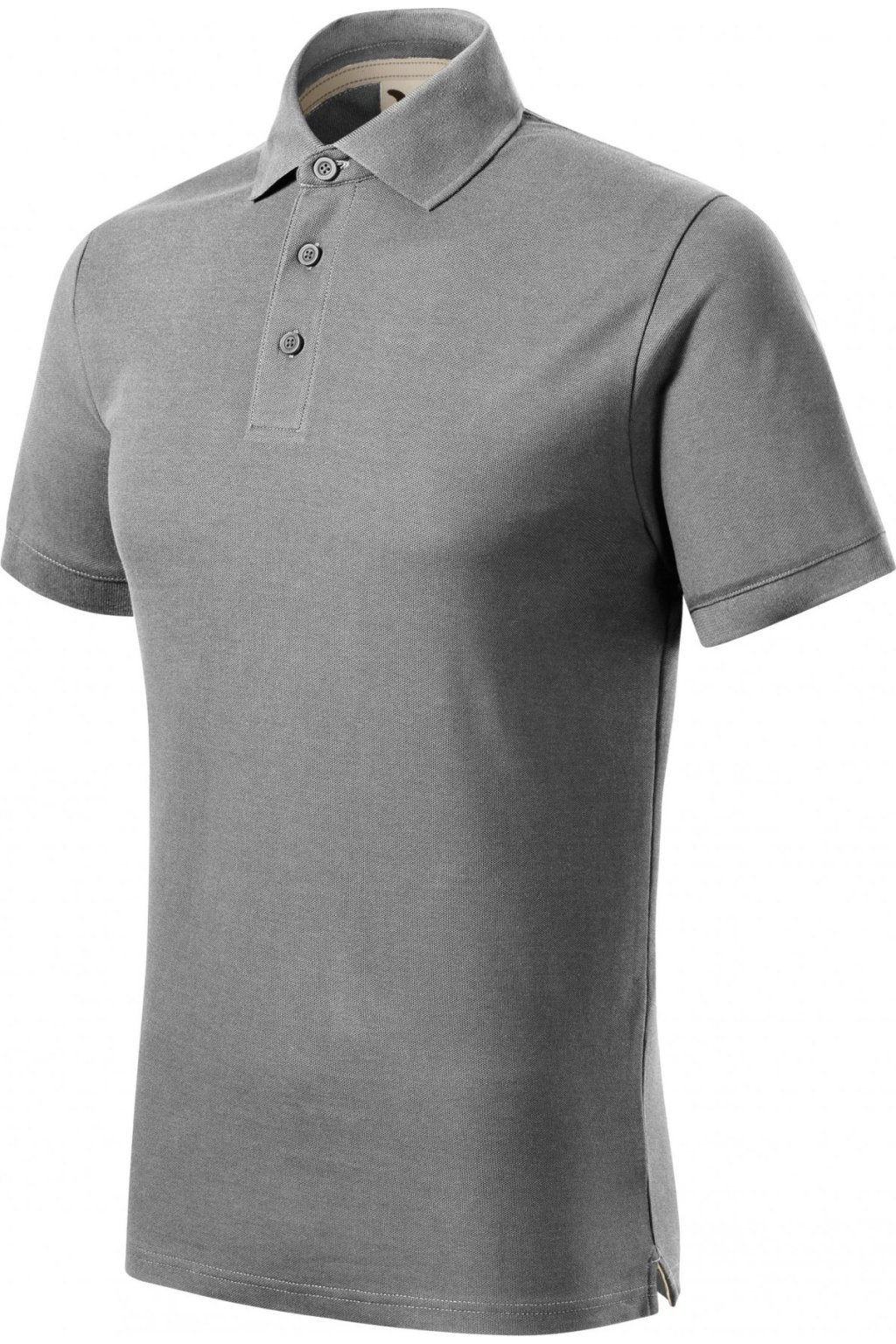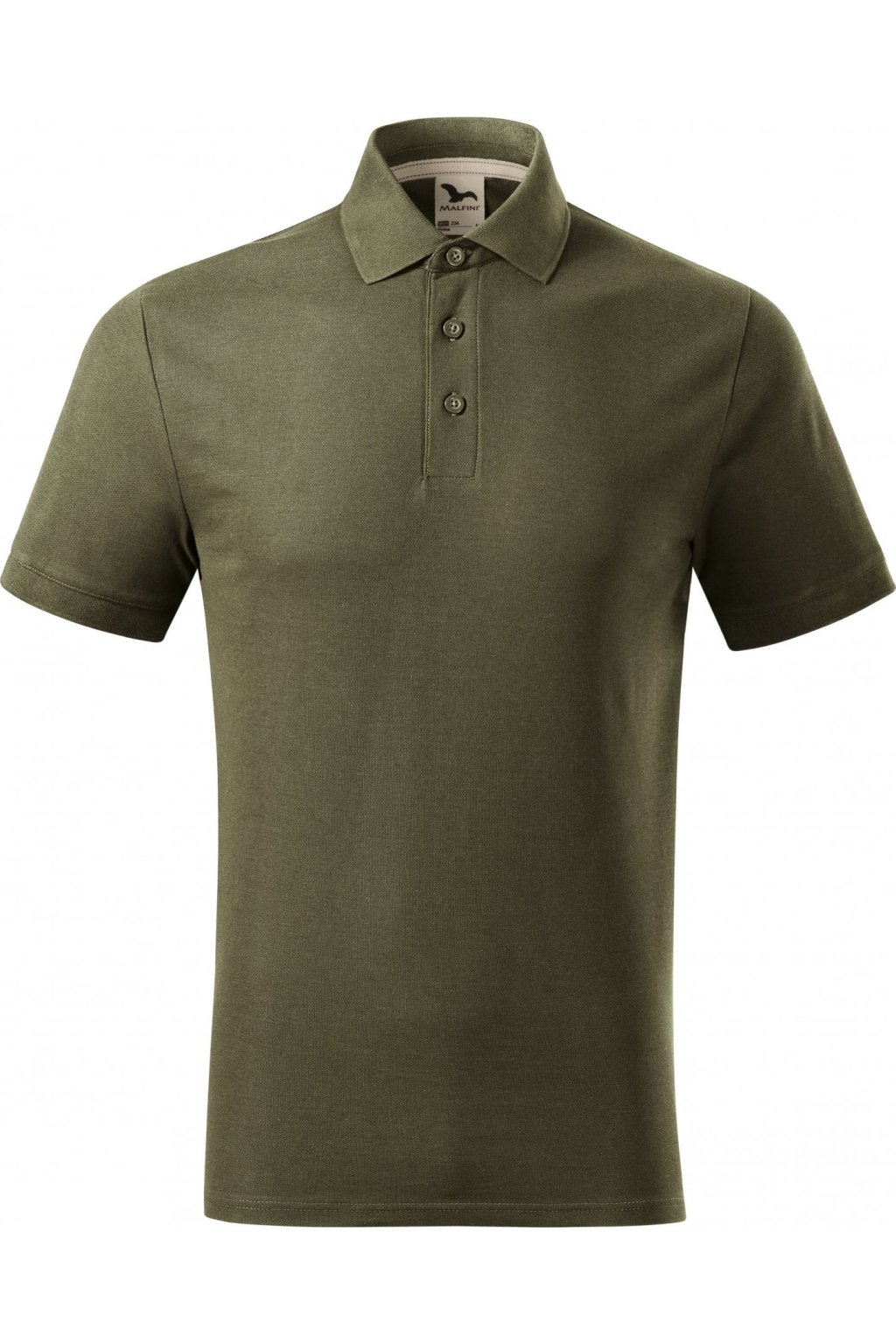 certifikovaná organická bavlna, střih s bočními švy, límeček a lemy rukávů z žebrového úpletu 1:1, léga s 3 knoflíčky v barvě materiálu, vnitřní průkrčník začištěn kontrastní páskou, zpevnění ramenních švů páskou, rozparky v bočních švech s kontrastní páskou, zboží II. jakosti, na zboží II. jakosti se nevztahuje reklamace